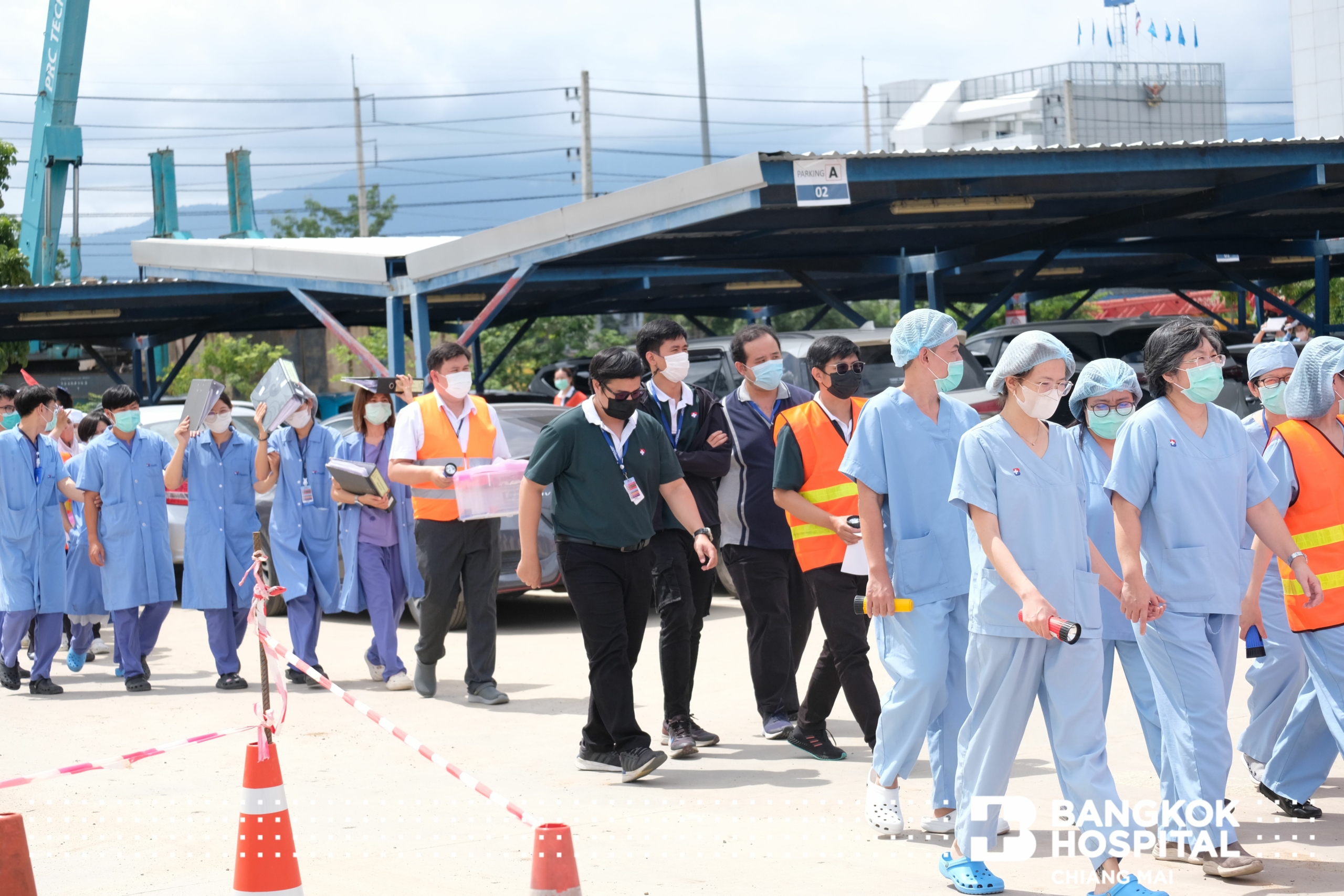เมื่อเร็ว ๆ นี้ โรงพยาบาลกรุงเทพเชียงใหม่ นำทีมโดยศูนย์อุบัติเหตุและฉุกเฉิน หน่วยแพทย์-พยาบาล และเจ้าหน้าที่ของโรงพยาบาลฯ ร่วมกับเจ้าหน้าที่งานป้องกันและบรรเทาสาธารณภัยเทศบาลนครเชียงใหม่ ได้มีอบรมการฝึกซ้อมอพยพหนีไฟ ภาคทฤษฎีและปฏิบัติลงสนามฝึกซ้อมเสมือนจริง โดยเฉพาะเส้นทางการอพยพและวิธีการอพยพผู้ป่วยในอาคารสูงของโรงพยาบาล ซึ่งถือเป็นเรื่องที่สำคัญอย่างมากในการช่วยเหลือผู้ที่มีความสามารถช่วยเหลือตนเองหลายระดับเพื่อให้ทุกคนสามารถอพยพไปยังจุดรวมพลให้ได้อย่างปลอดภัย เป็นการลดความเสียหายต่อชีวิตและร่างกายของผู้ป่วยและบุคลากรทางการแพทย์
