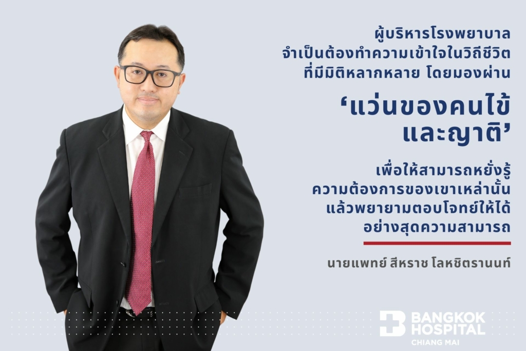 ‘มิติของผู้คน’ ในมุมมองของผู้บริหารโรงพยาบาลจึงถูกตกผลึกออกมาเป็น การมองผ่านแว่นตาของคนไข้และญาติ เพื่อให้เข้าไปเข้าใจใน ‘วิถีชีวิต’ ของคนเหล่านั้น ไม่เพียงความปลอดภัยแต่คือการกลับไปใช้ชีวิตได้อย่างมีคุณภาพดังเดิมหรือใกล้เคียงที่สุด