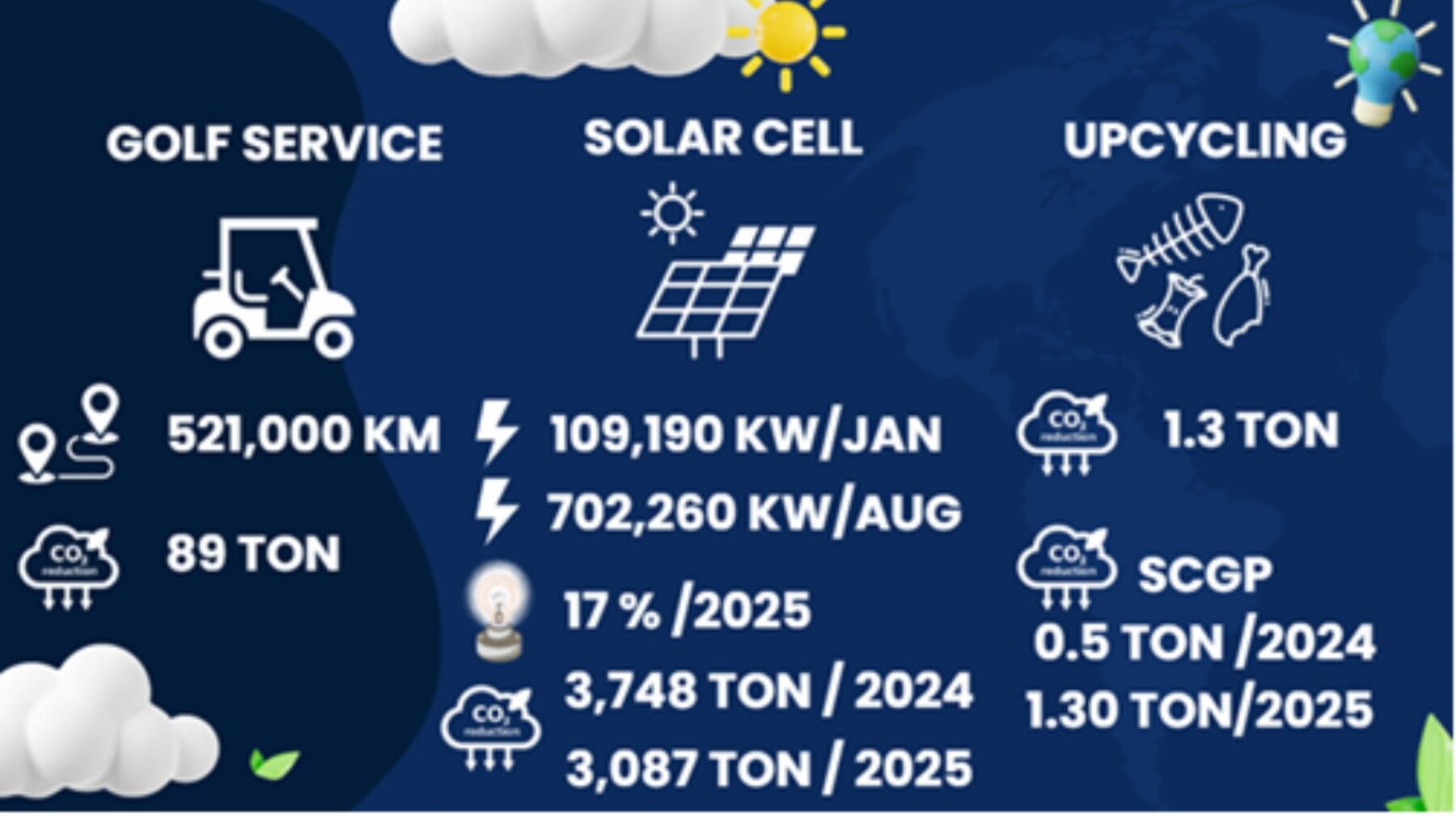 - Golf Service: ลดการปล่อยก๊าซได้ 89 ตัน จากการวิ่งรถกว่า 521,000 กม.