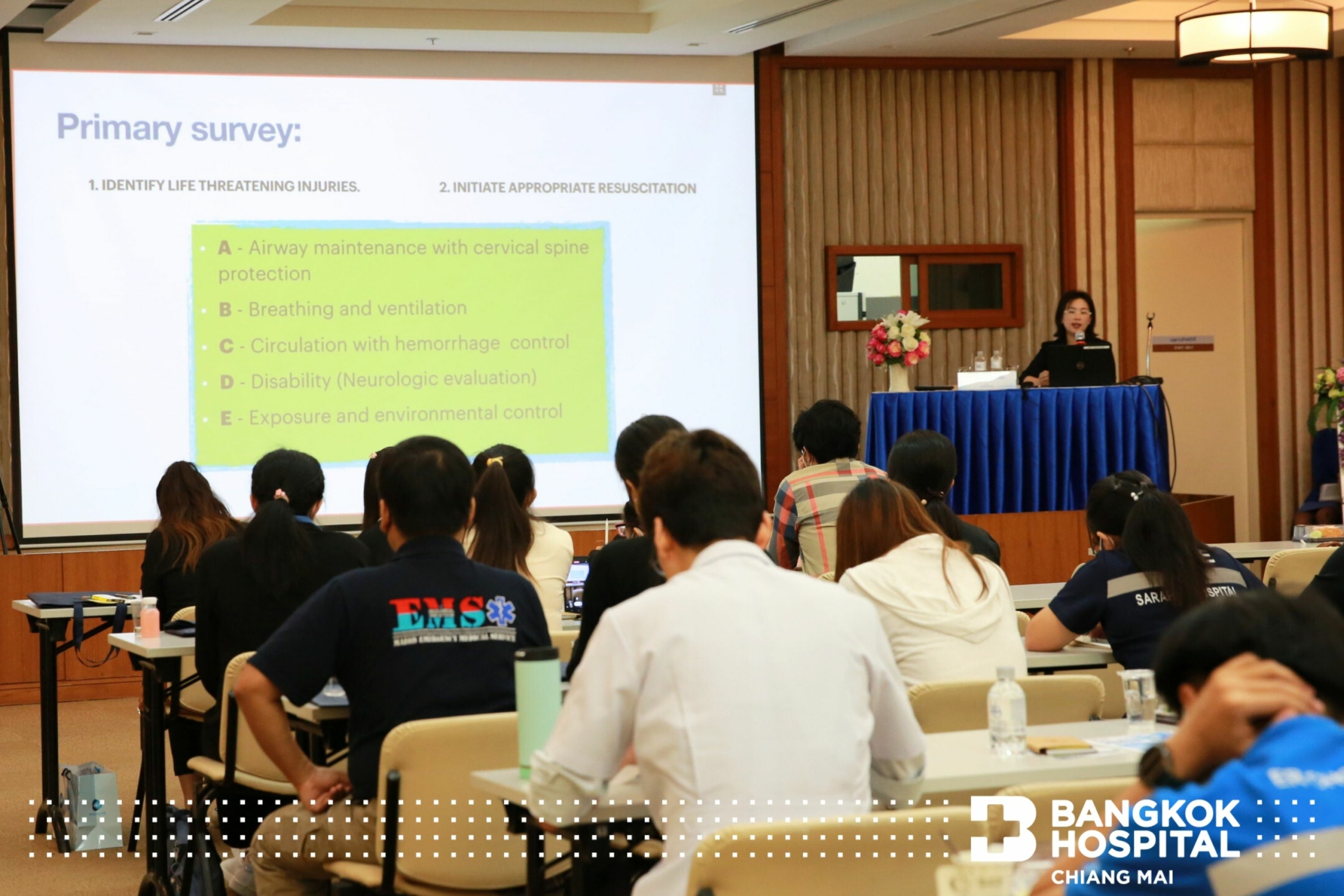 ศูนย์แห่งความเป็นเลิศด้านอุบัติเหตุและฉุกเฉินโรงพยาบาลกรุงเทพเชียงใหม่ ได้รับเกียรติจากนายแพทย์สีหราช โลหชิตรานนท์ ผู้อำนวยการโรงพยาบาลกรุงเทพเชียงใหม่ กล่าวเปิดงาน โดยมีแพทย์ผู้เชี่ยวชาญเข้าร่วมบรรยายให้ความรู้อย่างคับคั่ง