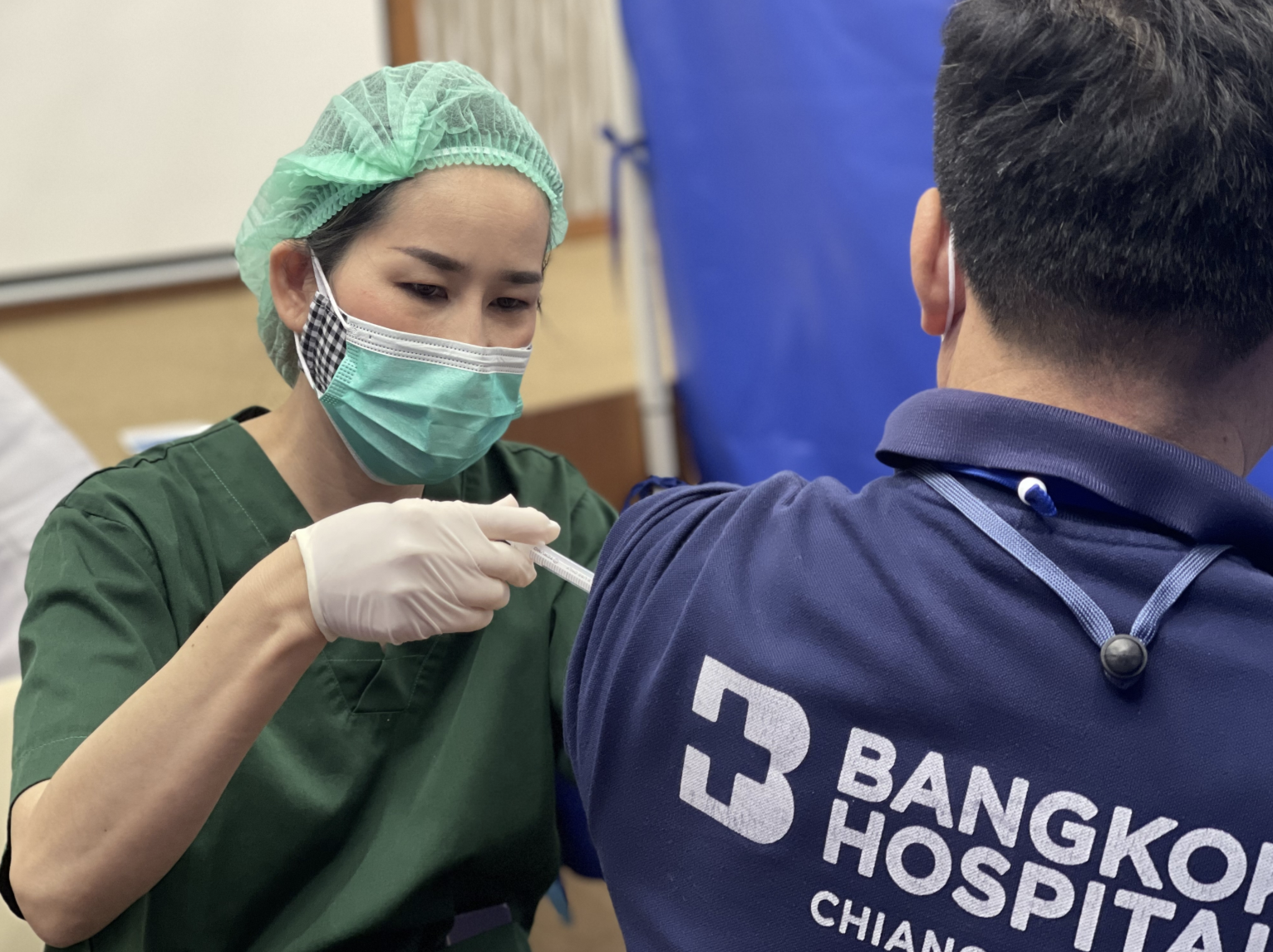 โรงพยาบาลกรุงเทพ เชียงใหม่ ดำเนินการฉีดวัคซีนแก่บุคลากรทางการแพทย์ของโรงพยาบาล ตามมาตรฐานที่กระทรวงสาธารณสุขกำหนด