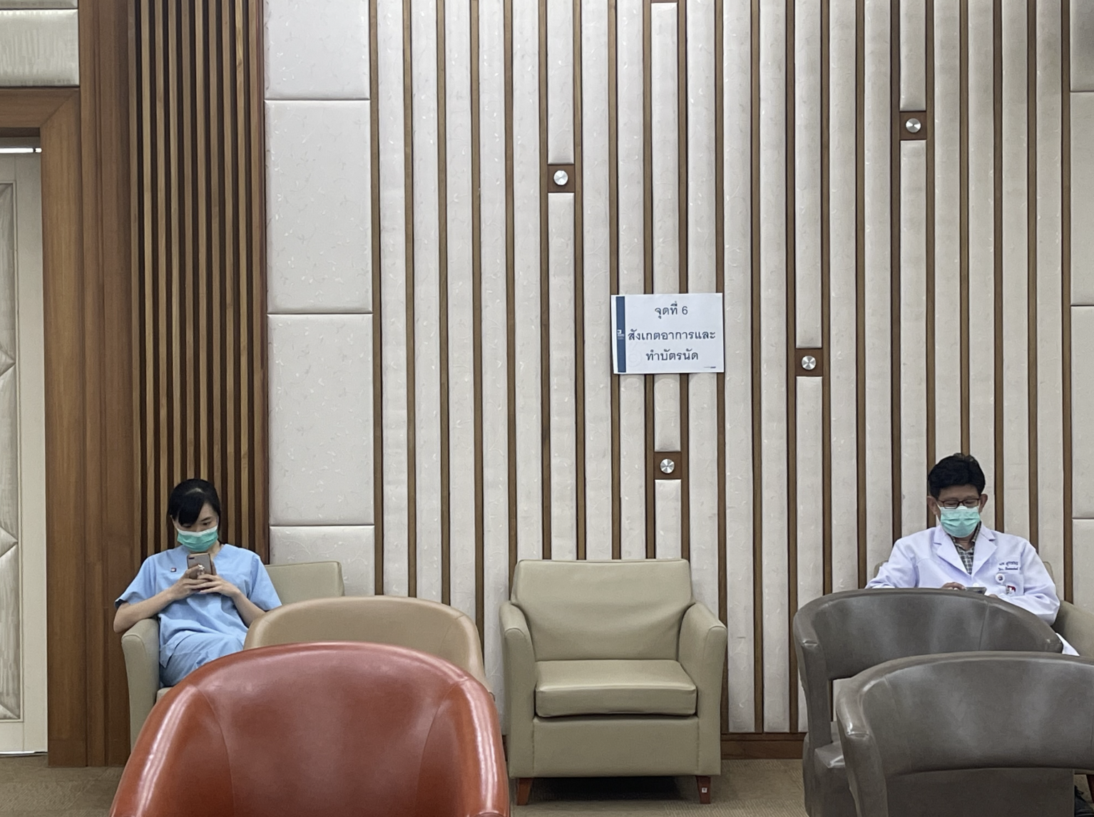 โดยผู้ที่ได้รับวัคซีนแล้วจะต้องพักเพื่อสังเกตอาการเป็นเวลา 30 นาที ในพื้นที่ที่จัดเตรียมไว้ แบบ #PhysicalDistancing เพื่อป้องกันการเกิดอาการข้างเคียง โดยมีเจ้าหน้าที่คอยดูแลอย่างใกล้ชิด