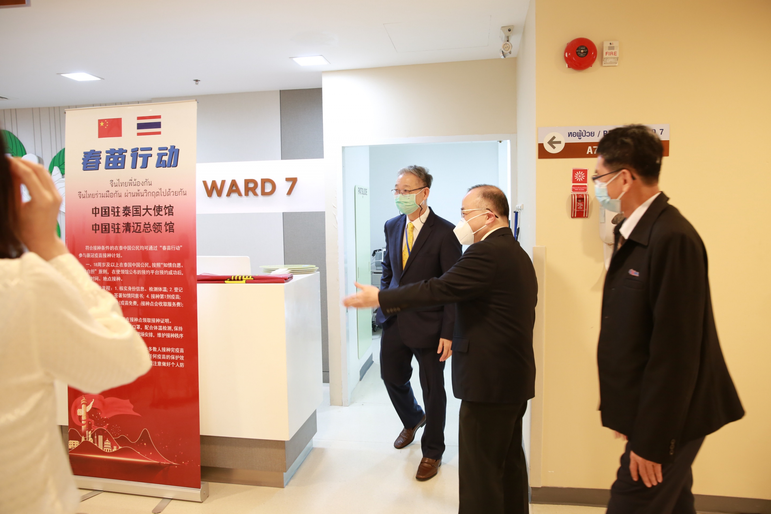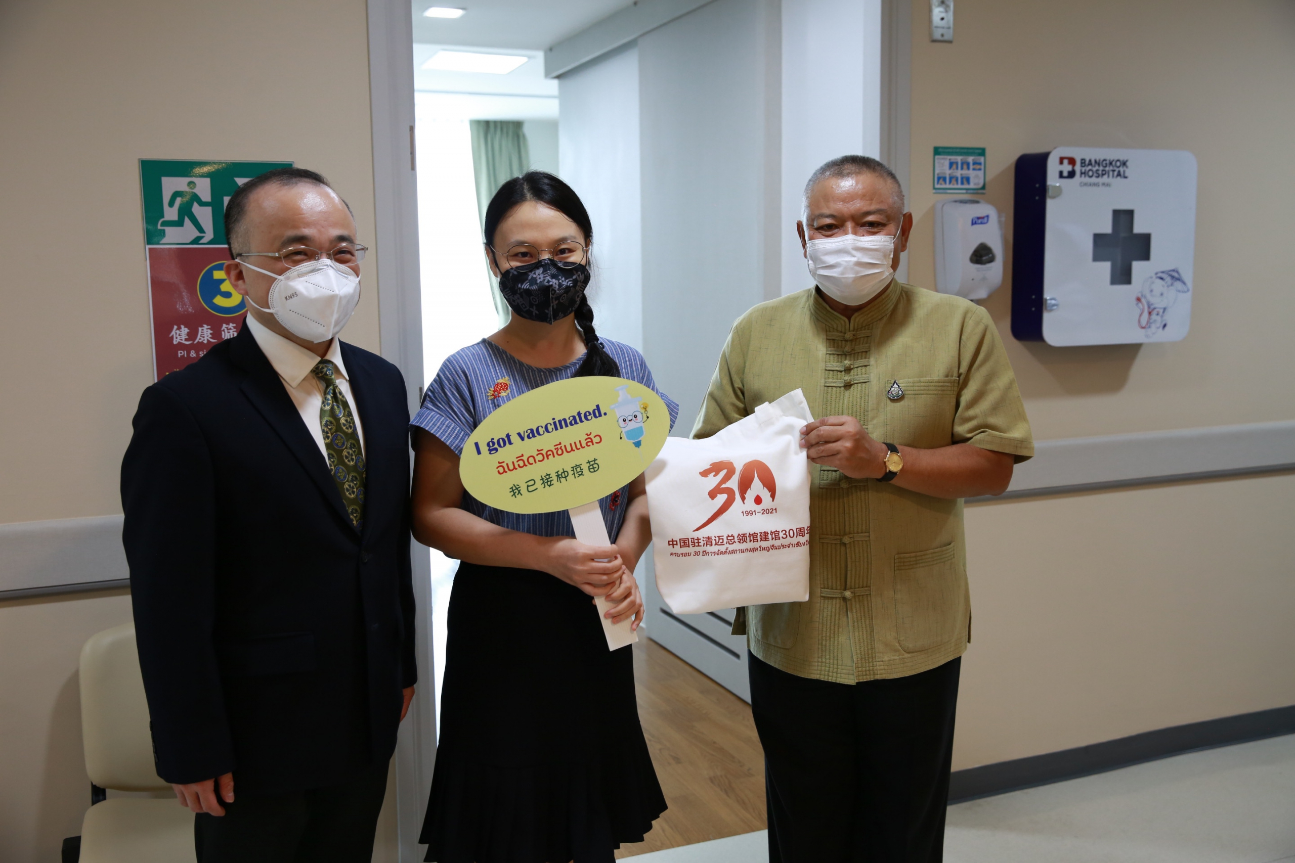 9 มิถุนายน 2564 – นายวีระพันธ์ ดีอ่อน (กลาง) รองผู้ว่าราชการจังหวัดเชียงใหม่ ให้เกียรติเป็นประธานในงานเปิดโครงการศูนย์ฉีดวัคซีนซิโนแวคของรัฐบาลจีน “Spring Sprout” ที่โรงพยาบาลกรุงเทพเชียงใหม่ โดยมี นายอู๋ จื้อ อู่ (ซ้าย) กงสุลใหญ่แห่งสาธารณรัฐประชาชนจีนประจำเชียงใหม่ และ พลตรี นายแพทย์ นิวัฒน์ บุญยืน (ขวา) ผู้อำนวยการโรงพยาบาลกรุงเทพเชียงใหม่ ร่วมแสดงความพร้อมในการให้บริการฉีดวัคซีนโควิด-19 แก่ชาวจีนที่อยู่อาศัยในภาคเหนือ สร้างภูมิคุ้มกันหมู่ให้เกิดขึ้นในพื้นที่โดยเร็ว ทั้งยังเป็นการยืนยันความสัมพันธ์และมิตรภาพที่ดีระหว่างสองประเทศอีกด้วย