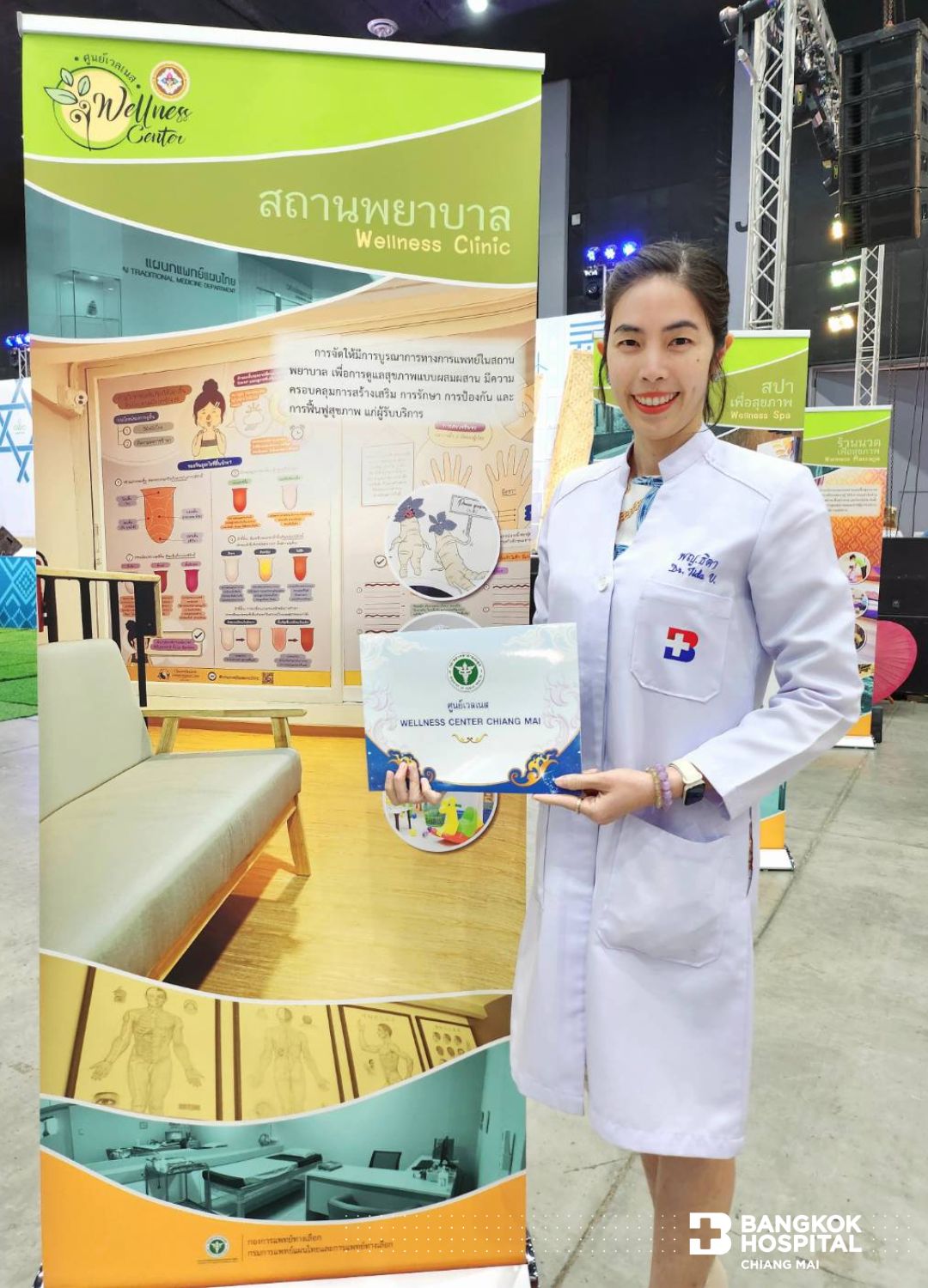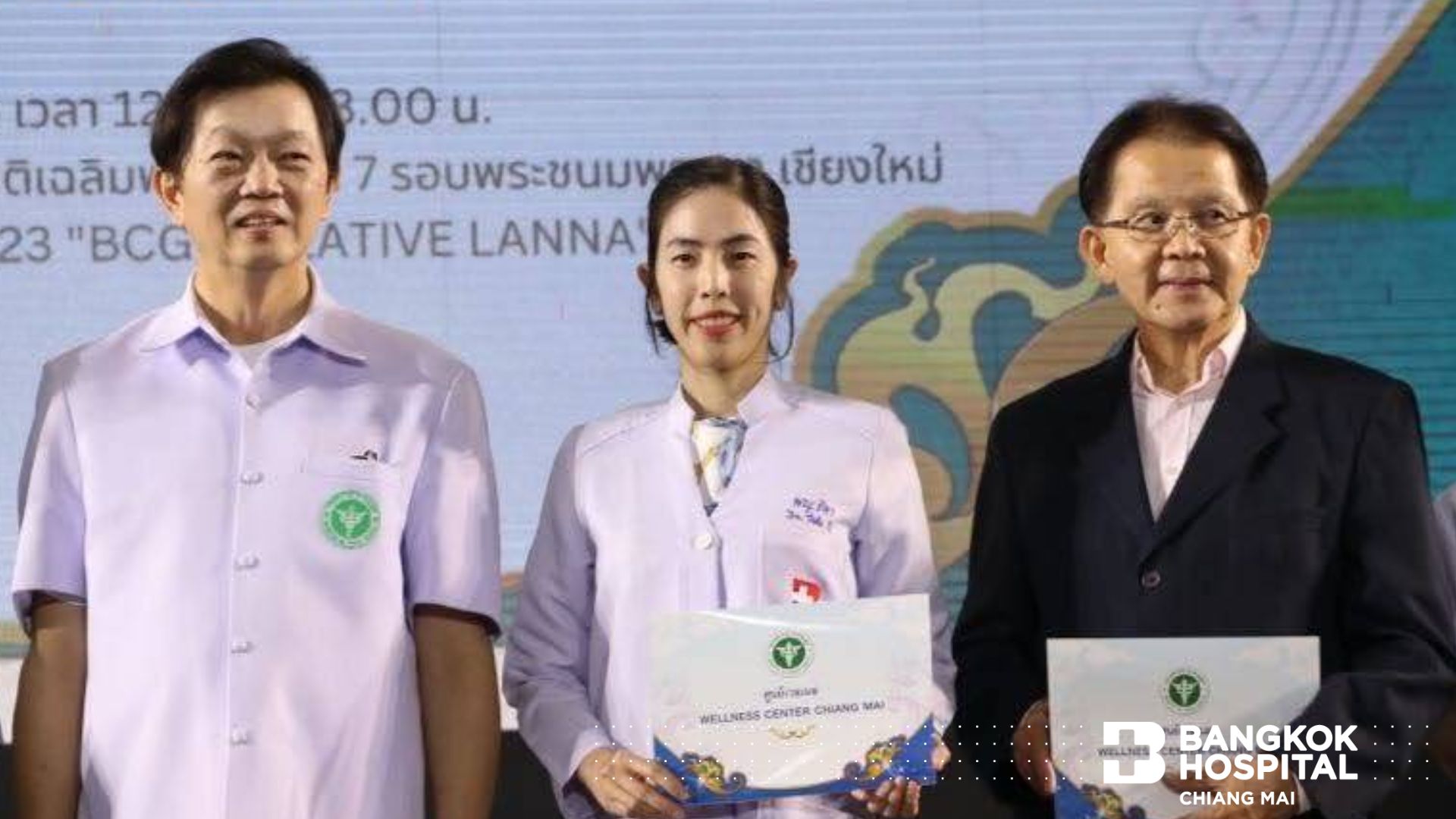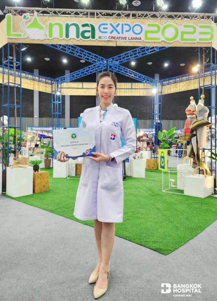 เมื่อวันที่ 7 กรกฎาคม 2566 ที่ผ่านมา สำนักงานสาธารณสุขจังหวัดเชียงใหม่ จัดพิธีมอบใบประกาศเกียรติคุณ ประกาศนียบัตรศูนย์เวลเนส และแหล่งท่องเที่ยวเชิงสุขภาพ จังหวัดเชียงใหม่ โดยโรงพยาบาลกรุงเทพเชียงใหม่ ได้รับประกาศนียบัตรศูนย์เวลเนสที่ได้รับการรับรอง นำโดยแพทย์หญิงธิดา วัฒนพันธ์พิทักษ์ แพทย์ผู้เชี่ยวชาญด้านเวชศาสตร์ชะลอวัยและเวชศาสตร์ครอบครัว แห่งศูนย์สุขภาพด้านดูแลป้องกันและฟื้นฟู ในงาน Lanna Expo 2023 ณ ศูนย์ประชุมและแสดงสินค้านานาชาติเฉลิมพระเกียรติ 7 รอบ พระชนมพรรษา จังหวัดเชียงใหม่
