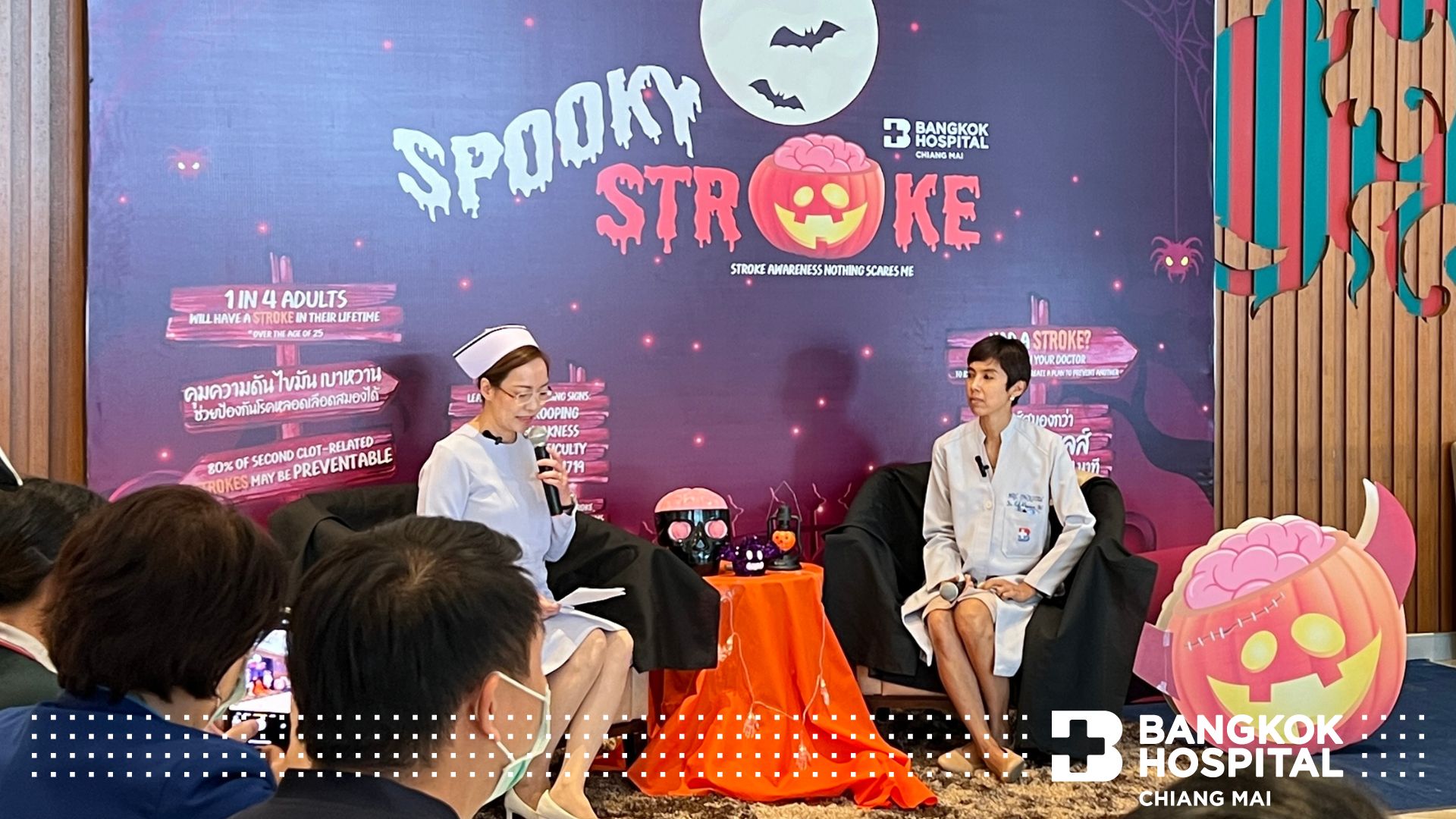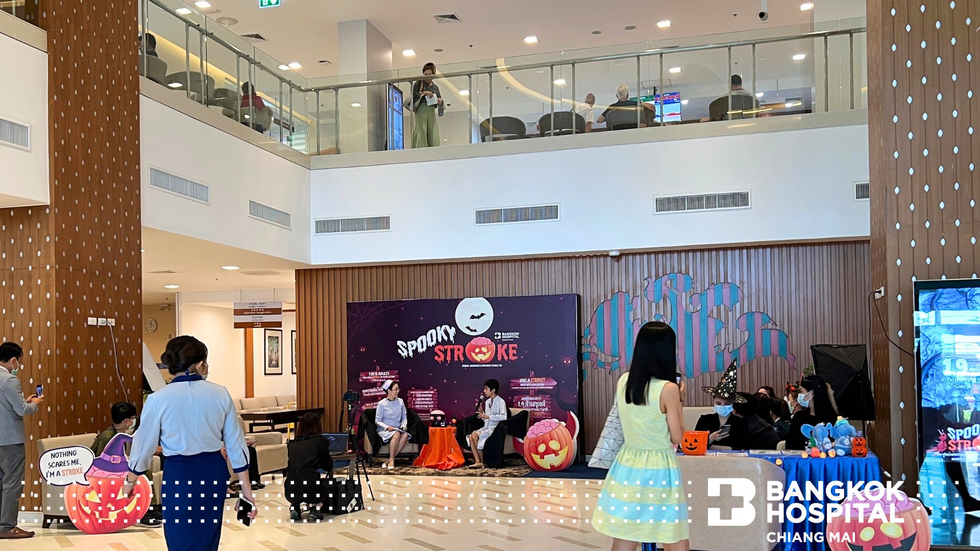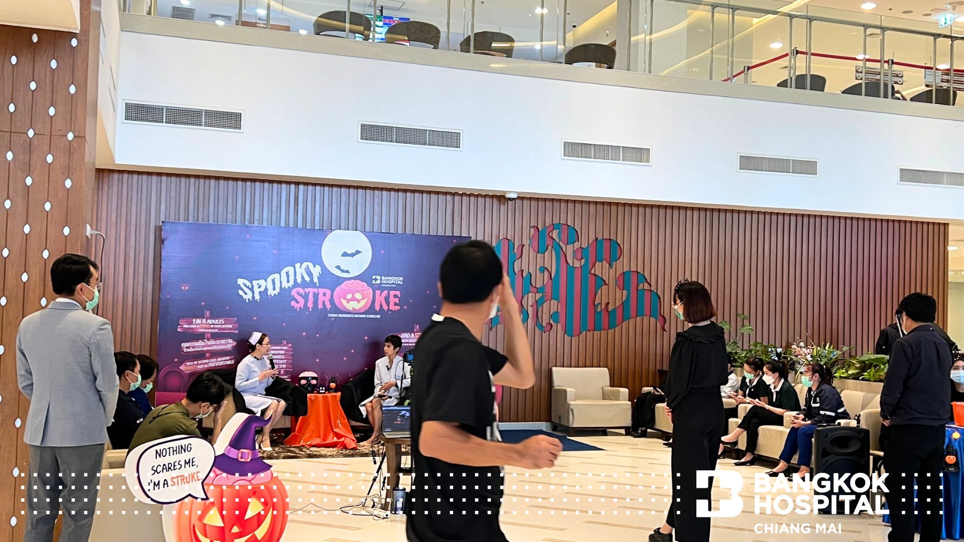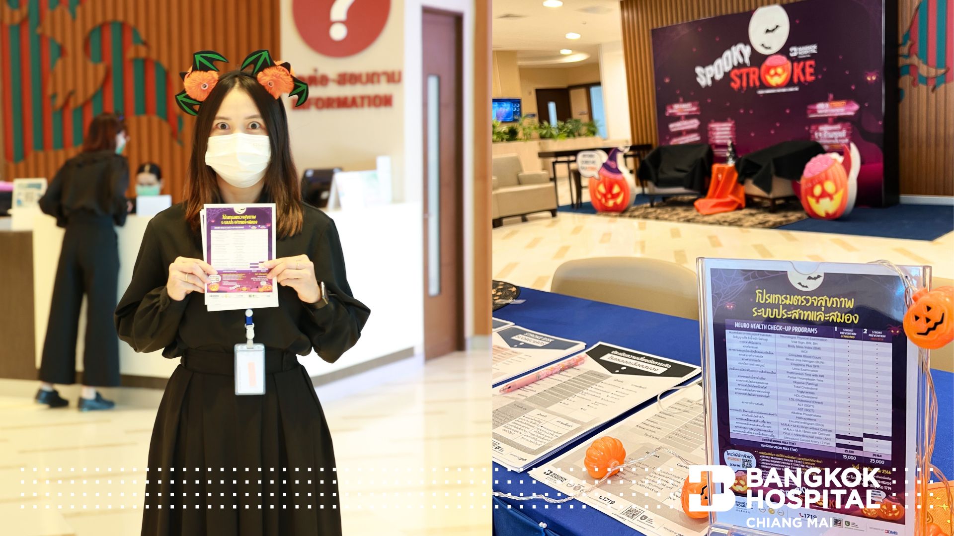 กิจกรรม “Spooky Stroke” จัดขึ้นในธีมเทศกาลวันฮาโลวีน (Halloween) เพื่อให้ความรู้และการป้องกันโรคหลอดเลือดสมอง ซึ่งเป็นอันดับ 3 ของสาเหตุการเสียชีวิตรองจากโรคมะเร็งและโรคหัวใจ โดยพญ. กนกวรรณ วัชระศักดิ์ศิลป์ อายุรแพทย์ระบบประสาทและสมอง นอกจากนี้ยังมีการจัดกิจกรรมประเมินความเสี่ยงต่อการเกิดโรคหลอดเลือดสมอง ให้ความรู้เกี่ยวกับสัญญาณอาการเสี่ยงของโรคหลอดเลือดสมองที่รู้จักกันในชื่อ BEFAST ตลอดจนแนะนำโปรแกรมตรวจสุขภาพระบบประสาทและสมอง โดยมีความมุ่งมั่นที่จะให้ชาวเชียงใหม่รับรู้ถึงแนวทางการป้องกันโรคหลอดเลือดสมองโดยปรับไลฟ์สไตล์การกิน-ดื่ม ออกกำลังกาย คลิกที่นี่เพื่ออ่าน ไลฟ์สไตล์ที่ ‘ดีต่อใจ’