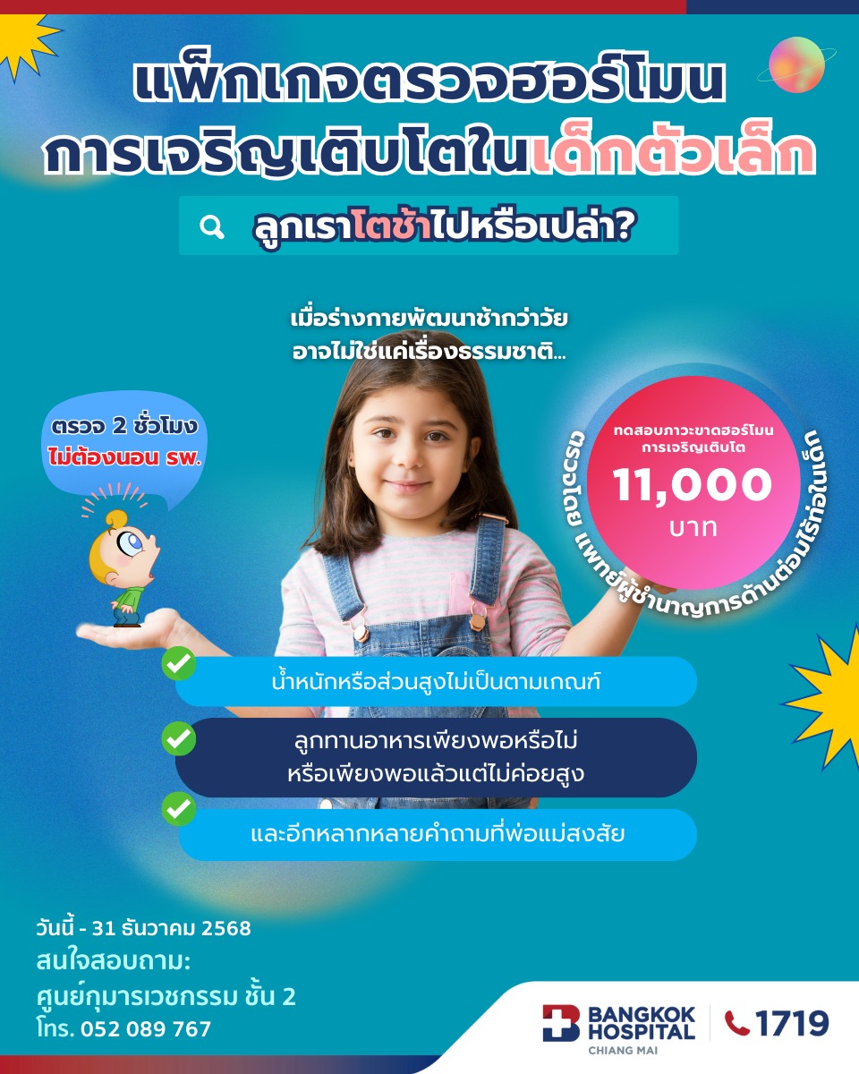 แพ็กเกจตรวจฮอร์โมน การเจริญเติบโตในเด็กตัวเล็ก