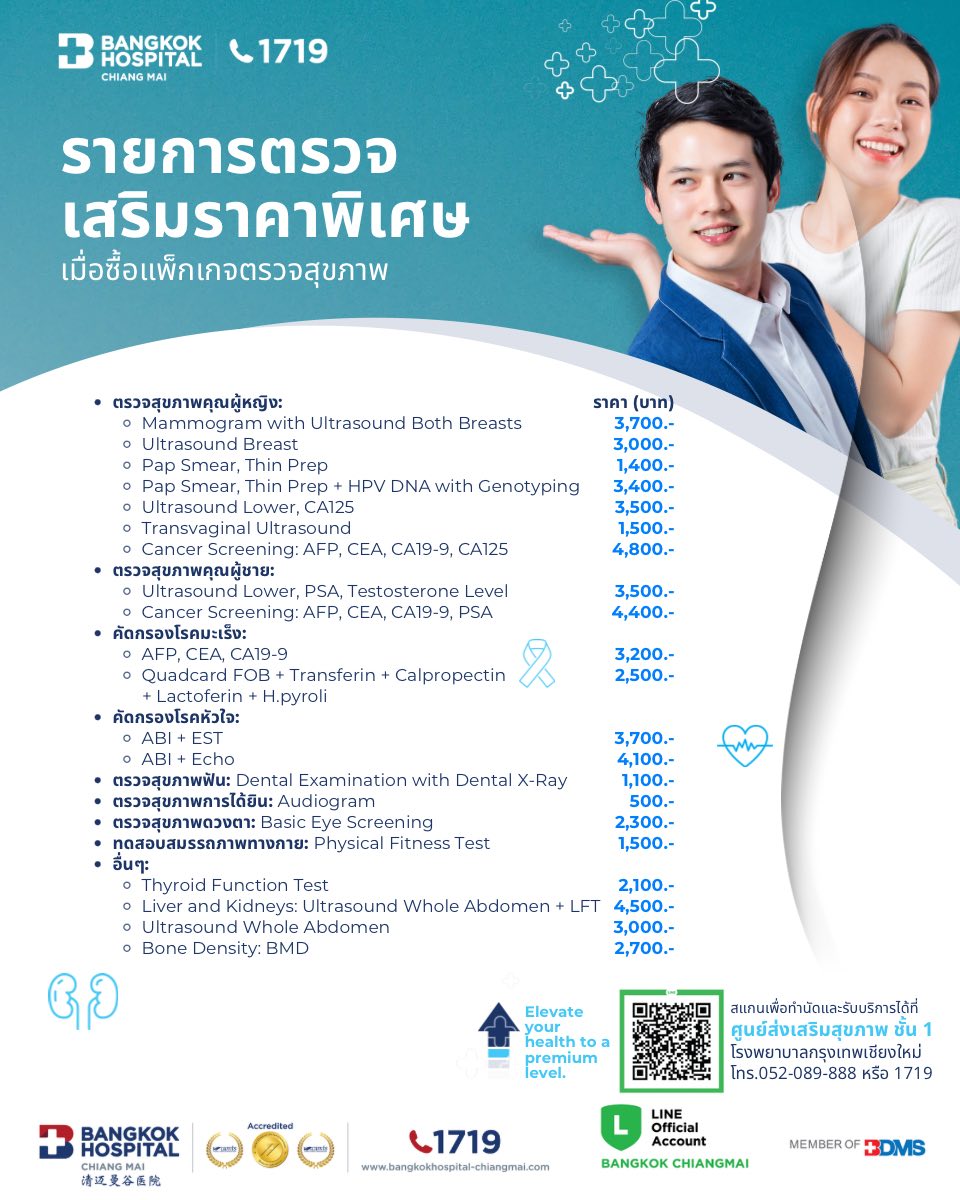 - Cancer Screening: AFP, CEA, CA19-9, PSA : 4,400 THB