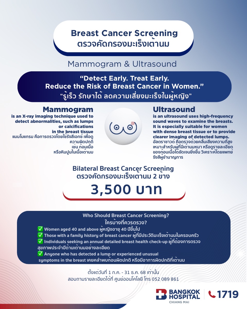 - ตรวจคัดกรองมะเร็งเต้านม ด้วยเครื่องแมมโมแกรมและอัลตราซาวด์ Mammograms with Ultrasound Both Breast