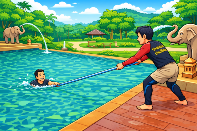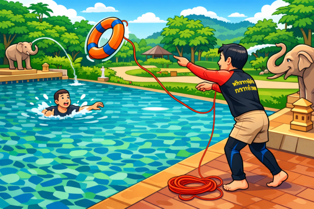 ขอความช่วยเหลือจากผู้คนรอบข้างเป็นอย่างแรก หลักการสำคัญ “ตะโกน โยน ยื่น” ไม่ว่ายน้ำลงไปช่วยด้วยตนเองแม้ว่ายน้ำเป็น