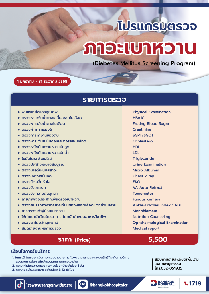 สอบถามรายละเอียดเพิ่มเติมได้ที่แผนกอายุรกรรม