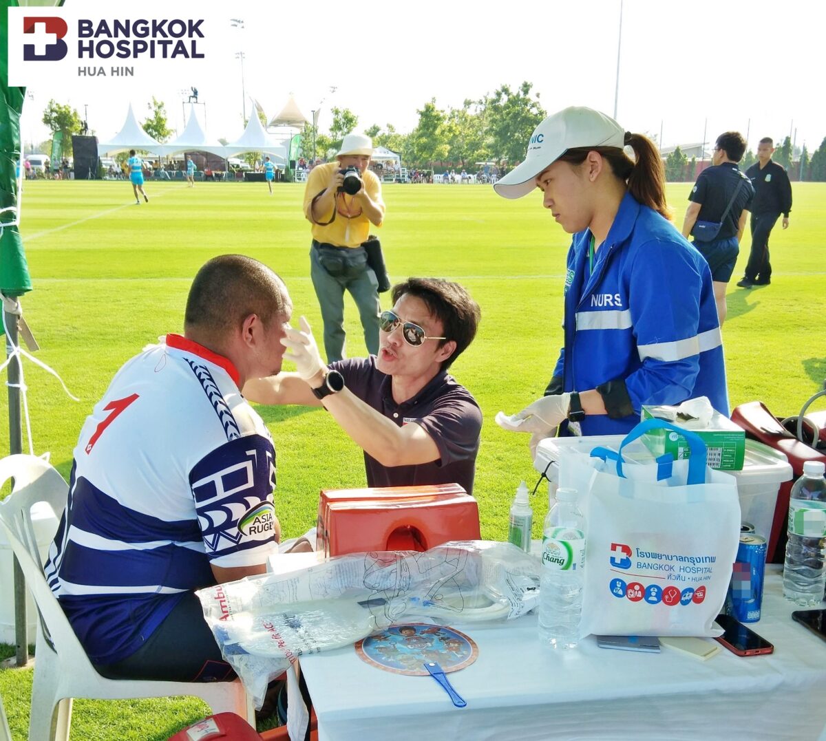 โรงพยาบาลกรุงเทพหัวหิน ให้บริการออกหน่วยปฐมพยาบาลนอกสถานที่ พร้อมรถพยาบาลฉุกเฉิน เพื่ออำนวยความสะดวกและดูแลผู้เข้าแข่งขันกีฬารักบี้ ในรายการ 2019 Asia Rugby Championship Division II Tournament ณ สนามทรูอารีน่า หัวหิน เมื่อวันที่ 15 และ 18 พฤษภาคม 2562
