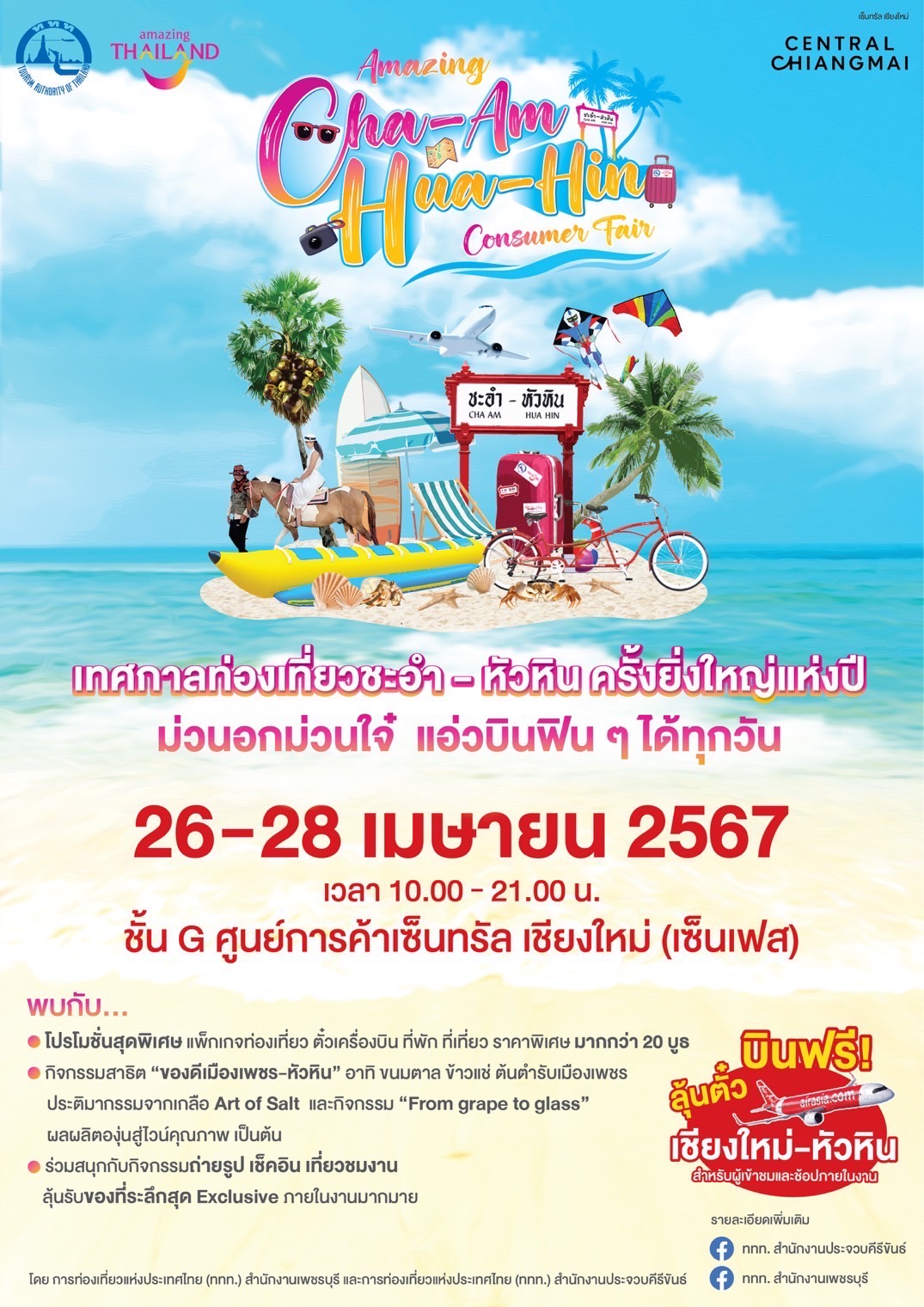 โรงพยาบาลกรุงเทพหัวหิน ร่วมงาน “𝑨𝒎𝒂𝒛𝒊𝒏𝒈 𝑪𝒉𝒂-𝑨𝒎 – 𝑯𝒖𝒂 𝑯𝒊𝒏 𝑪𝒐𝒏𝒔𝒖𝒎𝒆𝒓 𝑭𝒂𝒊𝒓” ☀️🏖️ เทศกาลท่องเที่ยวชะอำ-หัวหิน ครั้งยิ่งใหญ่แห่งปี ณ ศูนย์การค้าเซ็นทรัลเชียงใหม่ (เซ็นเฟส) ชั้น G ในวันที่ 26 – 28 เมษายน 2567