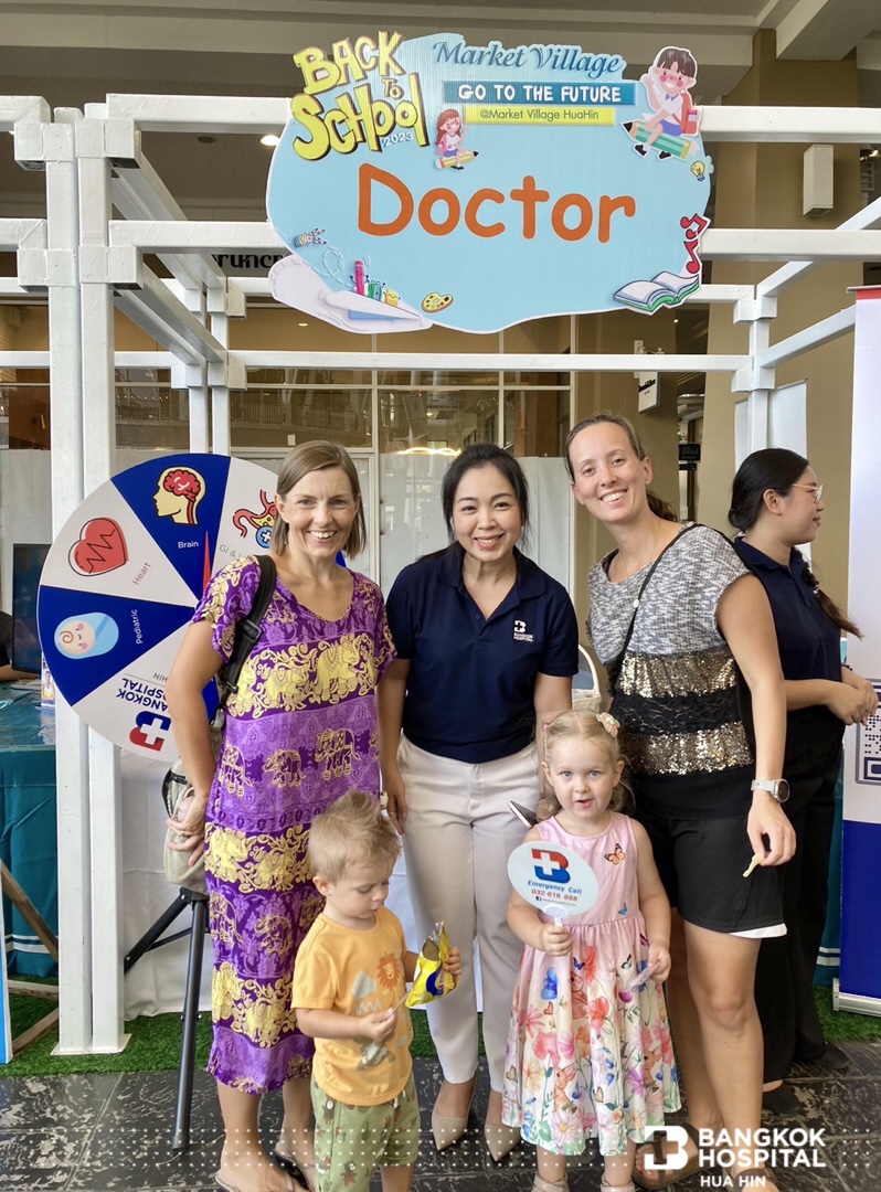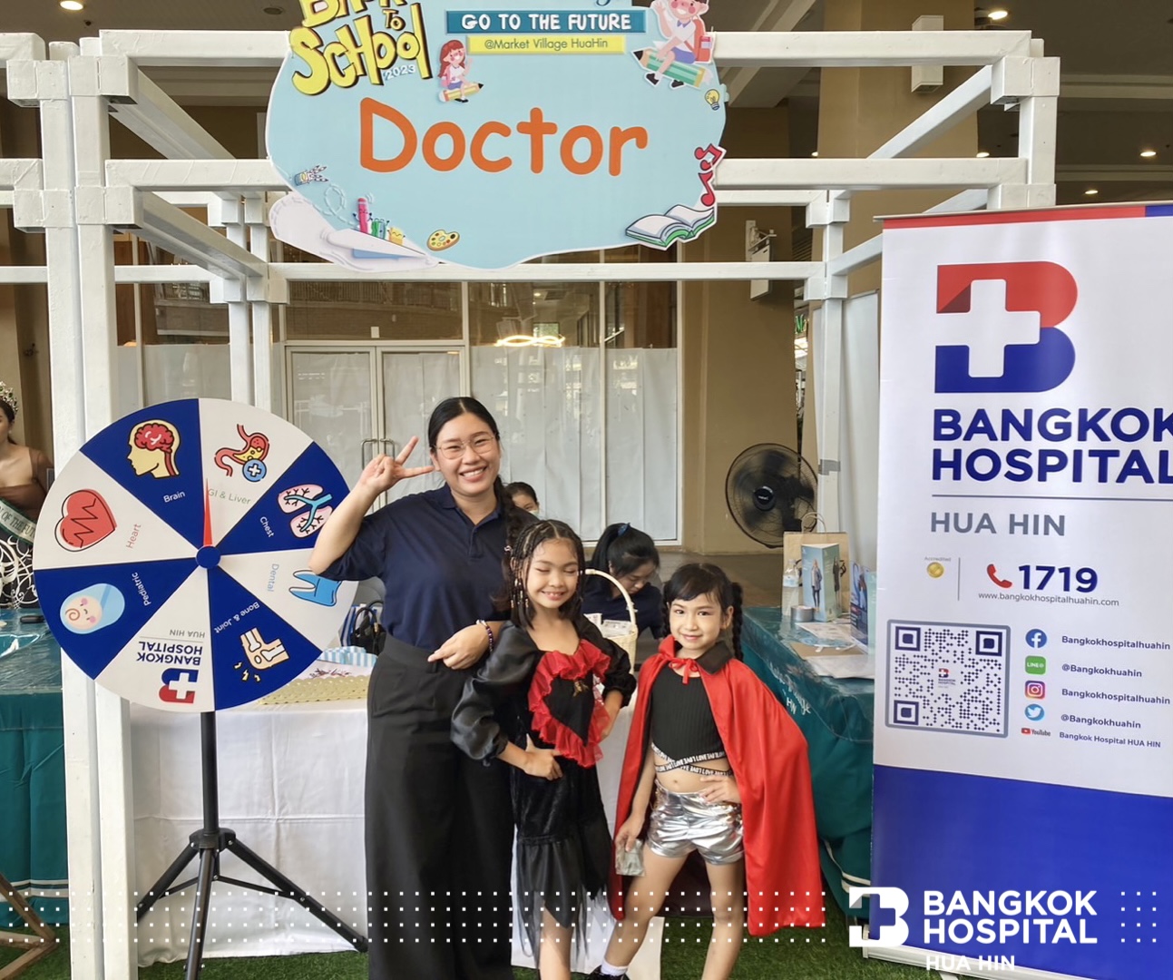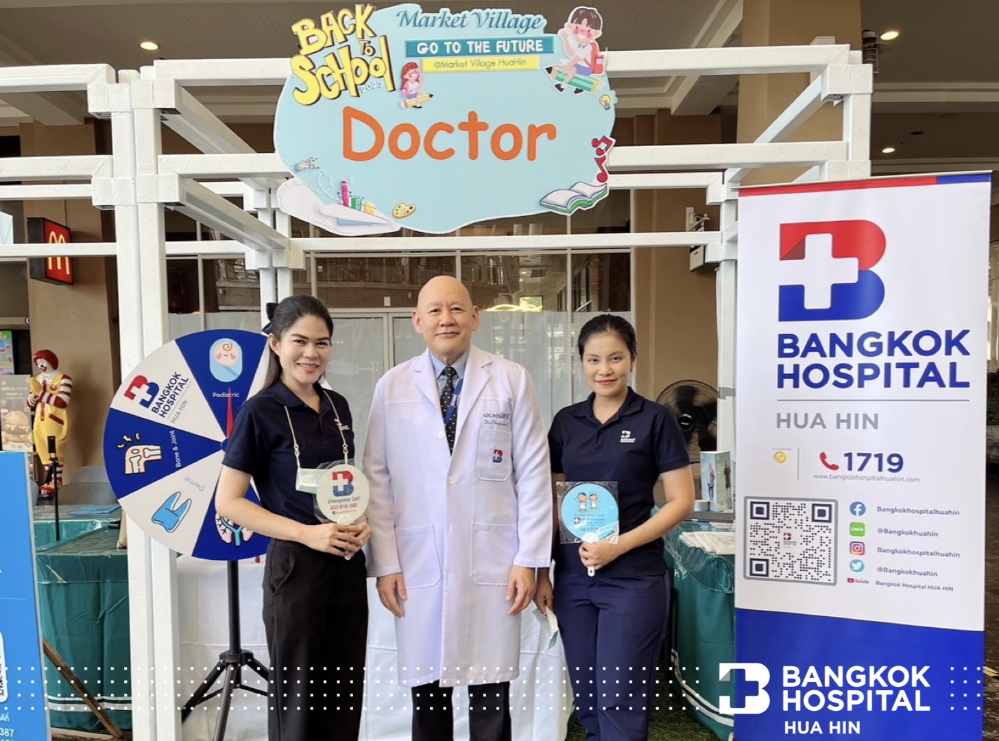 👨🏻⚕️🩺 โรงพยาบาลกรุงเทพหัวหิน ร่วมกิจกรรม Back to School, Go to the Future จัดโดย ศูนย์การค้ามาร์เก็ตวิลเลจหัวหิน โดย นพ.พงษ์ศักดิ์ บุญยะลีพรรณ ผู้ช่วยผู้อำนวยการรพ.กรุงเทพหัวหิน ร่วมเป็นวิทยากรให้ความรู้สายอาชีพแพทย์ พร้อมด้วยเจ้าหน้าที่ออกบูธประชาสัมพันธ์ ณ ลานกิจกรรมด้านหน้าศูนย์การค้ามาร์เก็ตวิลเลจหัวหิน เมื่อวันที่ 26 – 27 พฤษภาคม 2566 และ