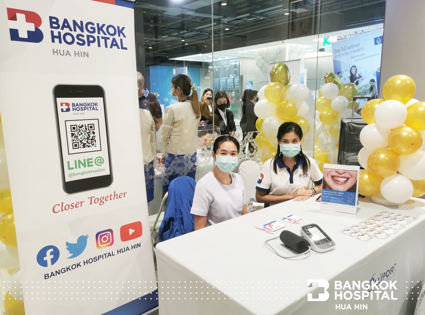 โรงพยาบาลกรุงเทพหัวหิน ร่วมกิจกรรม SMART HEALTH SMART LIFE จัดโดย ธนาคารกรุงเทพ จำกัด (มหาชน) และ เอไอเอ ประเทศไทย โดยพญ. พิมพ์ชนก ลี่ทองอิน แพทย์ประจำศูนย์ส่งเสริมสุขภาพ โรงพยาบาลกรุงเทพหัวหิน เป็นวิทยากรให้ความรู้ในหัวข้อ “การใช้ชีวิตแบบ New Normal” พร้อมด้วยเจ้าหน้าที่ออกบูธประชาสัมพันธ์และบริการตรวจวัดความดันโลหิต ณ ธนาคารกรุงเทพ สาขาบลูพอร์ต หัวหิน เมื่อวันที่ 10 กันยายน 2563
