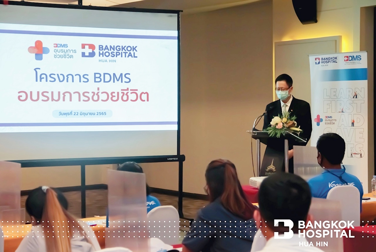 โรงพยาบาลกรุงเทพหัวหิน ภายใต้การบริหารของบริษัท กรุงเทพดุสิตเวชการ จำกัด (มหาชน) จัดกิจกรรมตอบแทนสังคม ในโครงการ BDMS อบรมการช่วยชีวิต รุ่นที่ 2 โดยมี นพ. วีระศักดิ์ พงษ์พัฒนพันธุ์ ผู้อำนวยการรพ.กรุงเทพหัวหิน เป็นประธานในพิธี และมีผู้เข้ารับการอบรมจากหน่วยงานธุรกิจกิจกรรมทางน้ำ อาทิ สวนน้ำแบล็คเมาท์เทน, สวนน้ำวานา นาวา, เรือจันทารา จูนค์ โบ๊ท, Let’s SUP Buddy at Huahin และผู้ประกอบการธุรกิจทางน้ำในอำเภอหัวหิน