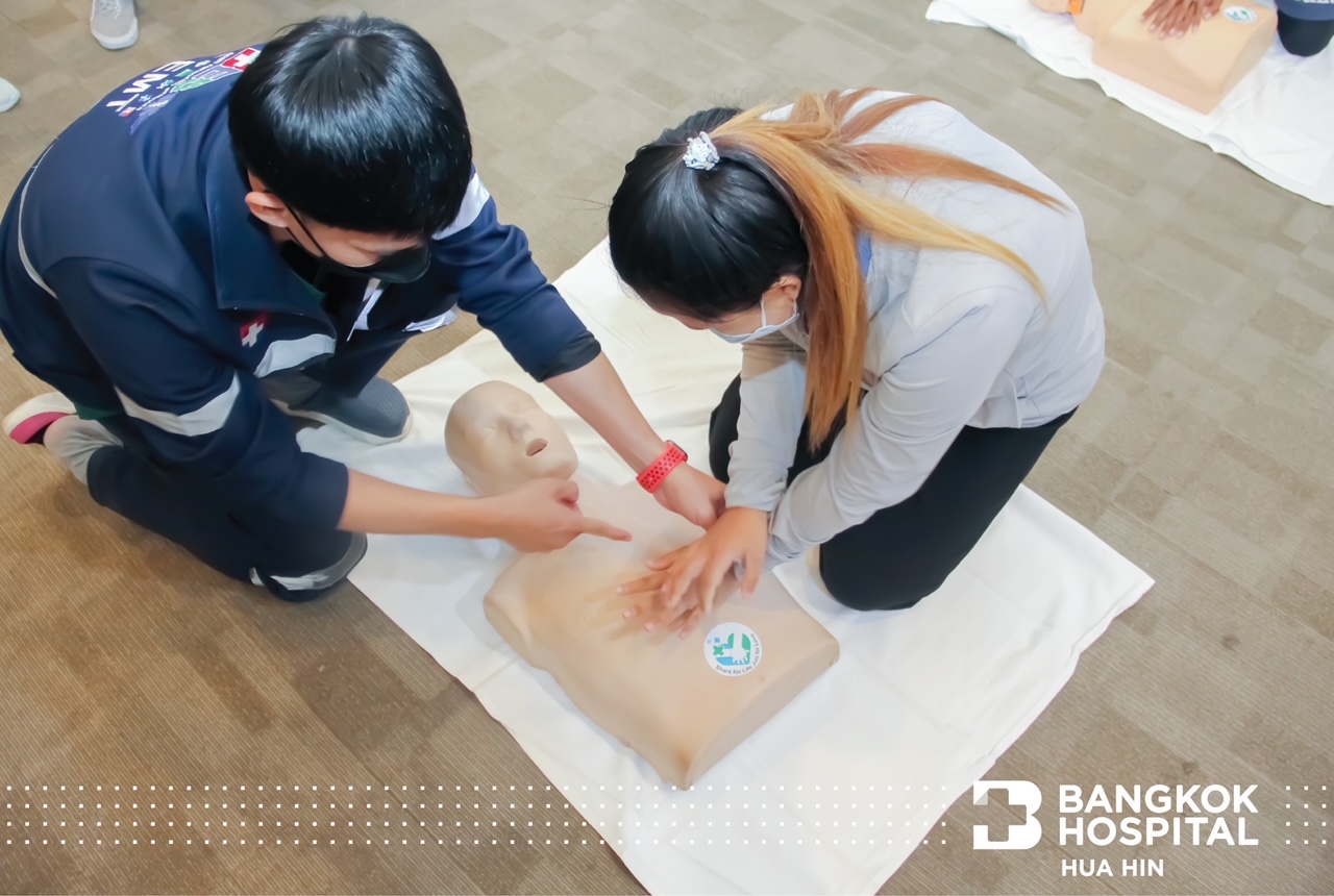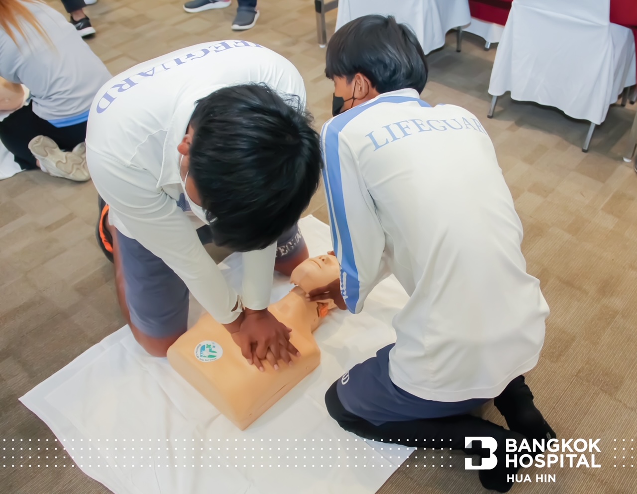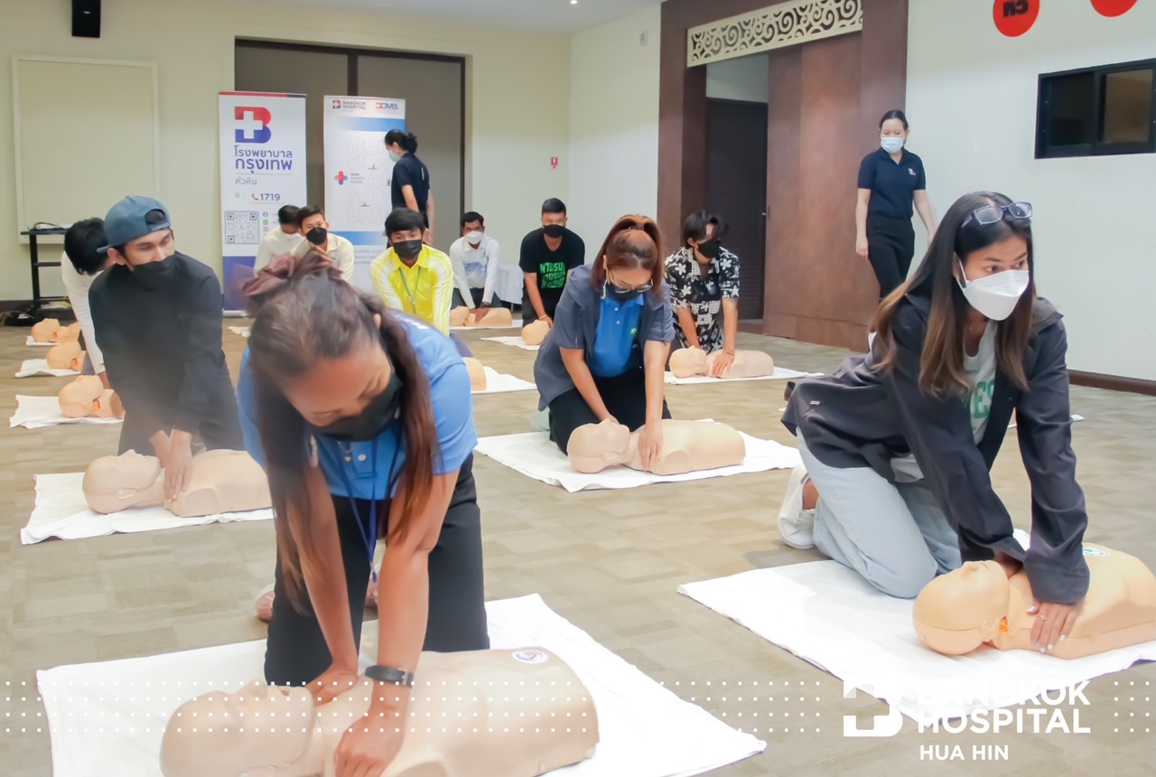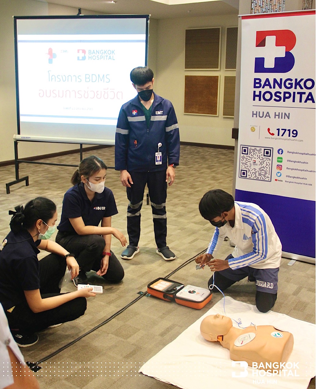 โครงการนี้จัดอบรมโดยวิทยากรผู้เชี่ยวชาญจากรพ.กรุงเทพหัวหิน ทั้งภาคทฤษฎีและการฝึกปฏิบัติจริงในการช่วยชีวิตขั้นพื้นฐาน อาทิ การปั๊มหัวใจ (CPR) การใช้เครื่องกระตุกหัวใจด้วยไฟฟ้าชนิดอัตโนมัติ (AED) การช่วยเหลือผู้ป่วยสำลักอุดกั้นทางเดินหายใจ และการช่วยเหลือคนตกน้ำ โดยผู้ที่ผ่านการฝึกอบรมได้รับมอบประกาศนียบัตรภายในงาน ณ โรงแรม หัวหิน แกรนด์ โฮเทล แอนด์ พลาซ่า เมื่อวันที่ 22 มิถุนายน ที่ผ่านมา