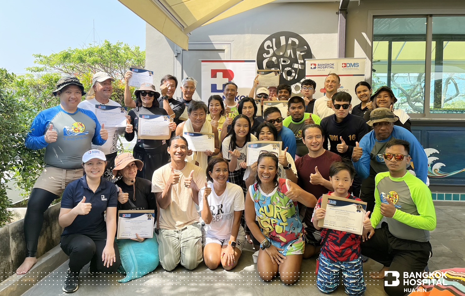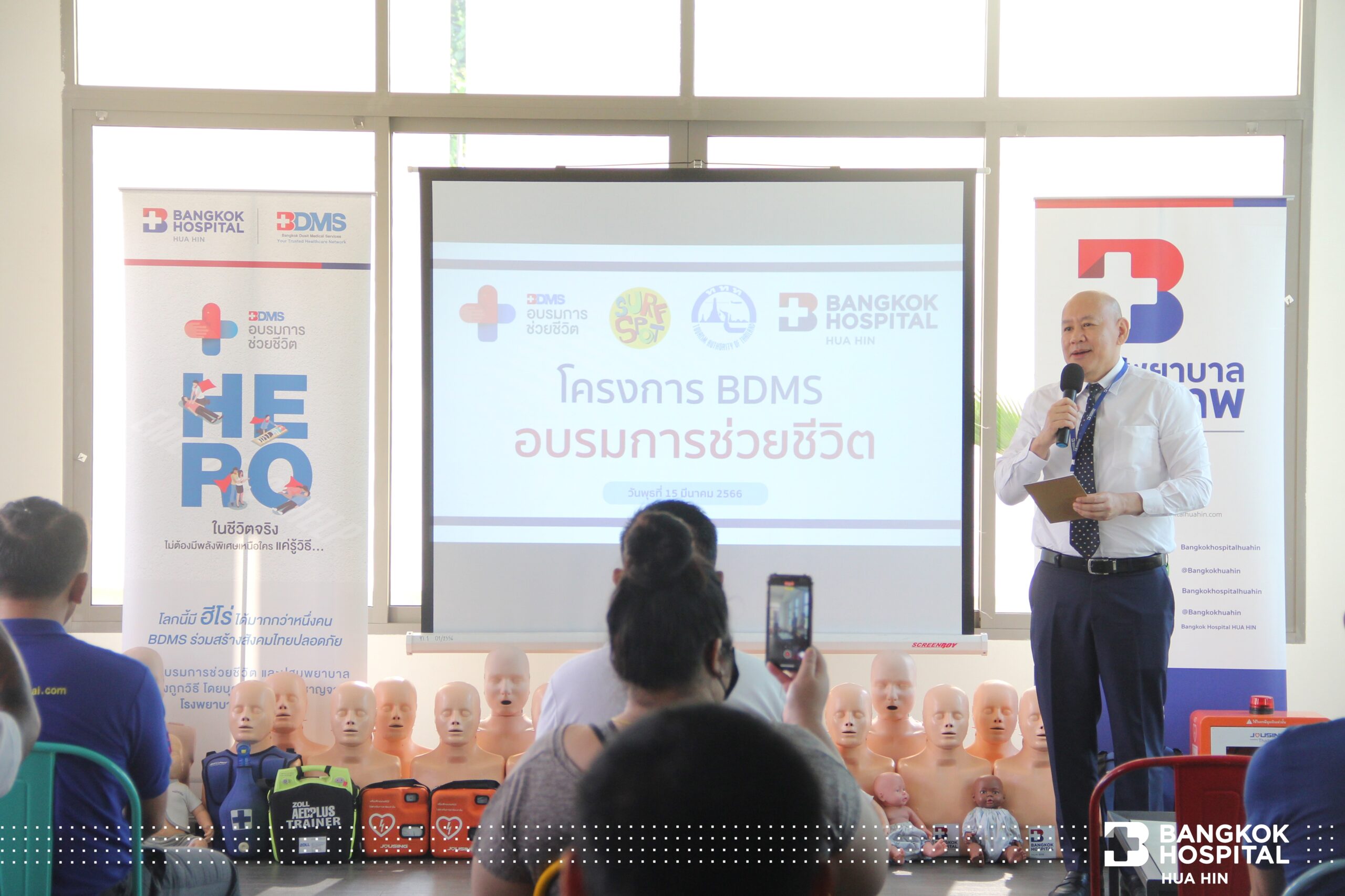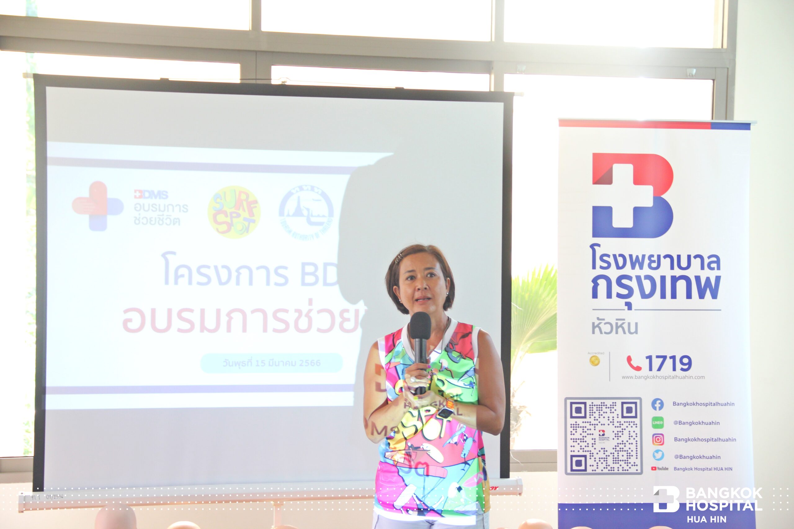นพ. พงษ์ศักดิ์ บุญยะลีพรรณ ผู้ช่วยผู้อำนวยการรพ.กรุงเทพหัวหิน เป็นประธานในพิธีเปิด “โครงการ BDMS อบรมการช่วยชีวิต” รุ่นที่ 10 สอนภาคภาษาไทย แก่ผู้ประกอบการชายหาดหัวหิน ในวันที่ 15 มีนาคม 2566 และรุ่นที่ 11 สอนภาคภาษาอังกฤษ แก่ชาวต่างชาติ Expat และนักกีฬาทีมชาติ ในวันที่ 16 มีนาคม 2566 โดยมี นายอาชวันต์ กงกะนันทน์ ผู้อำนวยการการท่องเที่ยวแห่งประเทศไทย (ททท.) สำนักงานประจวบคีรีขันธ์ และ นางพัชรวลี อุทยานันท์ ผู้บริหาร Surf Spot Hua Hin ร่วมพิธีเปิด ณ Surf Spot Hua Hin ซอยหัวหิน 75/1