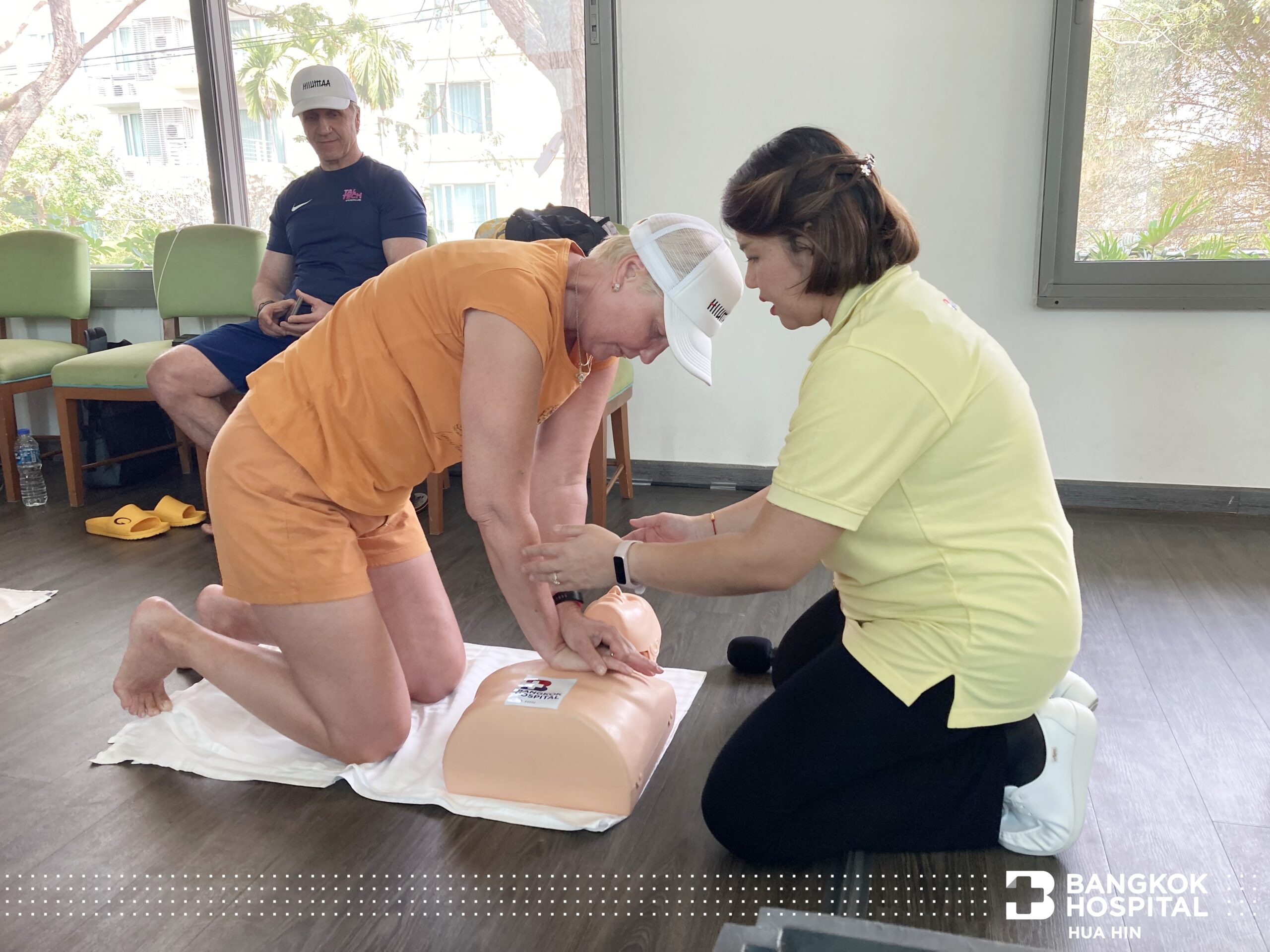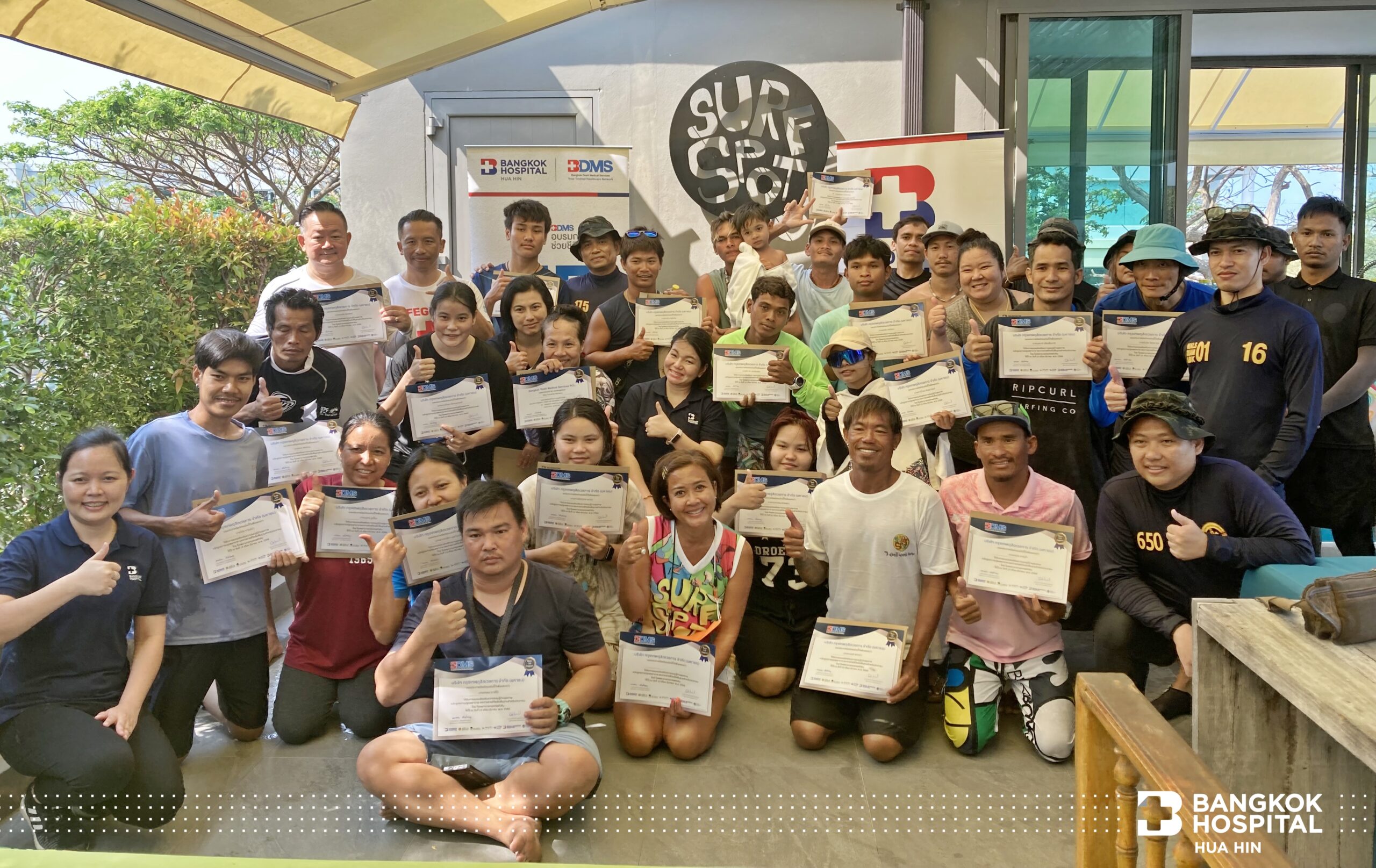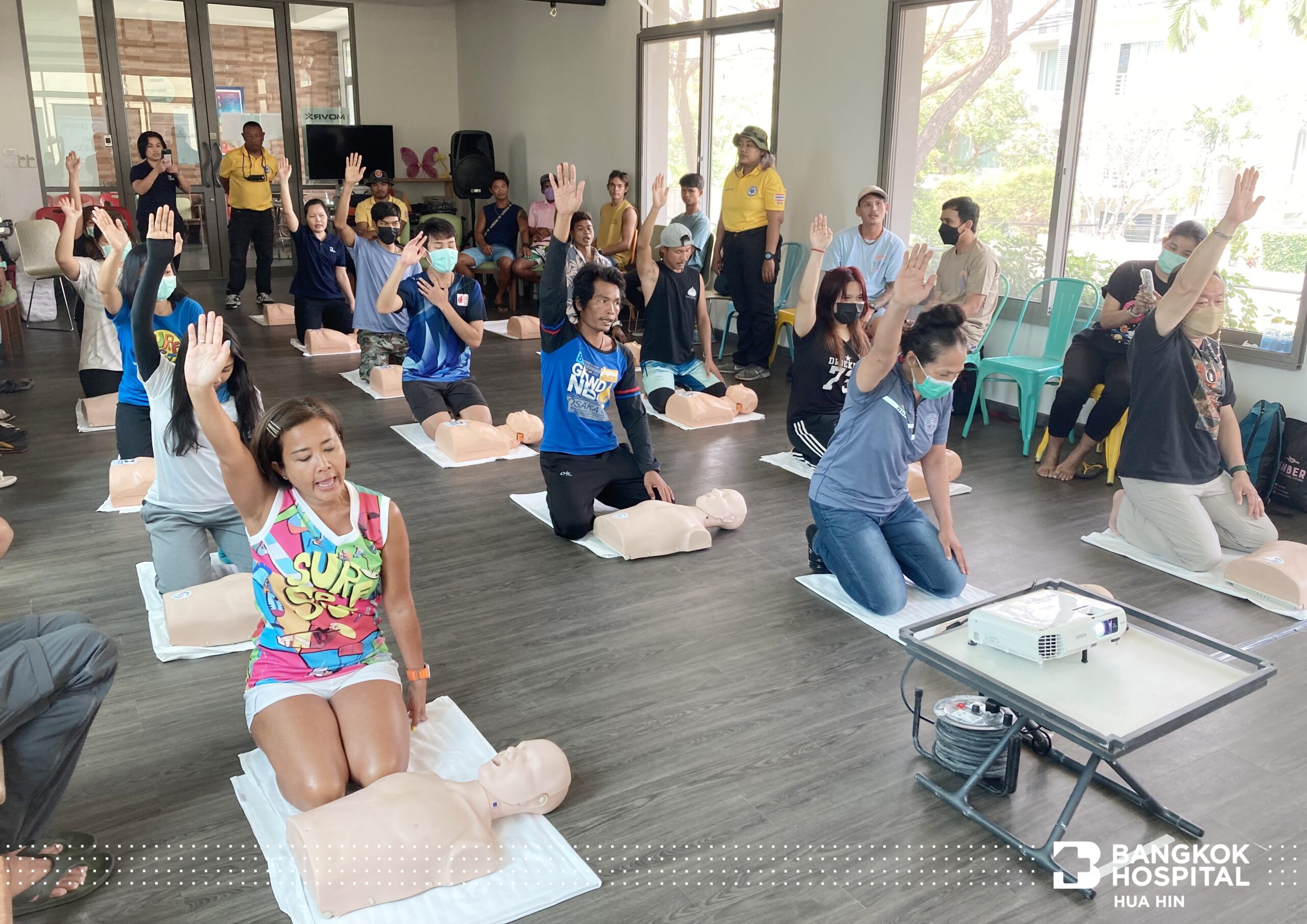 ซึ่งในครั้งนี้ได้จัดให้มีวิทยากรผู้เชี่ยวชาญจากชมรมกู้ชีพทางน้ำประเทศไทย นำทีมโดย เรือเอก สรายุทธ ทอนชัย ร่วมด้วยวิทยากรจากรพ.กรุงเทพหัวหิน นำทีมโดย นางสาวแพรวพรรณ เจริญศรีทองกุล พยาบาลวิชาชีพห้องฉุกเฉิน โดยมีการสอนทั้งภาคทฤษฎีและฝึกปฏิบัติจริงในการช่วยเหลือผู้ประสบภัยทางน้ำ ช่วยเหลือผู้ที่หัวใจกำลังจะหยุดเต้น ด้วยการปั๊มหัวใจ (CPR) กับหุ่นฝึกกู้ชีพ การใช้เครื่องกระตุกหัวใจด้วยไฟฟ้าชนิดอัตโนมัติ (AED) การช่วยเหลือผู้ป่วยสำลักอุดกั้นทางเดินหายใจ และการช่วยกู้ชีพคนจมน้ำโดยการฝึกปฏิบัติจริงในน้ำ เพื่อให้สามารถช่วยชีวิตผู้ป่วยในเหตุฉุกเฉินเร่งด่วนอย่างถูกวิธีก่อนส่งถึงมือแพทย์ได้