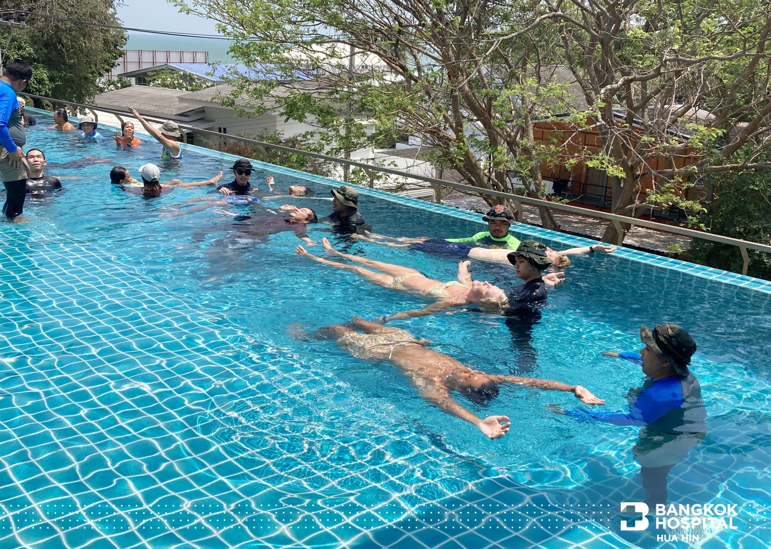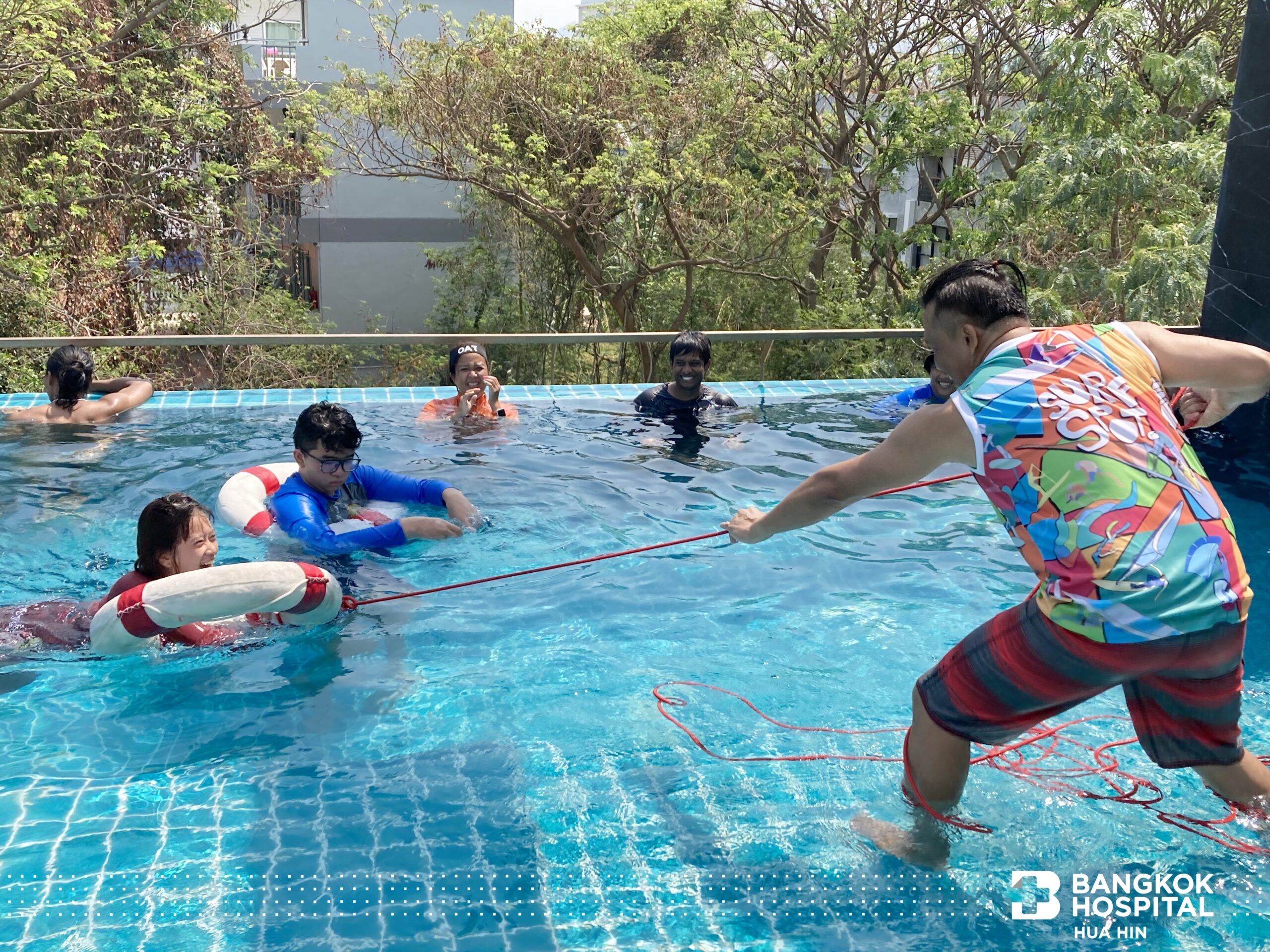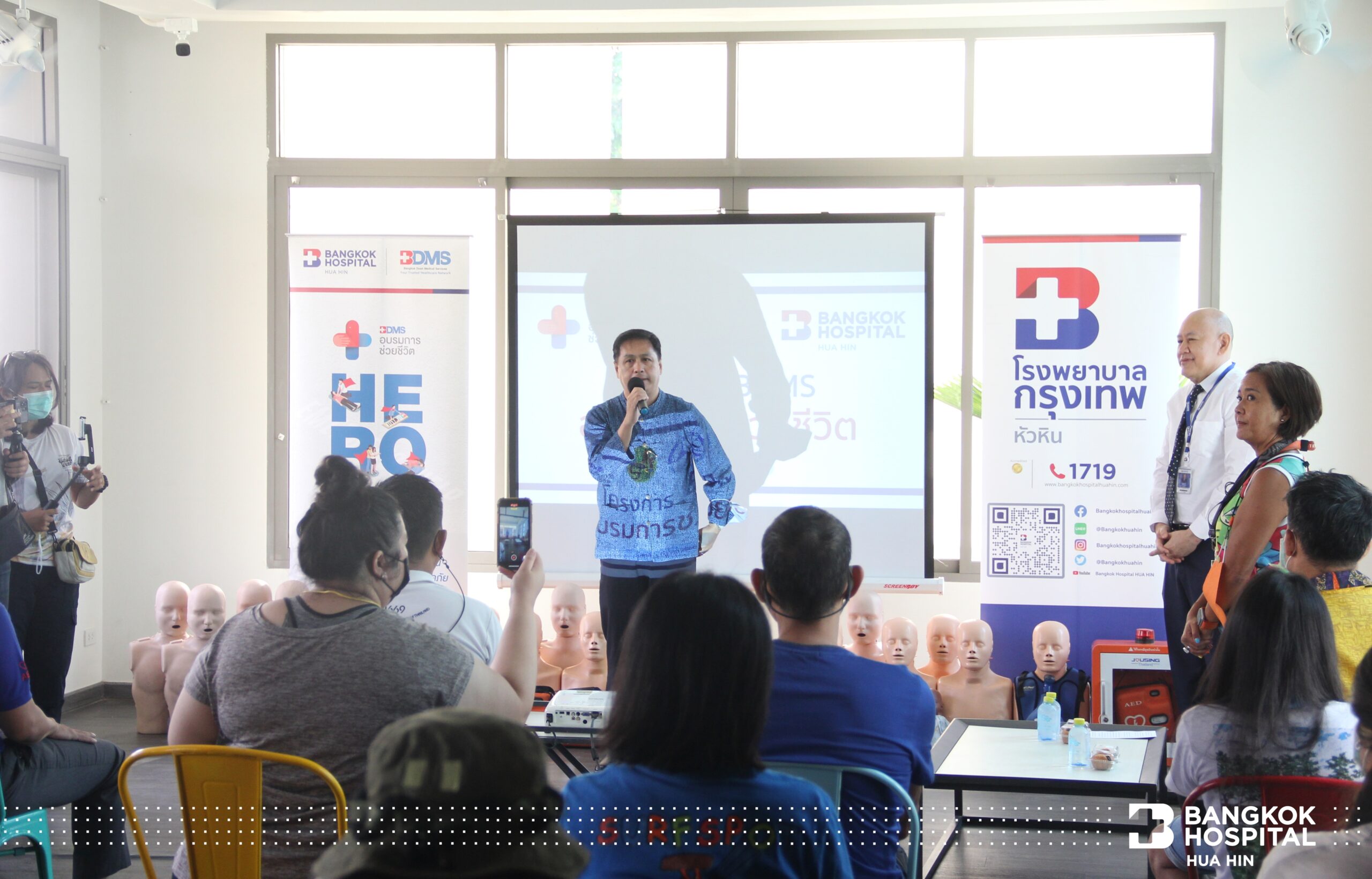 ซึ่งในครั้งนี้ได้จัดให้มีวิทยากรผู้เชี่ยวชาญจากชมรมกู้ชีพทางน้ำประเทศไทย นำทีมโดย เรือเอก สรายุทธ ทอนชัย ร่วมด้วยวิทยากรจากรพ.กรุงเทพหัวหิน นำทีมโดย นางสาวแพรวพรรณ เจริญศรีทองกุล พยาบาลวิชาชีพห้องฉุกเฉิน โดยมีการสอนทั้งภาคทฤษฎีและฝึกปฏิบัติจริงในการช่วยเหลือผู้ประสบภัยทางน้ำ ช่วยเหลือผู้ที่หัวใจกำลังจะหยุดเต้น ด้วยการปั๊มหัวใจ (CPR) กับหุ่นฝึกกู้ชีพ การใช้เครื่องกระตุกหัวใจด้วยไฟฟ้าชนิดอัตโนมัติ (AED) การช่วยเหลือผู้ป่วยสำลักอุดกั้นทางเดินหายใจ และการช่วยกู้ชีพคนจมน้ำโดยการฝึกปฏิบัติจริงในน้ำ เพื่อให้สามารถช่วยชีวิตผู้ป่วยในเหตุฉุกเฉินเร่งด่วนอย่างถูกวิธีก่อนส่งถึงมือแพทย์ได้