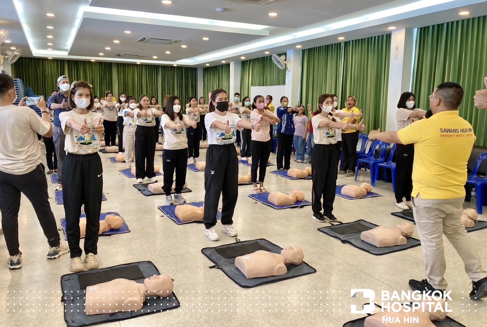 โครงการนี้จัดอบรมต่อเนื่องมาตั้งแต่ปี 2565 โดยวิทยากรผู้เชี่ยวชาญจากรพ.กรุงเทพหัวหิน พร้อมด้วยทีมกู้ภัยจากมูลนิธิสว่างหัวหินธรรมสถาน อบรมทั้งภาคทฤษฎีและการฝึกปฏิบัติจริงในการช่วยชีวิตด้วยการปั๊มหัวใจ CPR การใช้เครื่อง AED กระตุกหัวใจด้วยไฟฟ้า และการช่วยเหลือผู้ป่วยสำลักอุดกั้นทางเดินหายใจ เพื่อให้ผู้เข้าอบรมมีความมั่นใจว่าเราทุกคนสามารถช่วยชีวิตคน และสามารถเผยแพร่ความรู้นี้ไปยังผู้คนรอบข้างได้