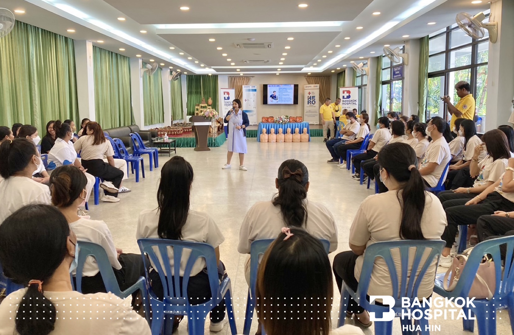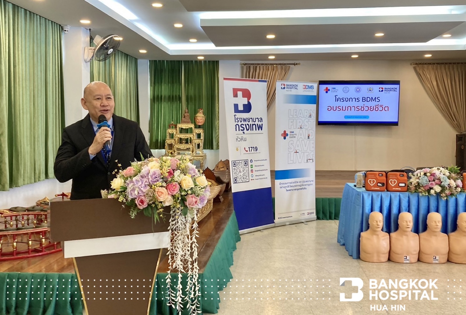 17 พฤษภาคม 2566 โรงพยาบาลกรุงเทพหัวหิน จัดโครงการ “BDMS อบรมการช่วยชีวิต รุ่นที่ 14” ให้แก่คุณครูและบุคลากรทางการศึกษา กว่า 60 คน จากรร. มัธยมสาธุการวิทยา รร.อนุบาลปรารถนา และรร.สมถวิลวิเทศศึกษาห้วยมงคล โดยมี คุณชโนทัย เจริญเนือง ผู้อำนวยการรร.มัธยมสาธุการวิทยา นพ.พงษ์ศักดิ์ บุญยะลีพรรณ ผู้ช่วยผู้อำนวยการรพ.กรุงเทพหัวหิน และคุณวิสุทธิ์ บุญยศักดิ์เสรี รองประธานมูลนิธิสว่างหัวหินธรรมสถาน ร่วมพิธีเปิด ณ รร.มัธยมสาธุการวิทยา