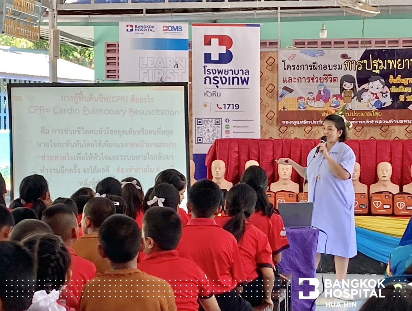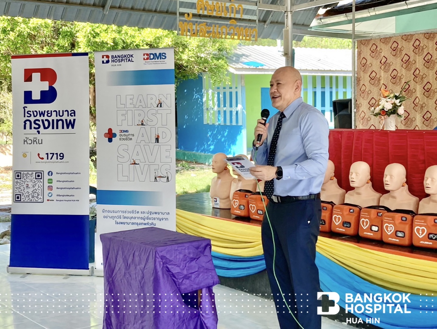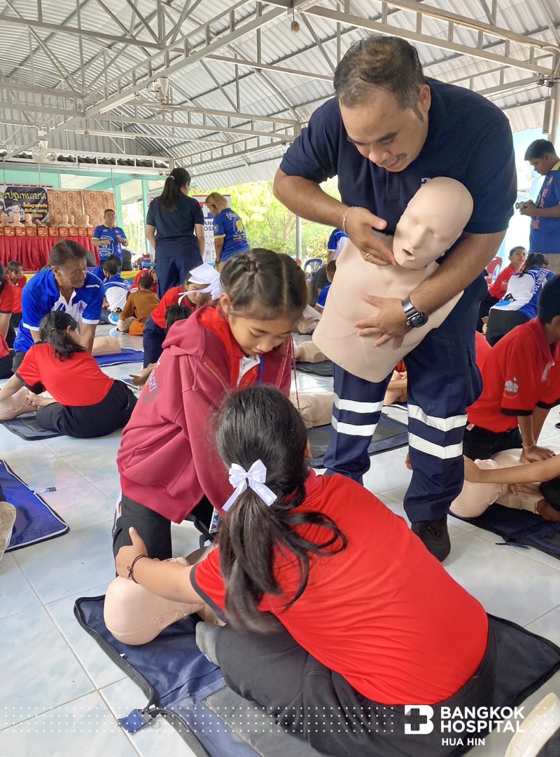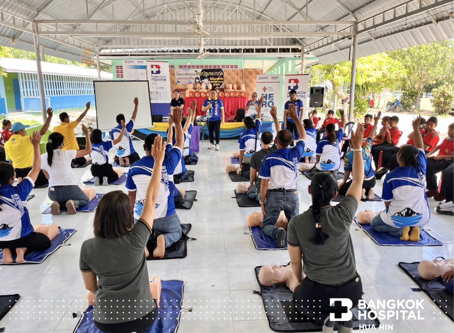 โรงพยาบาลกรุงเทพหัวหิน ร่วมกับ โรงพยาบาลส่งเสริมสุขภาพตำบลบ้านห้วยไทรงาม และกองทุนหลักประกันสุขภาพองค์การบริหารส่วนตำบลหนองพลับ จัดโครงการ “BDMS อบรมการช่วยชีวิต รุ่นที่ 17” ให้แก่นักเรียน คุณครูประชาชน หมู่ที่ 9 บ้านคอกช้างพัฒนา และอาสาสมัครสาธารณสุขประจำโรงพยาบาลส่งเสริมสุขภาพตำบลบ้านห้วยไทรงาม จำนวน 70 คน โดยมี นพ.พงษ์ศักดิ์ บุญยะลีพรรณ ผู้ช่วยผู้อำนวยการรพ.กรุงเทพหัวหิน คุณเชาวฤทธิ์ สงสัย ผู้ใหญ่บ้านหมู่ 9 บ้านคอกช้างพัฒนา และว่าที่ร้อยตรีธนสาร แกมไทย ผู้อำนวยการโรงเรียนบ้านบ้านคอกช้างพัฒนา และ คุณรัชนีย์ ดีตลอด ผู้อำนวยการโรงพยาบาลส่งเสริมสุขภาพตำบลบ้านห้วยไทรงาม ร่วมพิธีเปิด ณ โรงเรียนบ้านคอกช้างพัฒนา ต.หนองพลับ อ.หัวหิน จ.ประจวบคีรีขันธ์ เมื่อวันที่ 23 มิถุนายน 2566