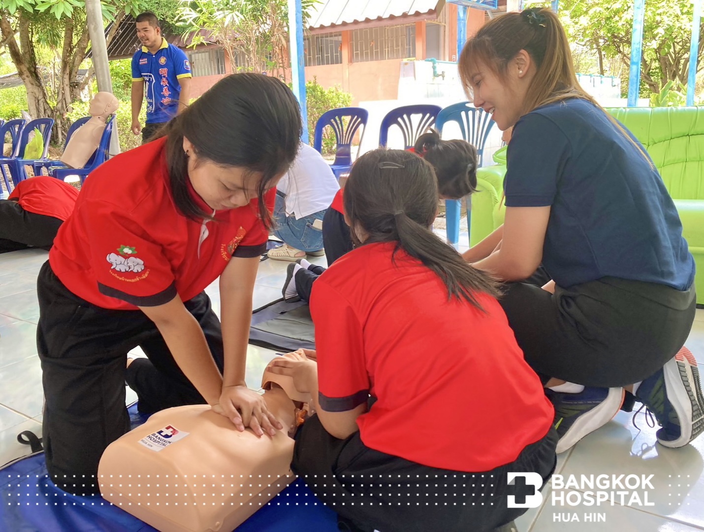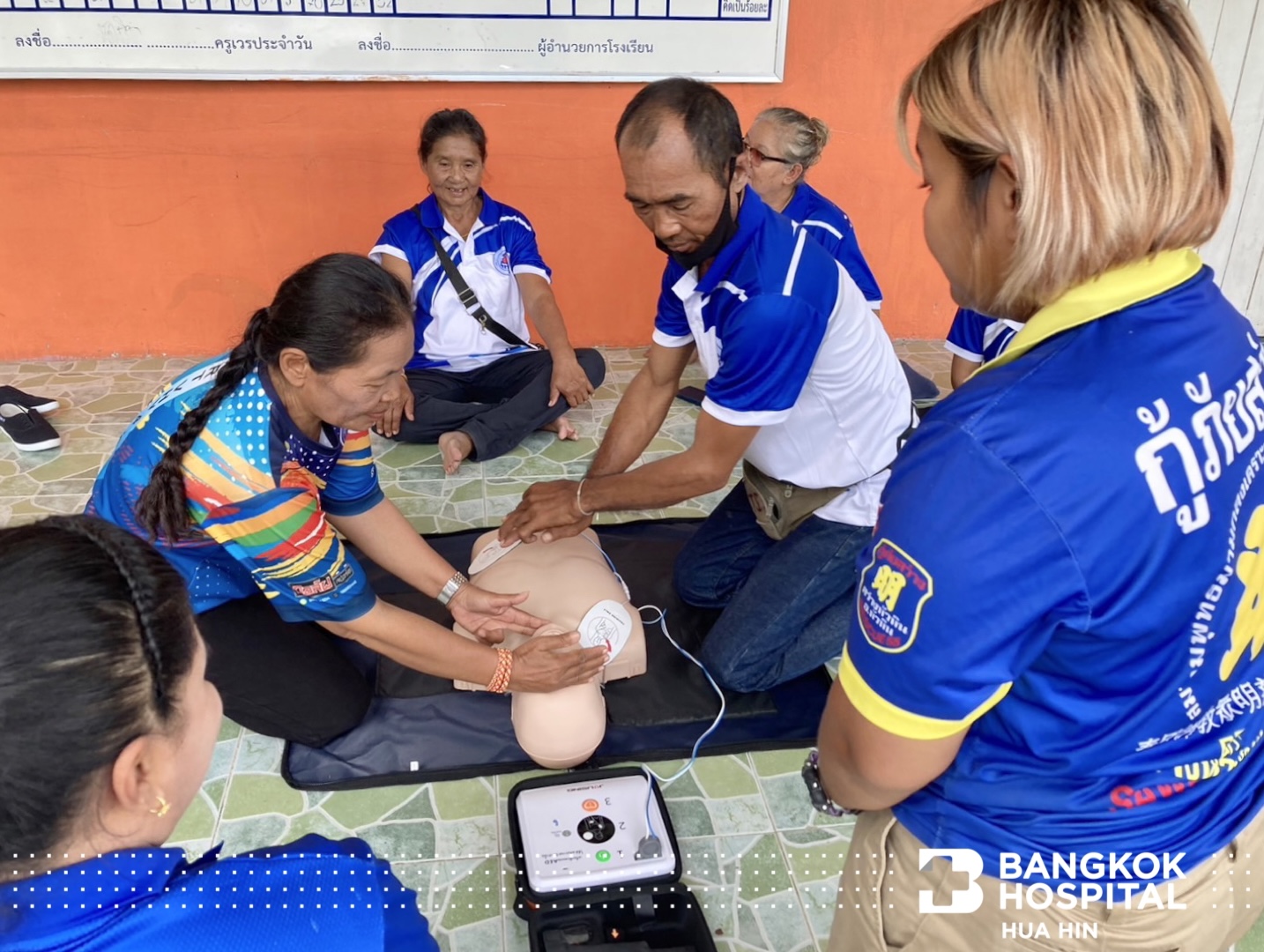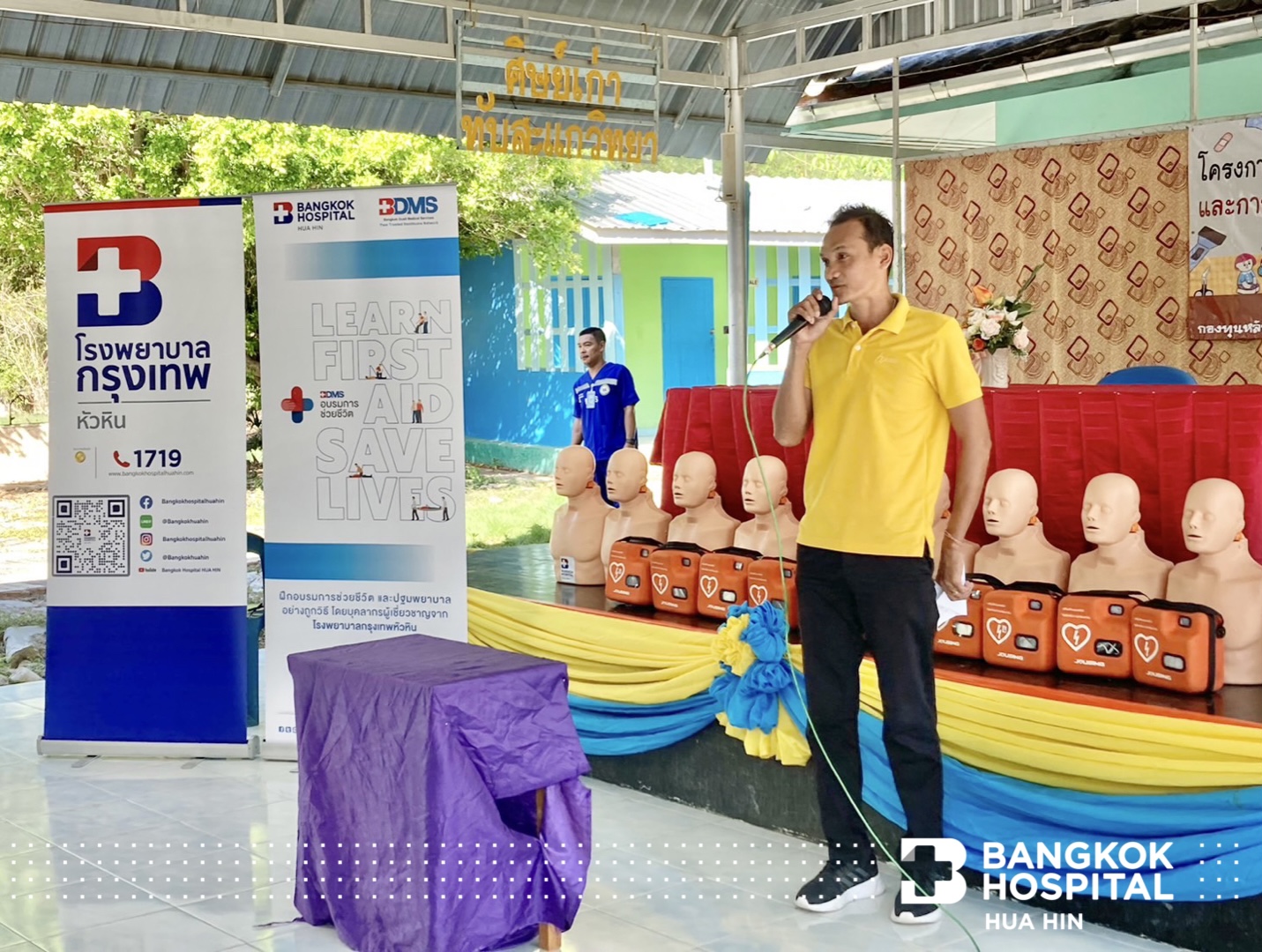 โครงการนี้จัดอบรมโดยวิทยากรผู้เชี่ยวชาญจากรพ.กรุงเทพหัวหิน พร้อมด้วยทีมกู้ภัยจากมูลนิธิสว่างหัวหินธรรมสถาน อบรมทั้งภาคทฤษฎีและการฝึกปฏิบัติจริงในการช่วยชีวิตด้วยการปั๊มหัวใจ CPR การใช้เครื่อง AED กระตุกหัวใจด้วยไฟฟ้า และการปฐมพยาบาลเบื้องต้น เพื่อให้ผู้เข้าอบรมมีความมั่นใจว่าเราทุกคนสามารถช่วยชีวิตคน และสามารถเผยแพร่ความรู้นี้ไปยังผู้คนรอบข้างได้