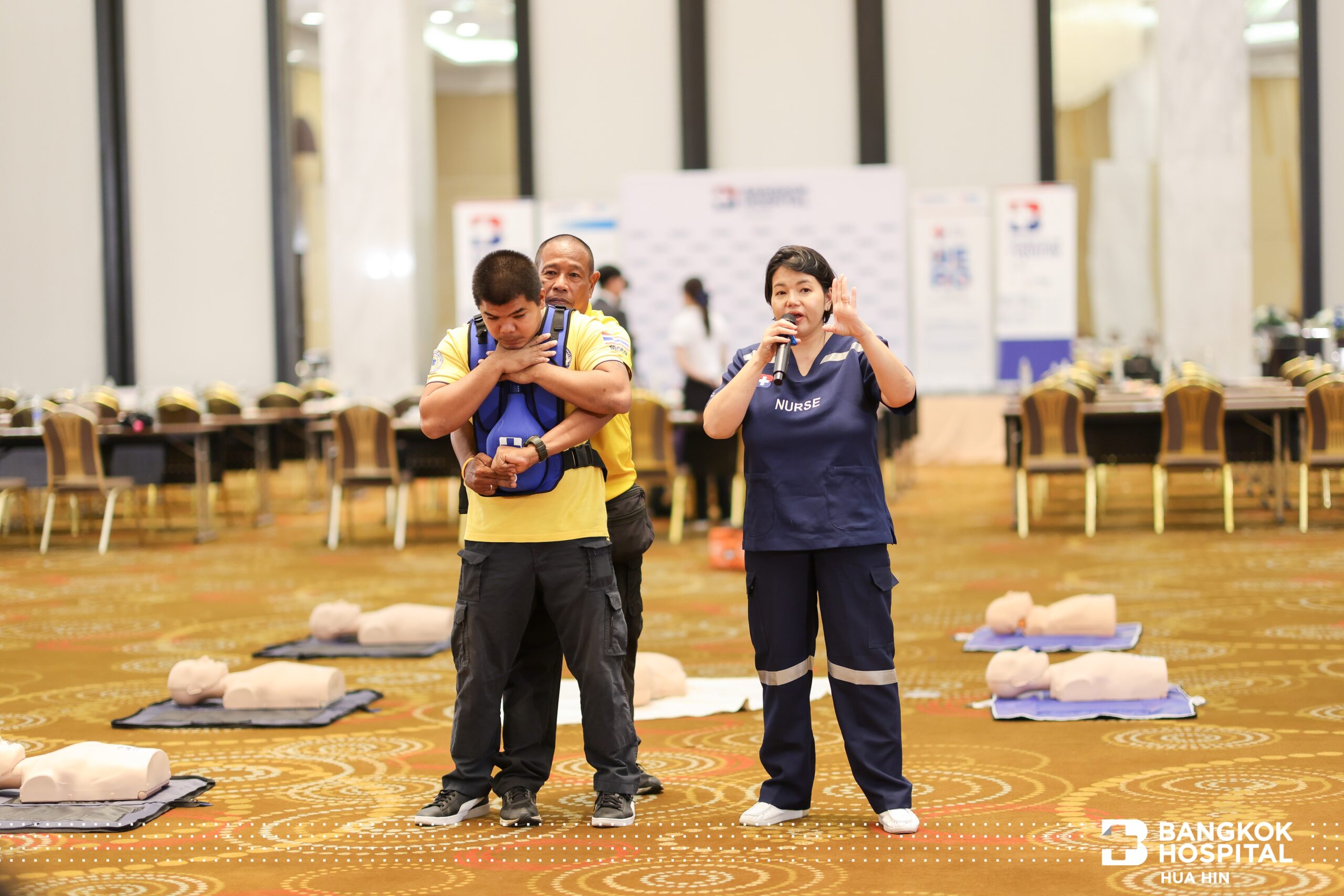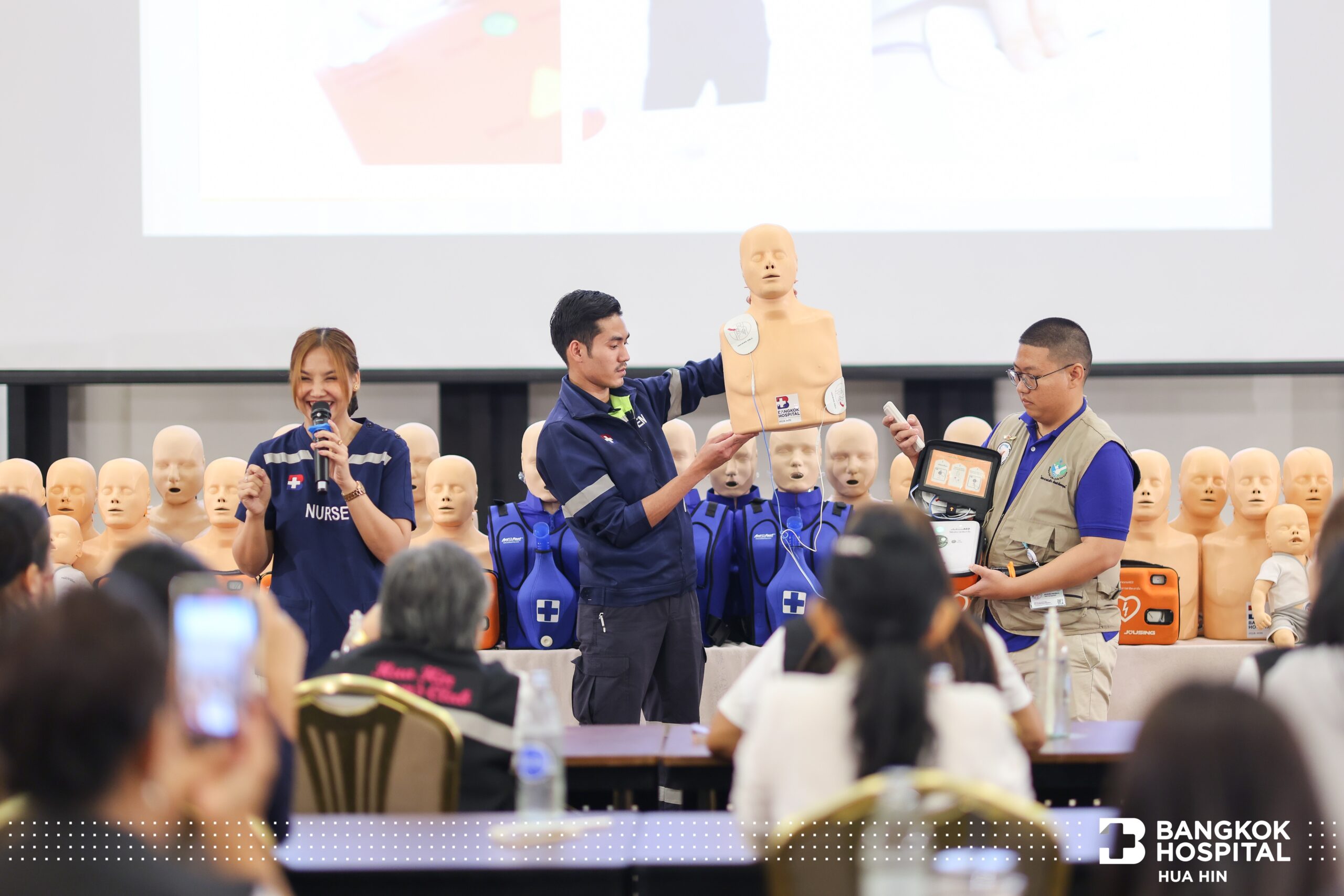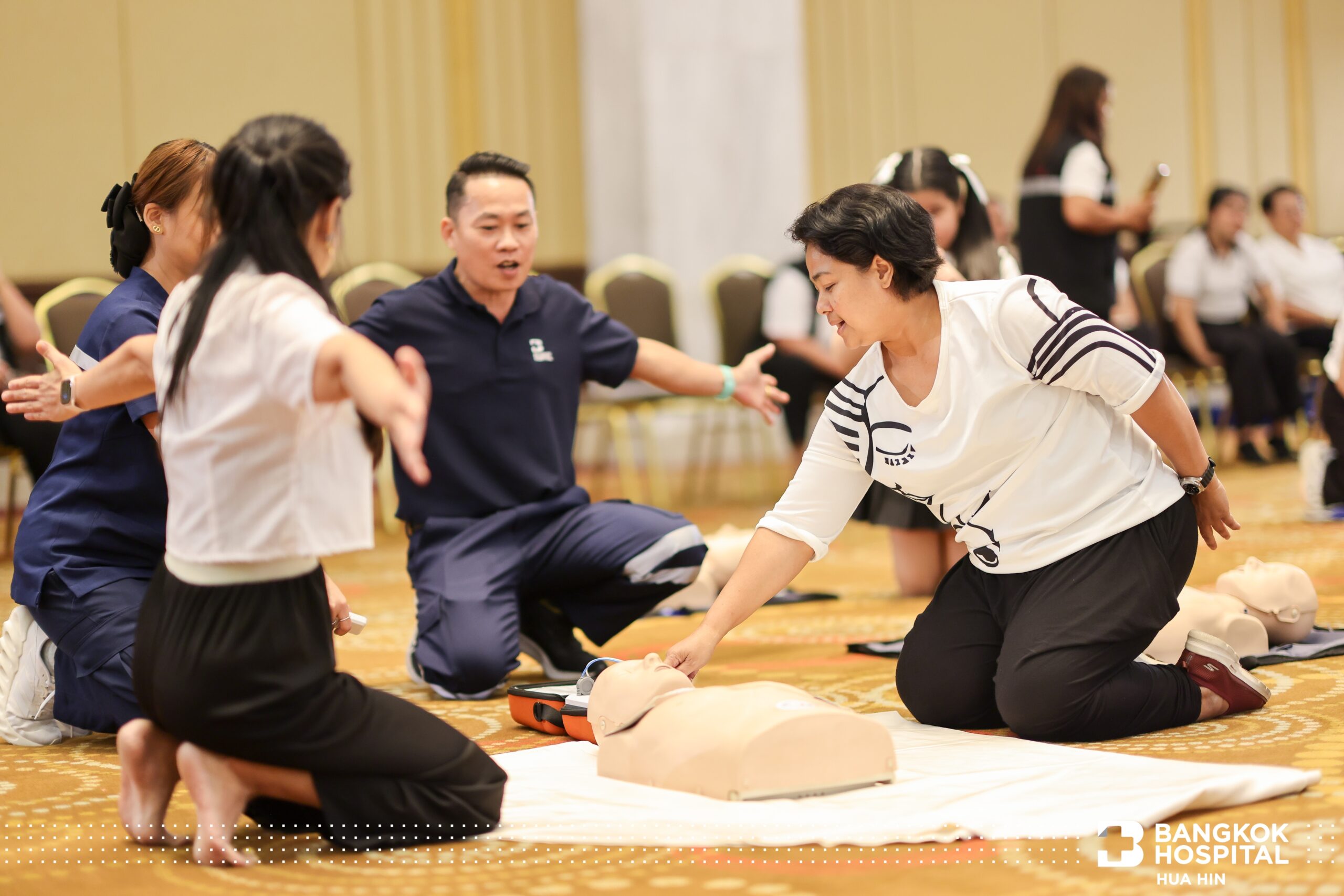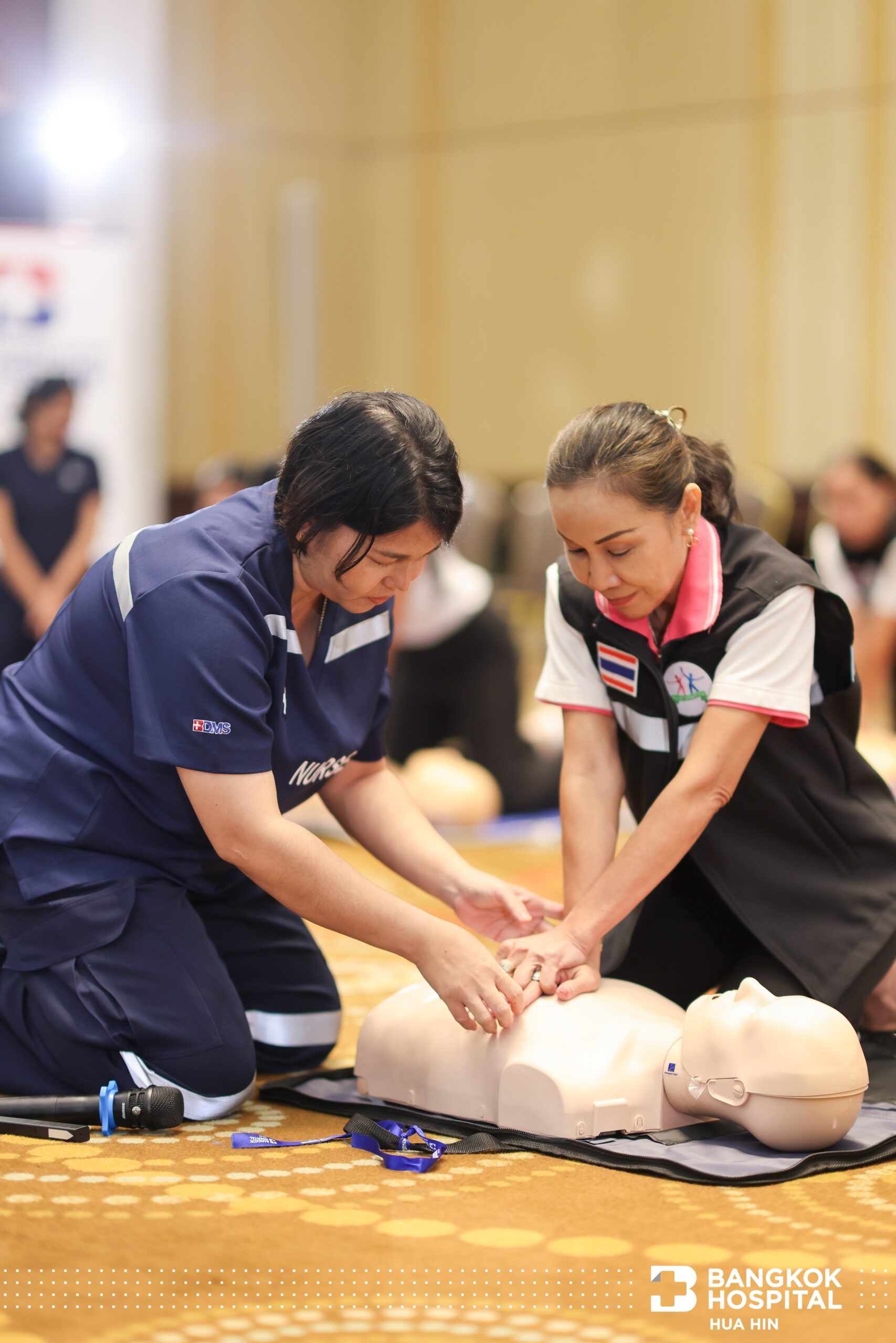 โรงพยาบาลกรุงเทพหัวหิน ตั้งเป้าหมายในการอบรมการช่วยชีวิตให้กับชาวหัวหิน ให้มีความรู้ ความเข้าใจในการช่วยชีวิตผู้ป่วยเมื่อเกิดเหตุฉุกเฉินเร่งด่วนได้อย่างถูกวิธีก่อนส่งถึงมือแพทย์ การอบรมจะมีทั้งภาคทฤษฎีและฝึกปฏิบัติ โดยวิทยากรผู้เชี่ยวชาญจากรพ.กรุงเทพหัวหิน และมูลนิธิสว่างหัวหินธรรมสถาน ในการกู้ชีพด้วยการปั๊มหัวใจ (CPR) กับหุ่นฝึก ร่วมกับการใช้เครื่องกระตุกหัวใจด้วยไฟฟ้าชนิดอัตโนมัติ (AED) การช่วยเหลือผู้ป่วยสำลักอุดกั้นทางเดินหายใจ (Choking) และ First Aid การปฐมพยาบาลเบื้องต้น ซึ่งผู้ที่ผ่านการฝึกอบรมจะได้รับมอบประกาศนียบัตรจาก BDMS ตามแนวคิดที่ว่า แม้ไม่ได้เป็นบุคลากรทางการแพทย์ หากเรามีองค์ความรู้และมีความมั่นใจ ผ่านการอบรมและฝึกปฏิบัติจริง โดยวิทยากรผู้เชี่ยวชาญ ภายใต้หลักการที่เป็นสากล