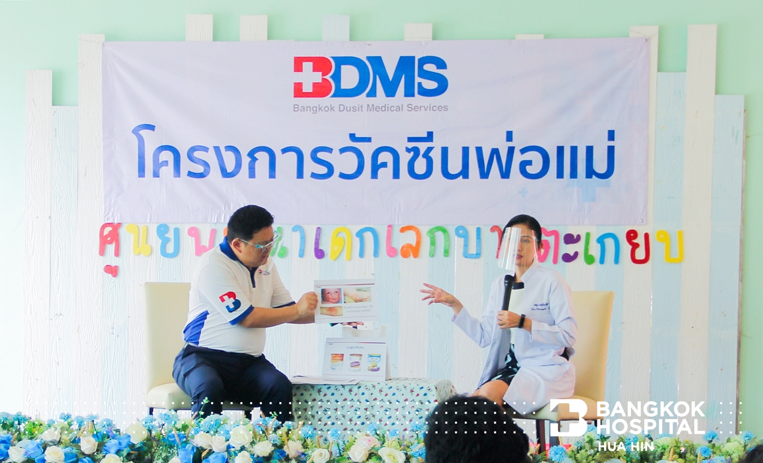 นพ. วีระศักดิ์ พงษ์พัฒนพันธุ์ ผู้อำนวยการโรงพยาบาลกรุงเทพหัวหิน เป็นประธานในการเปิดงาน “โครงการวัคซีนพ่อแม่ ครั้งที่ 16” ของ บริษัท กรุงเทพดุสิตเวชการ จำกัด (มหาชน) ร่วมกับ โรงพยาบาลกรุงเทพหัวหิน พร้อมด้วย นพ. พงษ์ศักดิ์ บุญยะลีพรรณ ผู้ช่วยผู้อำนวยการโรงพยาบาลกรุงเทพหัวหิน จ่าพันเอกหญิงทัศนีย์ โชคสุชาติ พยาบาลวิชาชีพชำนาญการ กองสาธารณสุขและสิ่งแวดล้อม เทศบาลเมืองหัวหิน และ คุณครูจริยา แก้วสกด รักษาการหัวหน้าศูนย์พัฒนาเด็กเล็กบ้านตะเกียบ ซึ่งการจัดงานในครั้งนี้เป็นการให้ความรู้แก่พ่อแม่ผู้ปกครองและคุณครูในการดูแลสุขภาพเด็กเล็ก โดยมี พญ. เพลินพิศ ลิขสิทธิพันธุ์ กุมารแพทย์โรคภูมิแพ้และภูมิคุ้มกัน โรงพยาบาลกรุงเทพหัวหิน เป็นวิทยากร ในหัวข้อ “การแพ้อาหารในเด็ก” เรื่องไม่เล็กที่คุณพ่อคุณแม่ต้องเตรียมพร้อม ณ ศูนย์พัฒนาเด็กเล็กบ้านตะเกียบ อ.หัวหิน จ.ประจวบคีรีขันธ์ เมื่อวันที่ 28 สิงหาคม 2563