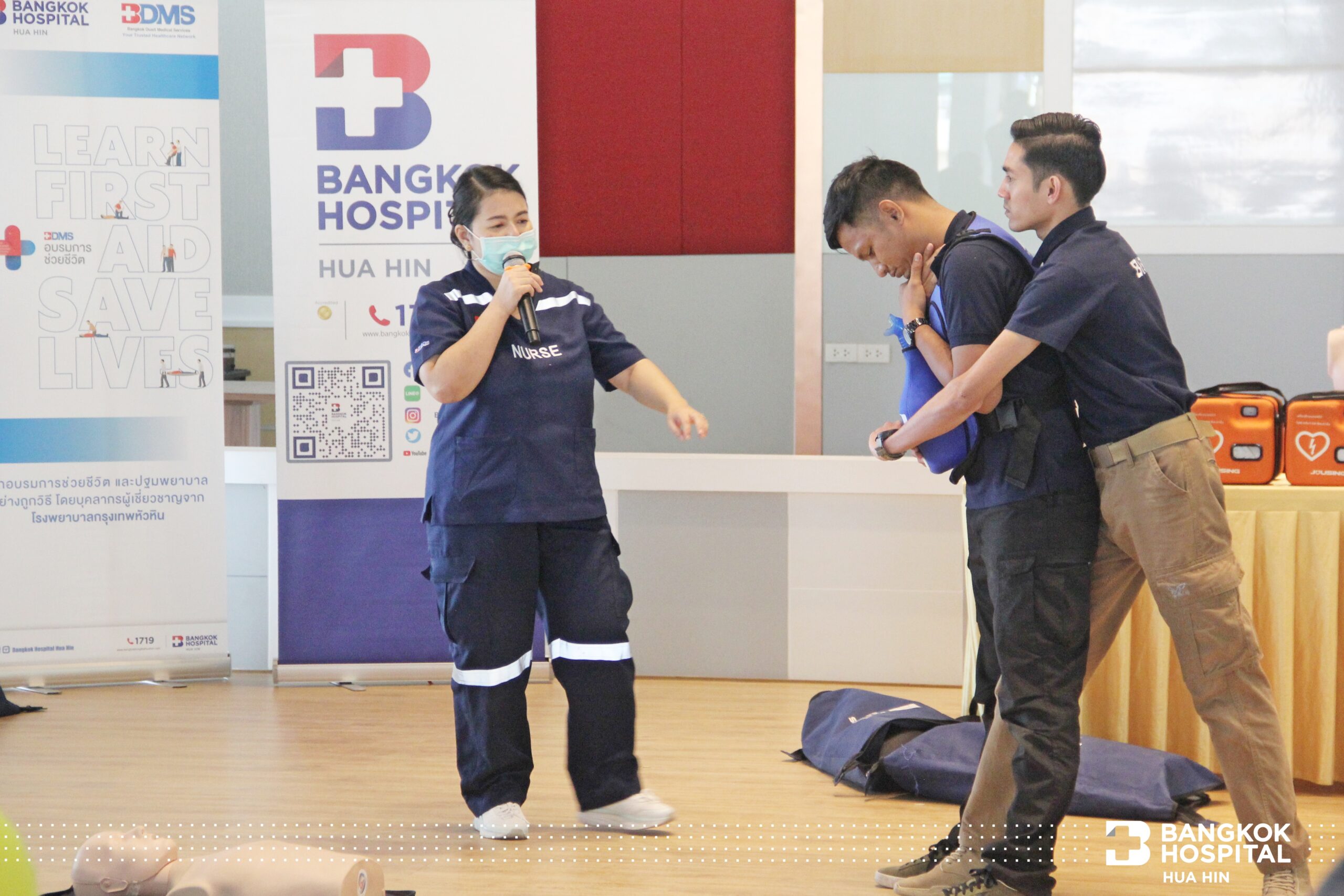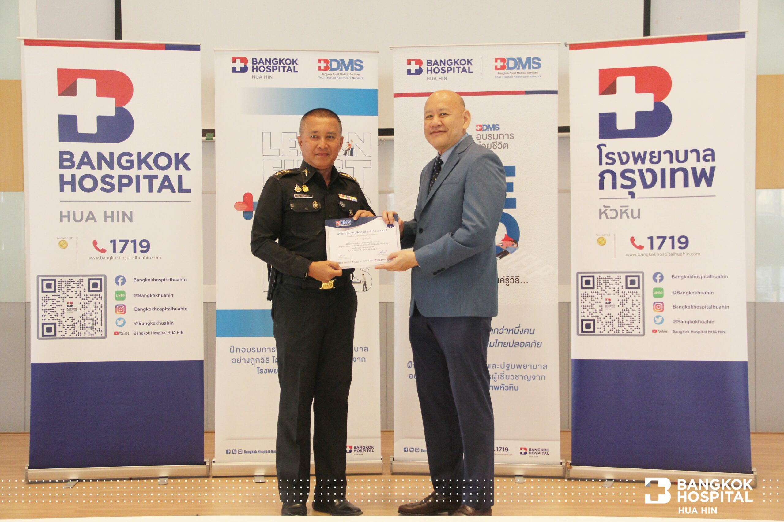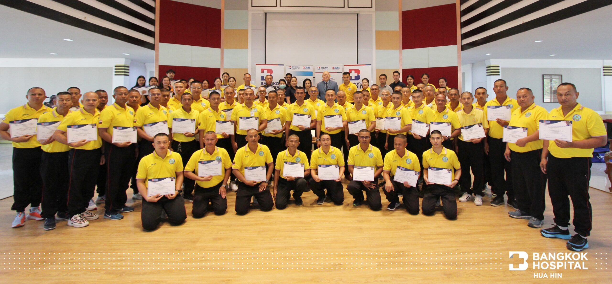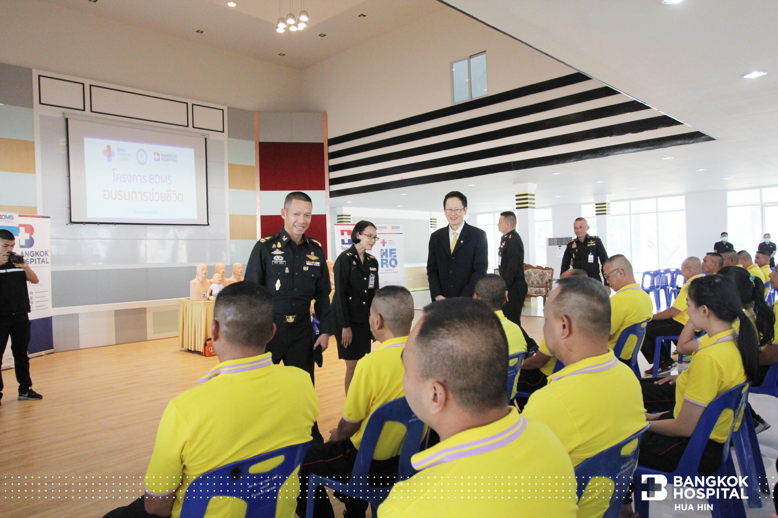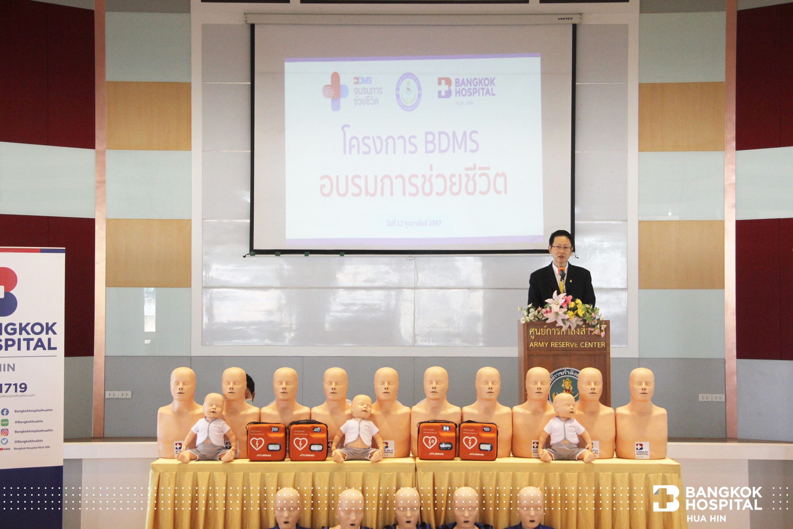 ทางด้าน นพ.วีระศักดิ์ พงษ์พัฒนพันธุ์ กล่าวถึงวัตถุประสงค์โครงการนี้ว่า โรงพยาบาลกรุงเทพหัวหิน ภายใต้การบริหารงานของ บริษัท กรุงเทพดุสิตเวชการ จำกัด (มหาชน) ได้จัดการอบรมนี้เป็นรุ่นที่ 25 เราตั้งเป้าหมายในการอบรมการช่วยชีวิตครั้งนี้ ให้กำลังพล ศสร. ผู้ที่ได้เข้ารับการอบรมมีความรู้ในการช่วยชีวิตผู้ป่วยเมื่อเกิดเหตุฉุกเฉินเร่งด่วนได้อย่างถูกวิธีก่อนส่งถึงมือแพทย์ การอบรมจะมีทั้งภาคทฤษฎีและฝึกปฏิบัติ โดยวิทยากรผู้เชี่ยวชาญ ในการช่วยเหลือผู้ที่หัวใจหยุดเต้น ด้วยการปั๊มหัวใจ (CPR) กับหุ่นฝึกกู้ชีพ การใช้เครื่องกระตุกหัวใจด้วยไฟฟ้าชนิดอัตโนมัติ (AED) และการช่วยเหลือผู้ป่วยสำลักอุดกั้นทางเดินหายใจ (Choking) ซึ่งผู้ที่ผ่านการฝึกอบรมจะได้รับมอบประกาศนียบัตรจาก BDMS ตามแนวคิดที่ว่า แม้ไม่ได้เป็นบุคลากรทางการแพทย์ หากเรามีองค์ความรู้และมีความมั่นใจ ผ่านการอบรมและฝึกปฏิบัติจริง