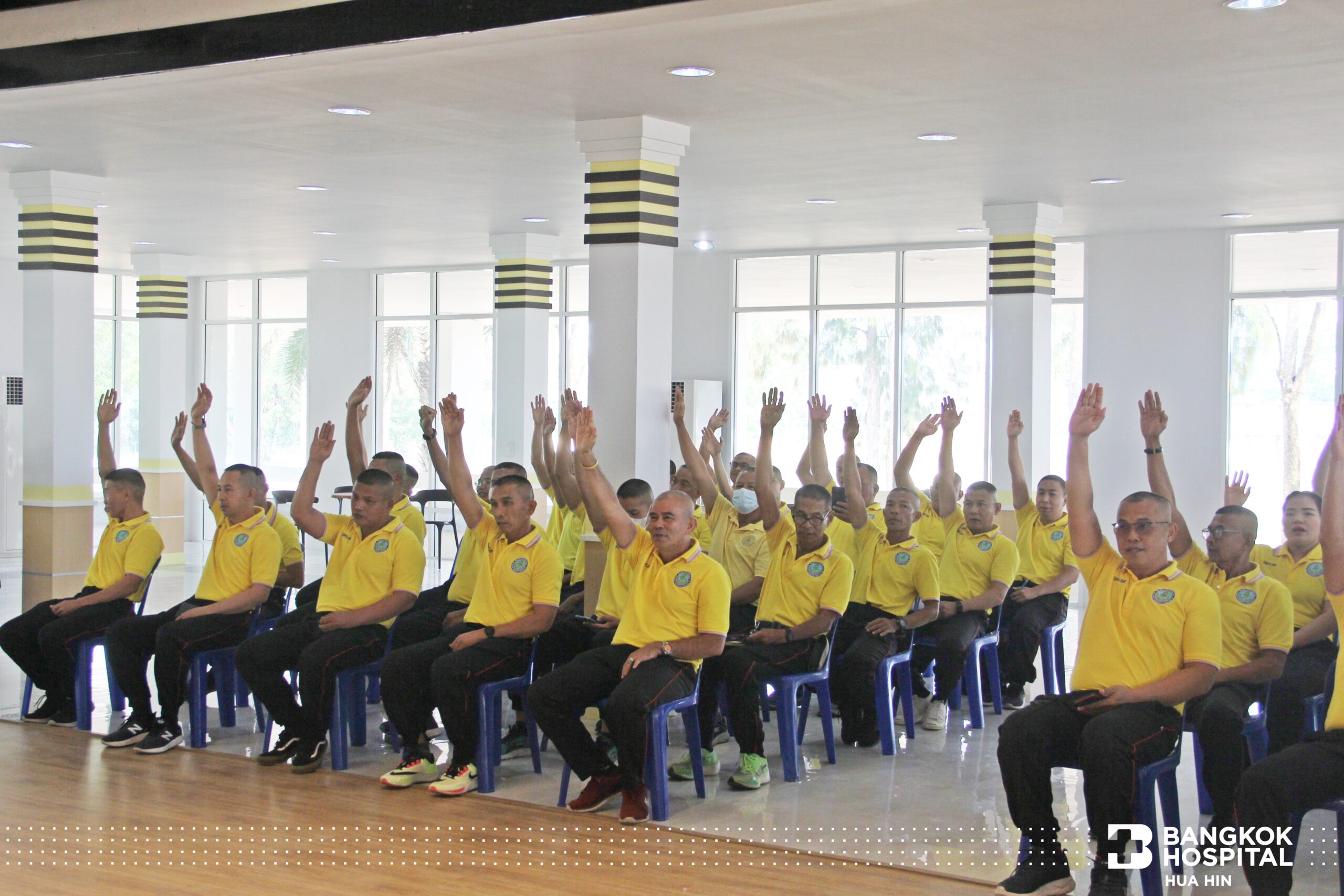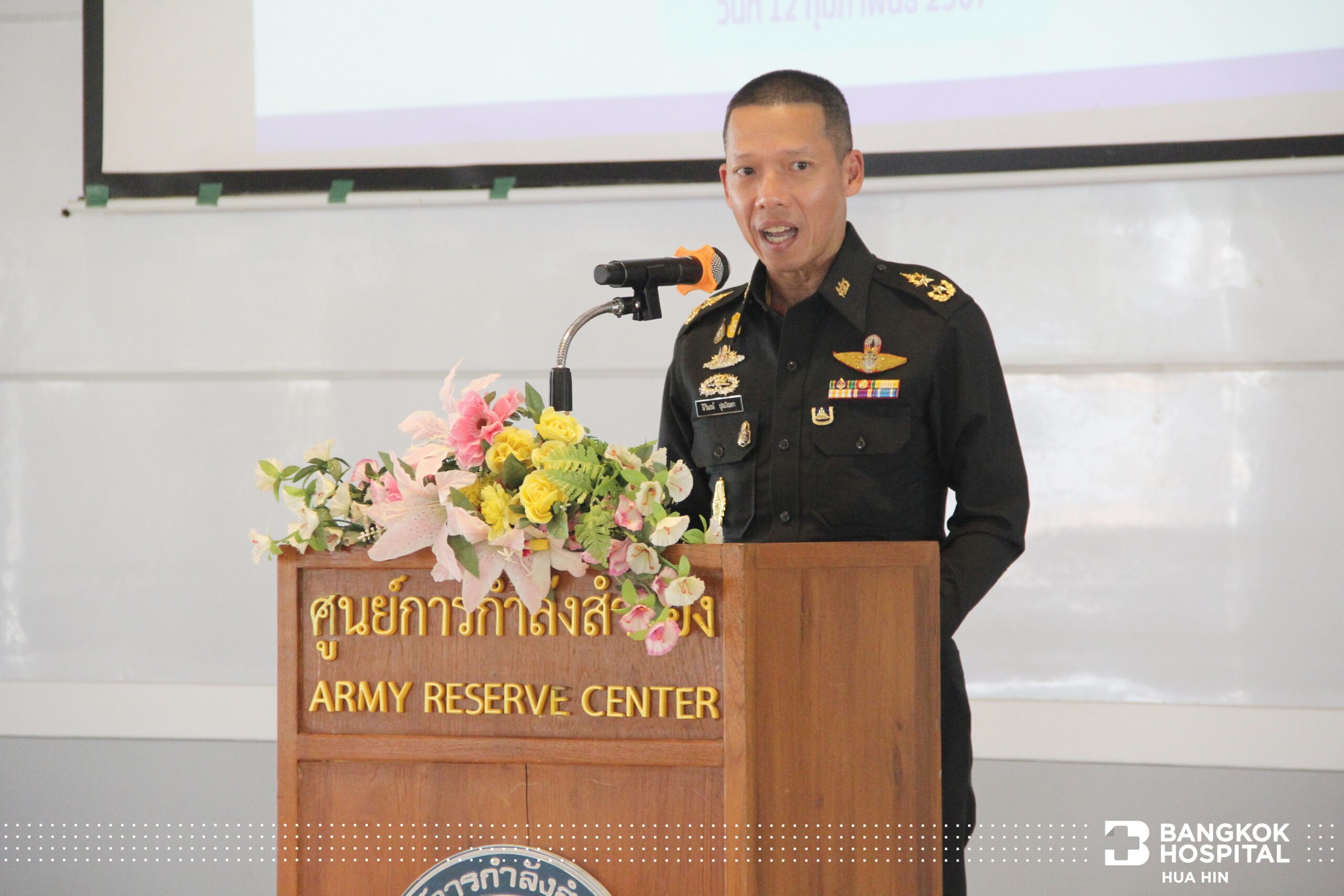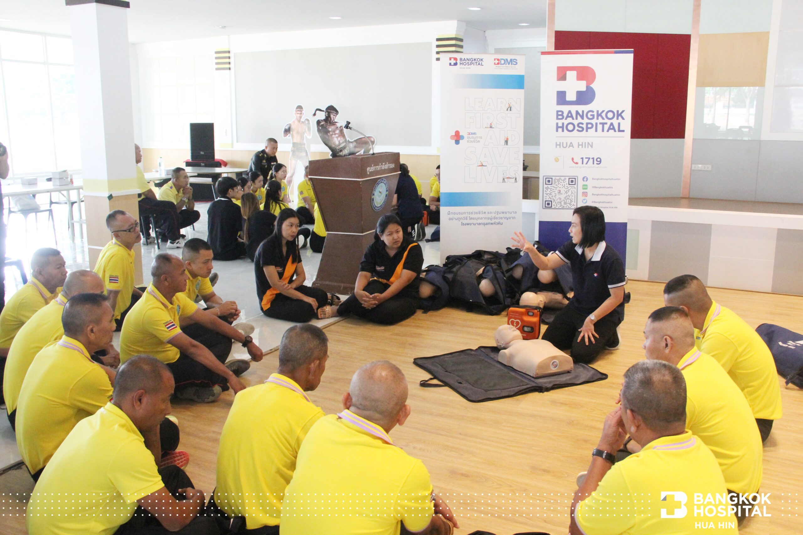 12 กุมภาพันธ์ 2567 โรงพยาบาลกรุงเทพหัวหิน จัดโครงการ BDMS อบรมการช่วยชีวิต ให้แก่กำลังพลกว่า 100 นาย ณ สโมสร ศูนย์การกำลังสำรอง ค่ายธนะรัชต์ อำเภอปราณบุรี โดยมี พลตรี นิรินธน์ ปุณโณทก ผู้บัญชาการศูนย์การกำลังสำรอง ค่ายธนะรัชต์ อำเภอปราณบุรี และ นพ.วีระศักดิ์ พงษ์พัฒนพันธุ์ ผู้อำนวยการโรงพยาบาลกรุงเทพหัวหิน ร่วมพิธีเปิด