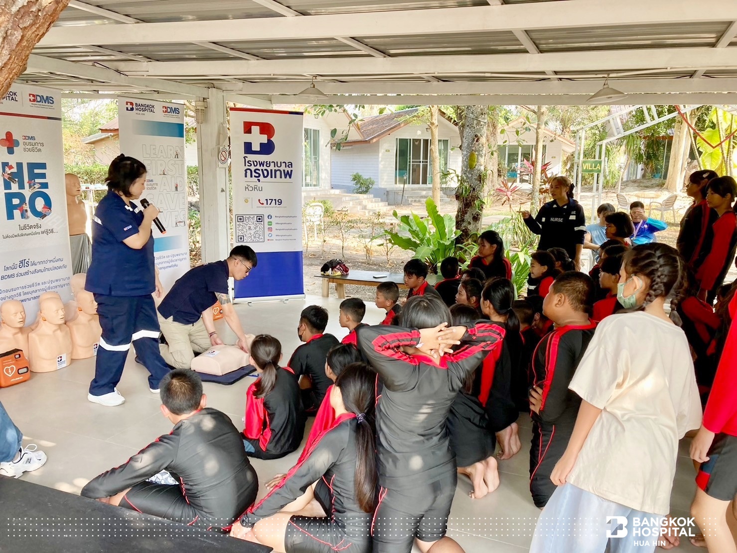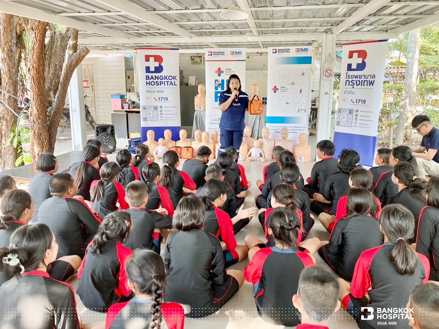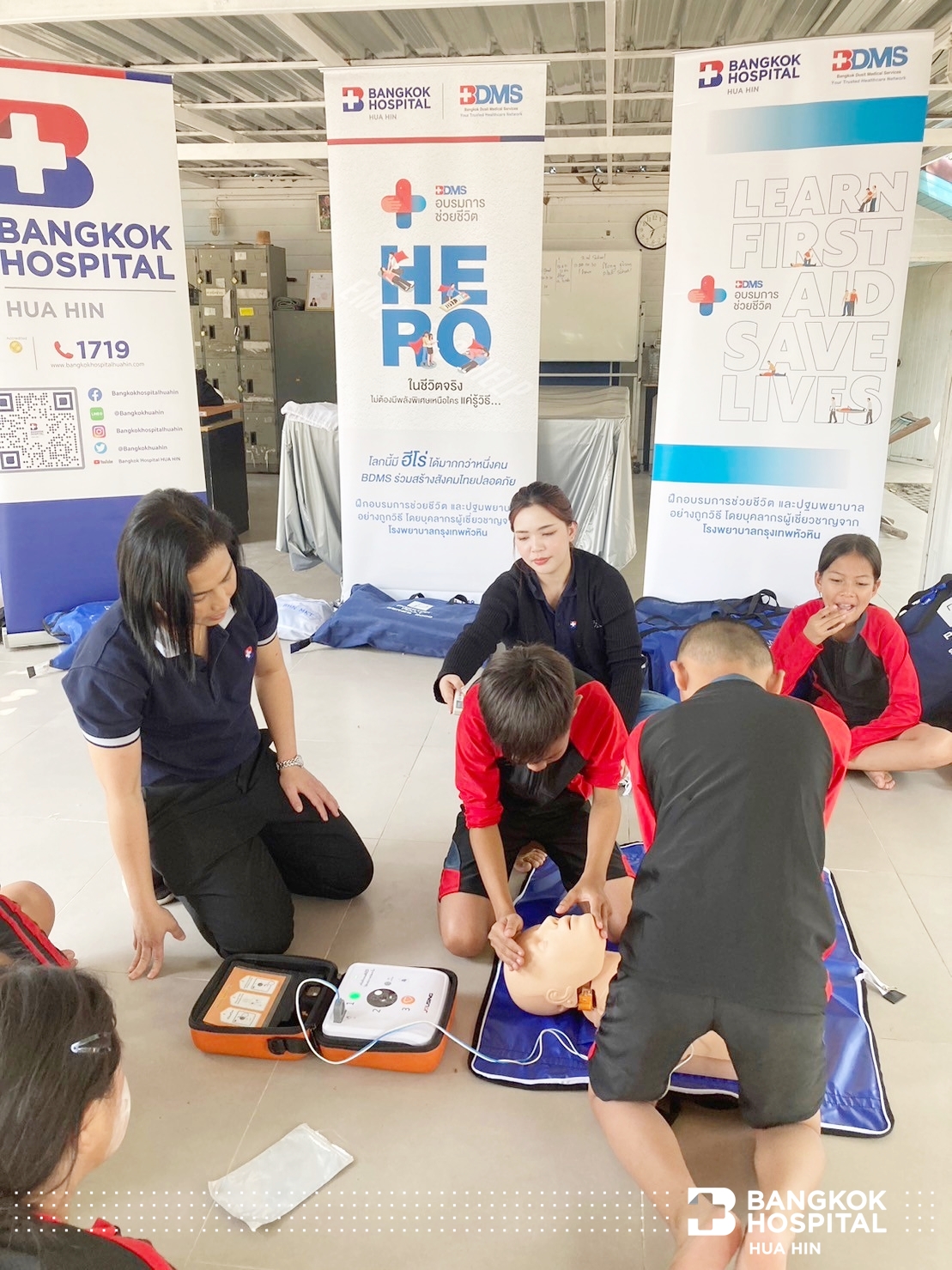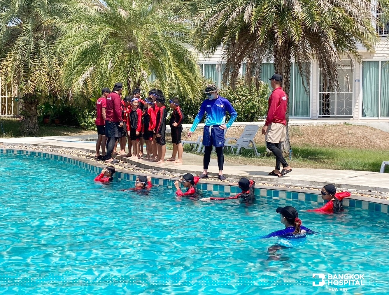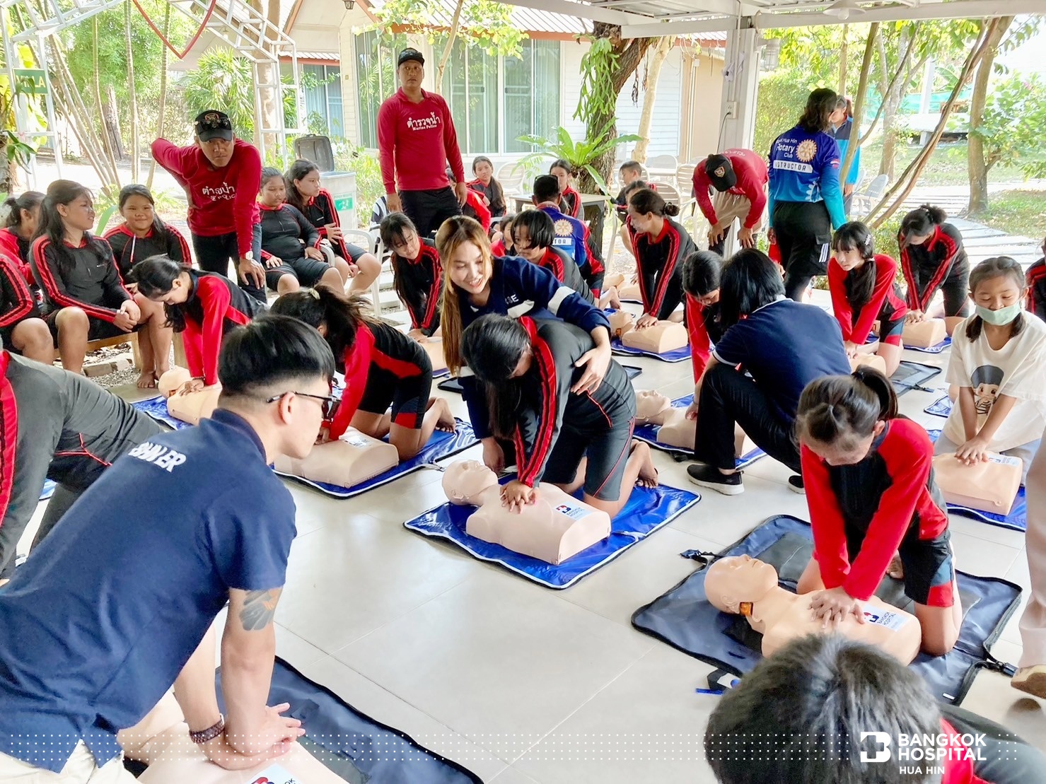 โครงการนี้จัดขึ้นด้วยความร่วมมือจากภาคีเครือข่ายในการสนับสนุนทีมวิทยากรผู้เชี่ยวชาญ ได้แก่ สโมสรโรตารีรอยัลหัวหิน เทศบาลเมืองหัวหิน สถานีตำรวจน้ำปราณบุรี และโรงพยาบาลกรุงเทพหัวหิน ถ่ายทอดความรู้สร้างทักษะให้เด็กและเยาวชนในการช่วยเหลือตนเองสามารถเอาชีวิตรอดจากการจมน้ำได้ด้วยการลอยตัวอยู่ในน้ำและให้ความรู้การช่วยเหลือผู้ประสบภัยทางน้ำ ทักษะการเอาชีวิตรอด ตะโกน โยน ยื่น และการช่วยชีวิตด้วยการปั๊มหัวใจ CPR การใช้เครื่อง AED กระตุกหัวใจด้วยไฟฟ้า ให้แก่นักเรียนชั้นประถมศึกษาปีที่ 5 โรงเรียนสาธิตเทศบาลบ้านหัวหิน เข้าร่วมการฝึกอบรม จำนวน 63 คน ในวันที่ 12 – 14 มีนาคม 2567 ณ สระว่ายน้ำ Greenway Hua Hin Resort ต.หินเหล็กไฟ อ.หัวหิน จ.ประจวบคีรีขันธ์
