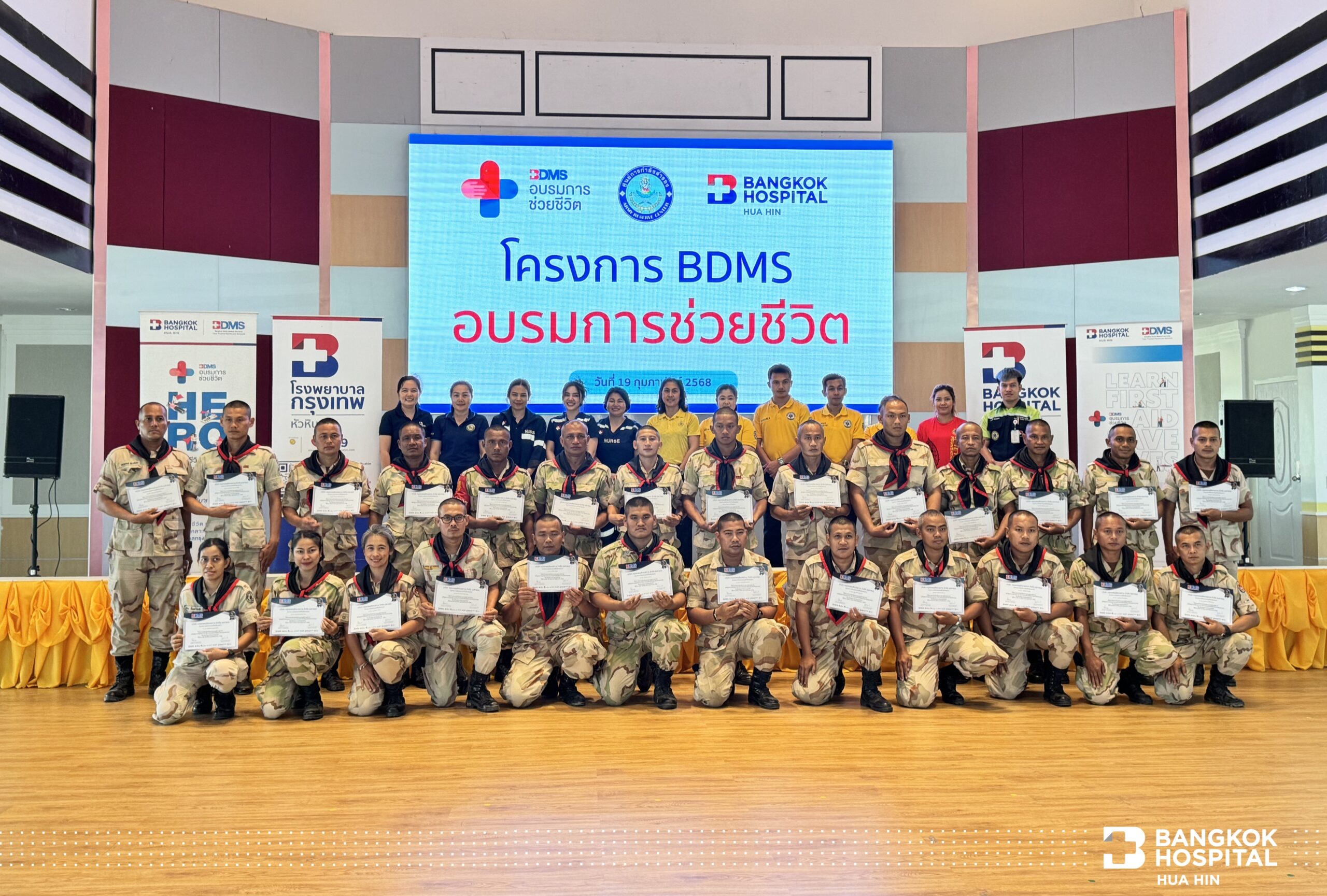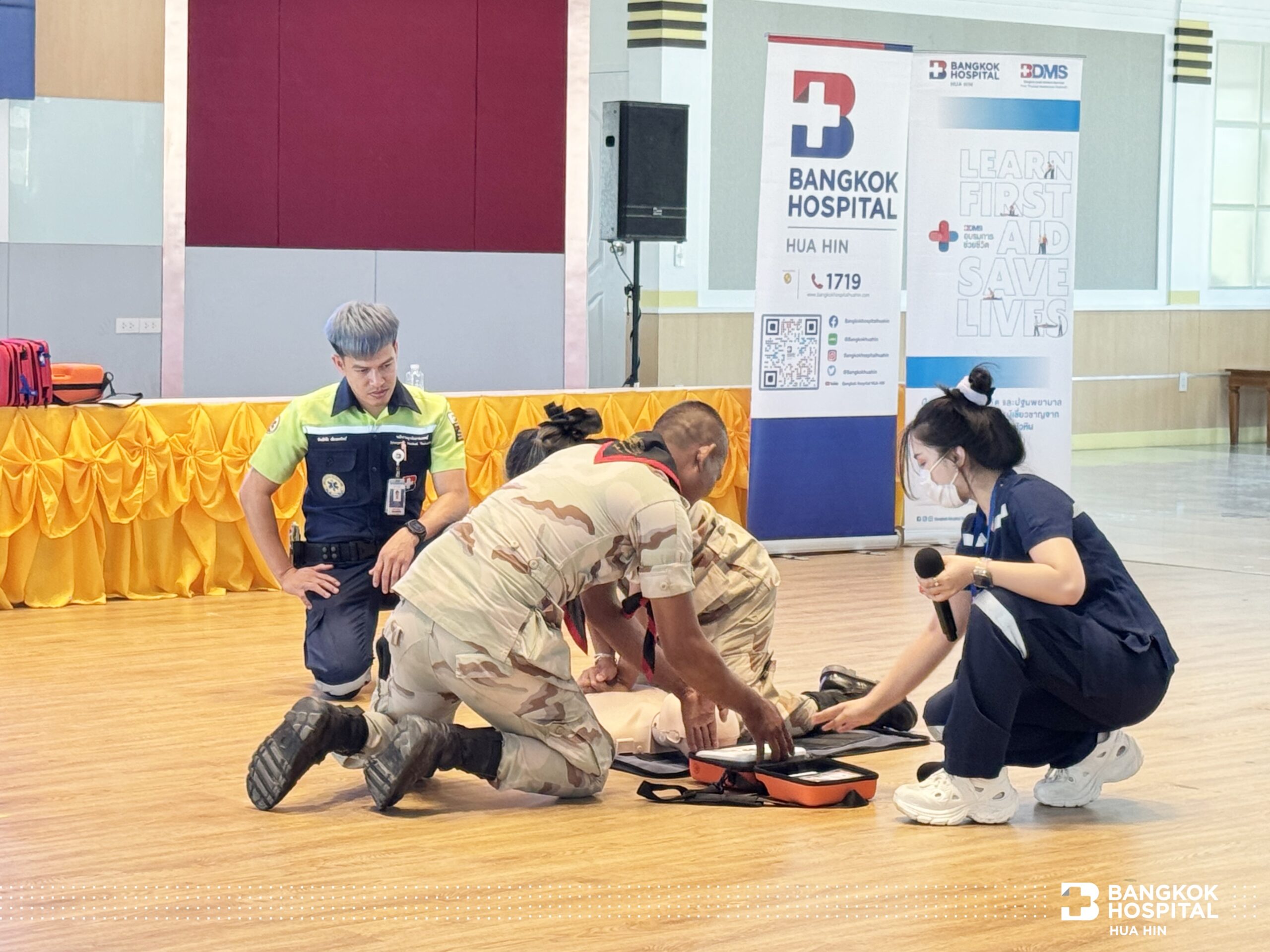 19 กุมภาพันธ์ 2568 โรงพยาบาลกรุงเทพหัวหิน จัดโครงการ BDMS อบรมการช่วยชีวิตอย่างต่อเนื่องเป็นปีที่ 3 ให้แก่ศูนย์การกำลังสำรอง โดยมีกำลังพลเข้ารับการอบรม จำนวน 150 นาย ณ สโมสรศูนย์การกำลังสำรอง ค่ายธนะรัชต์ อำเภอปราณบุรี โดยมี พันเอก วรรณวิทย์ รงค์เรือง เสนาธิการ ศูนย์การกำลังสำรอง และ นพ.วีระศักดิ์ พงษ์พัฒนพันธุ์ ผู้อำนวยการโรงพยาบาลกรุงเทพหัวหิน ร่วมพิธีเปิด