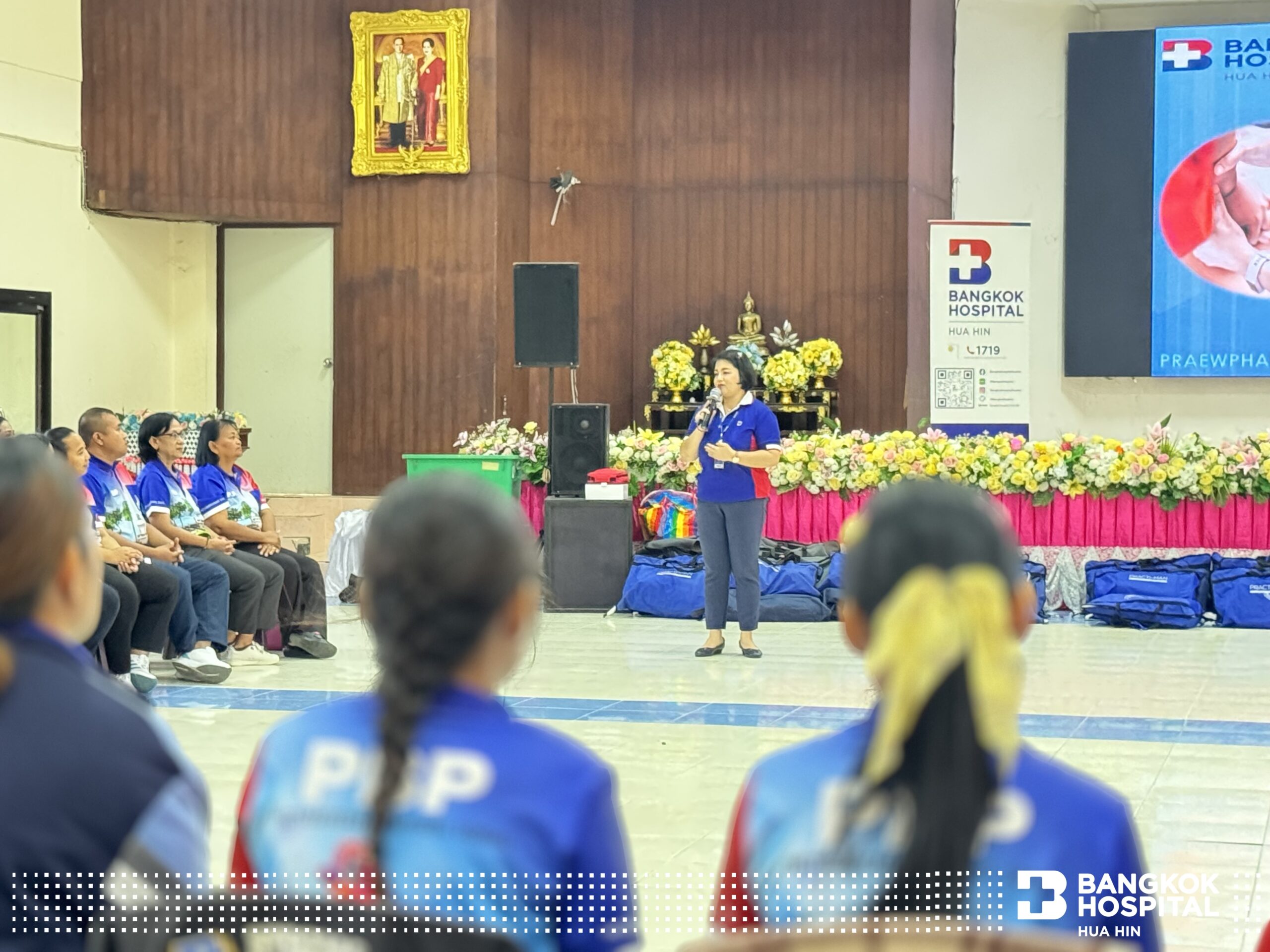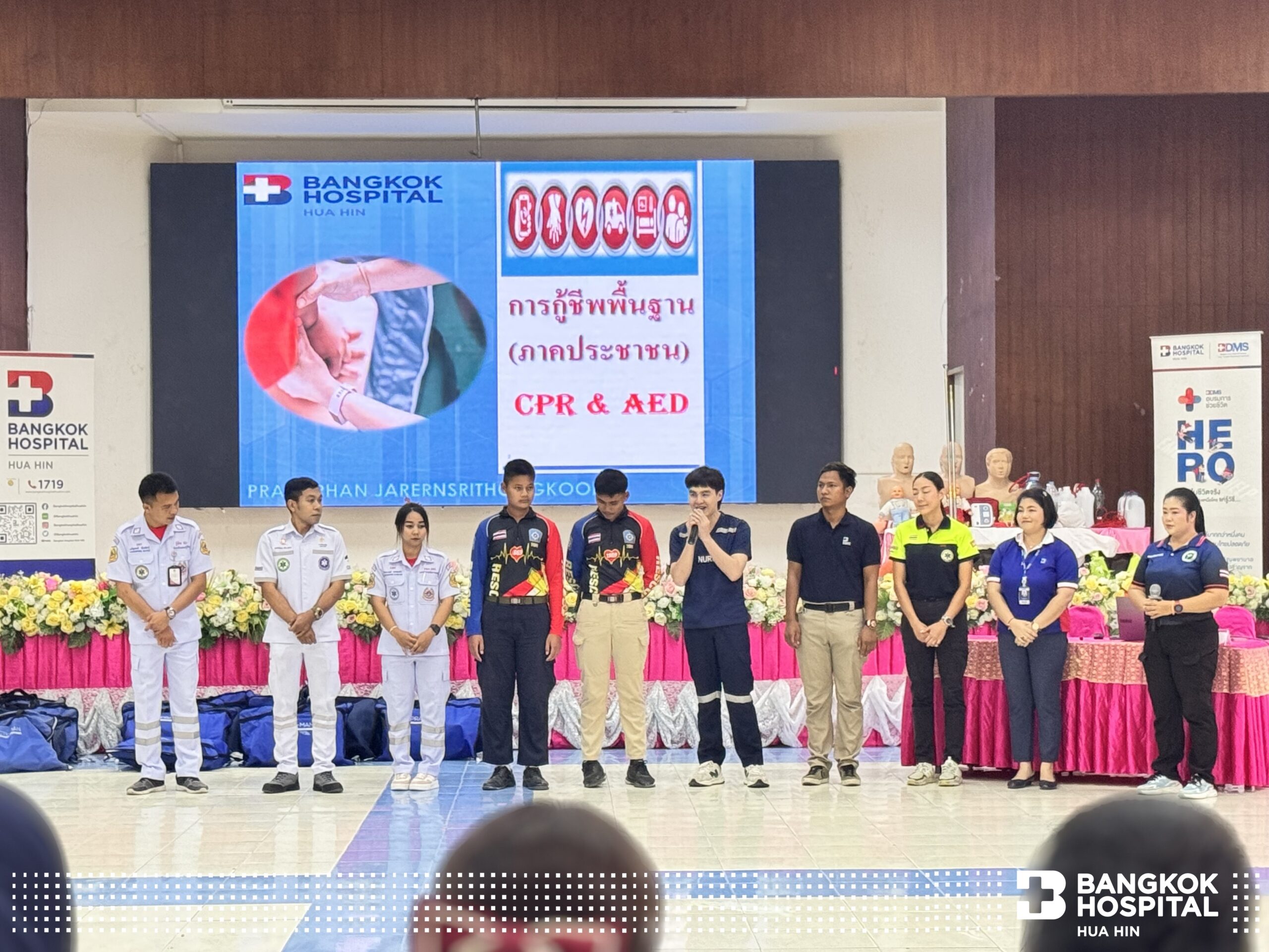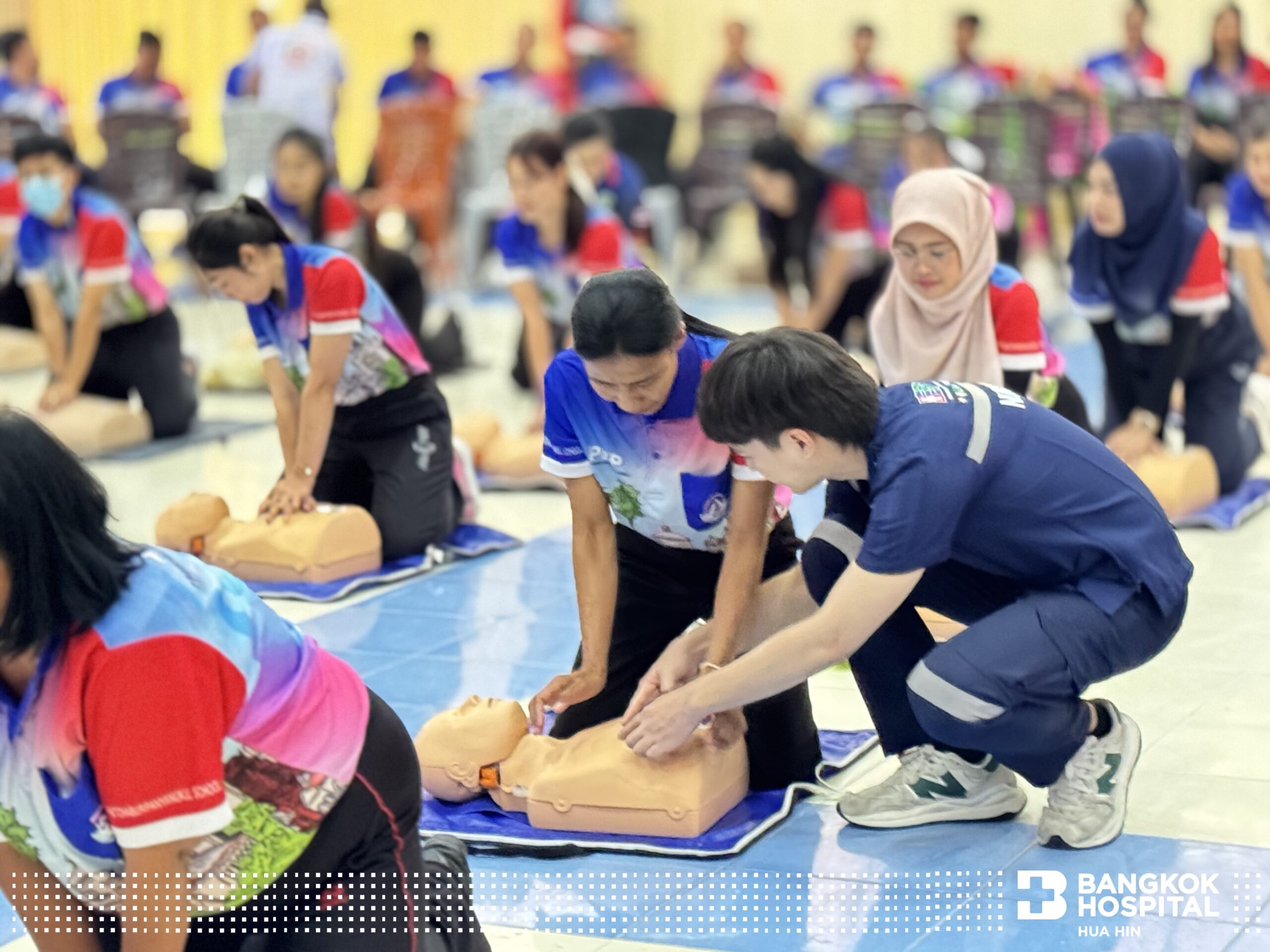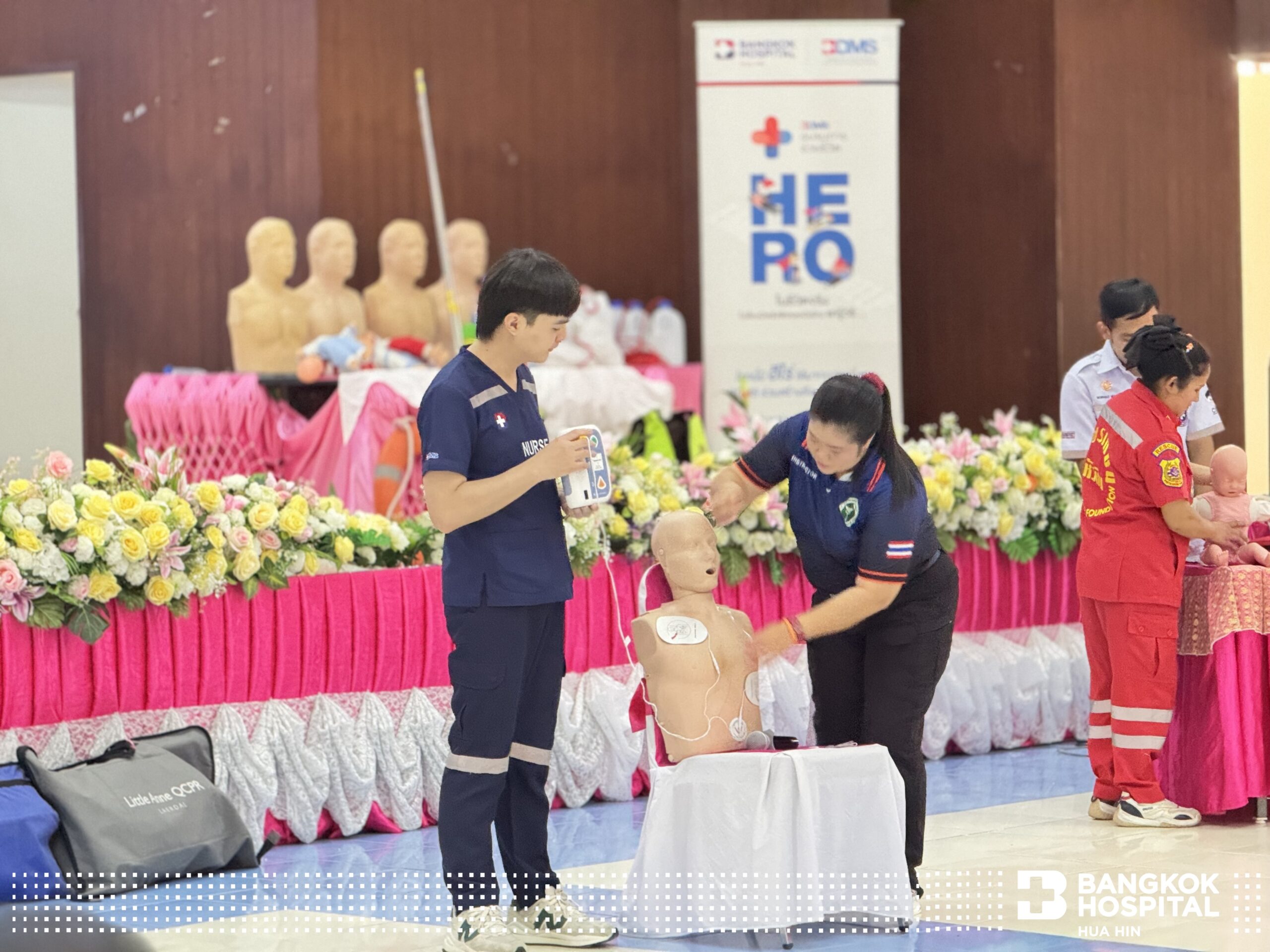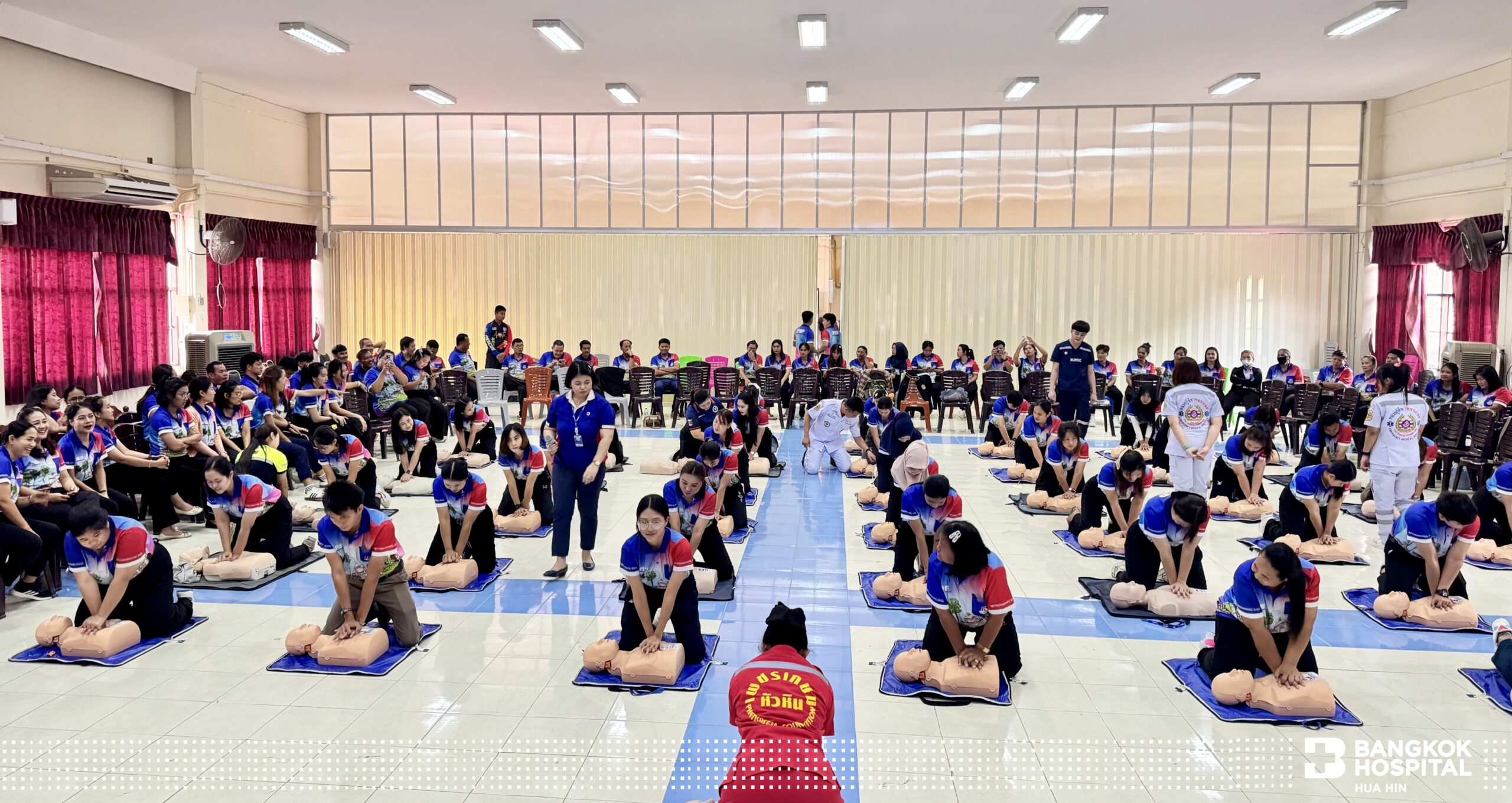โดยทีมวิทยากรผู้เชี่ยวชาญจากมูลนิธิเพชรเกษมและโรงพยาบาลกรุงเทพหัวหิน ร่วมกันการถ่ายทอดความรู้ในการช่วยชีวิตด้วยการปั๊มหัวใจ CPR การใช้เครื่อง AED กระตุกหัวใจด้วยไฟฟ้า การช่วยเหลือผู้ป่วยสำลักอุดกั้นทางเดินหายใจ การช่วยเหลือกรณีจมน้ำ และการปฐมพยาบาลเบื้องต้น ให้แก่คุณครูและบุคลากรในโรงเรียน เพื่อให้มีความมั่นใจในการช่วยเหลือนักเรียน ตลอดจนบุคคลรอบข้าง หากเกิดเหตุการณ์ฉุกเฉิน