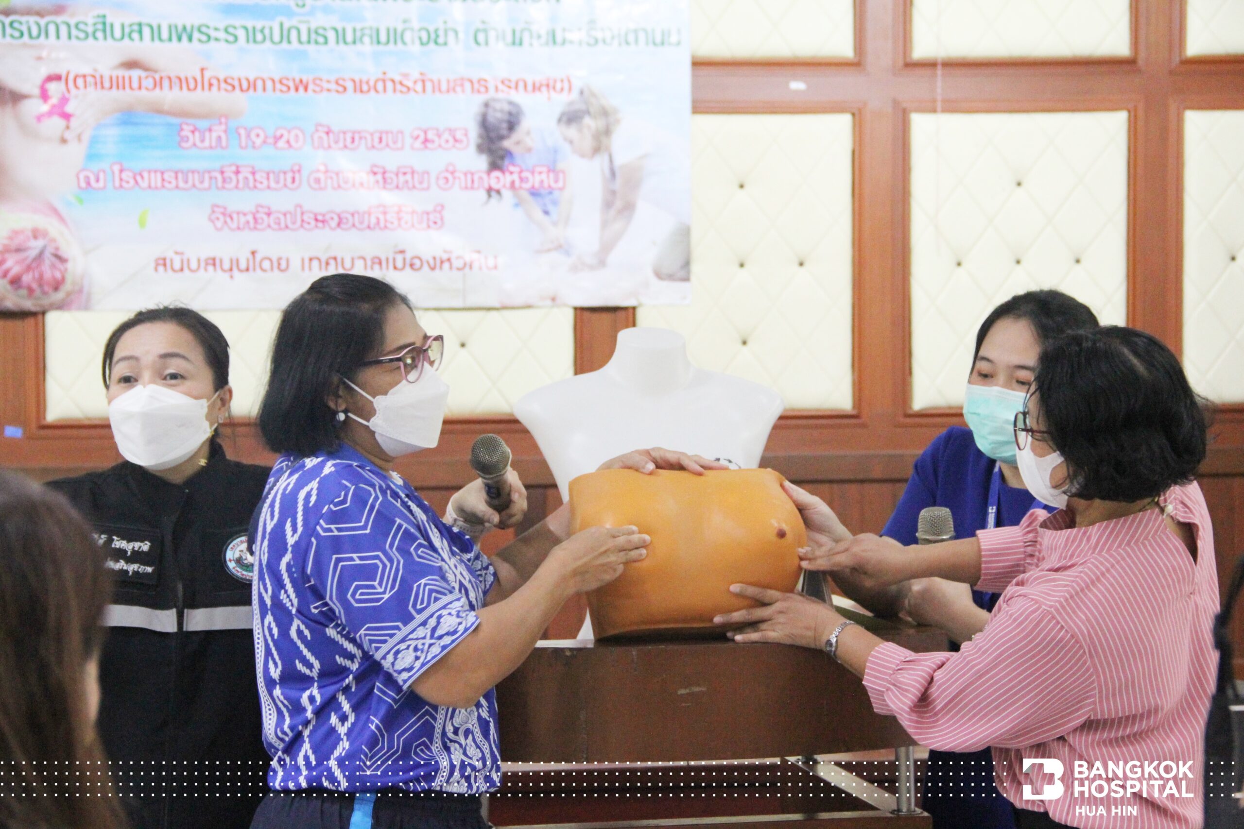 นายนพพร วุฒิกุล นายกเทศมนตรีเมืองหัวหิน เป็นประธานในพิธีเปิดการอบรมโครงการสืบสานพระราชปณิธานสมเด็จย่า ต้านภัยมะเร็งเต้านม (ตามแนวทางโครงการพระราชดำริด้านสาธารณสุข) ประจำปีงบประมาณ 2565 จัดโดยงานส่งเสริมสุขภาพ ฝ่ายบริการสาธารณสุข กองสาธารณสุข เทศบาลเมืองหัวหิน ร่วมกับโรงพยาบาลกรุงเทพหัวหิน เพื่อให้ความรู้แก่ประชาชนในเขตเทศบาลเมืองหัวหิน ในการดูแลสุขภาพอย่างถูกต้อง โดยเฉพาะการสอนให้สุภาพสตรีรู้จักการตรวจคัดกรองมะเร็งเต้านมด้วยตนเอง