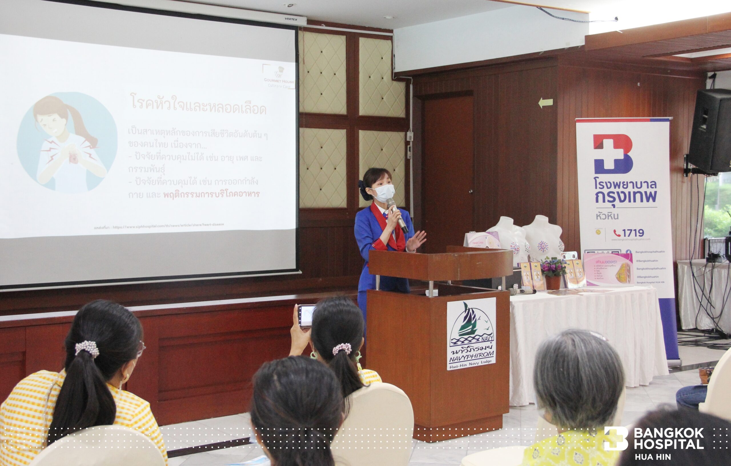 โดยโครงการนี้มีวิทยากรจากโรงพยาบาลกรุงเทพหัวหิน ร่วมบรรยายให้ความรู้ ได้แก่ นายแพทย์พงษ์ศักดิ์ บุญยะลีพรรณ ผู้ช่วยผู้อำนวยการโรงพยาบาลกรุงเทพหัวหิน พร้อมด้วย นางศุจิกา สำราญใจ พยาบาลวิชาชีพ หัวหน้าแผนกบริการผู้ป่วยนอก และ นางสาวเสาวลักษณ์ นวฤทธิอัศวิน นักโภชนาการ กูร์เมท์ เฮ้าส์ คูลินารี่ แคร์ (Gourmet House Culinary Care)