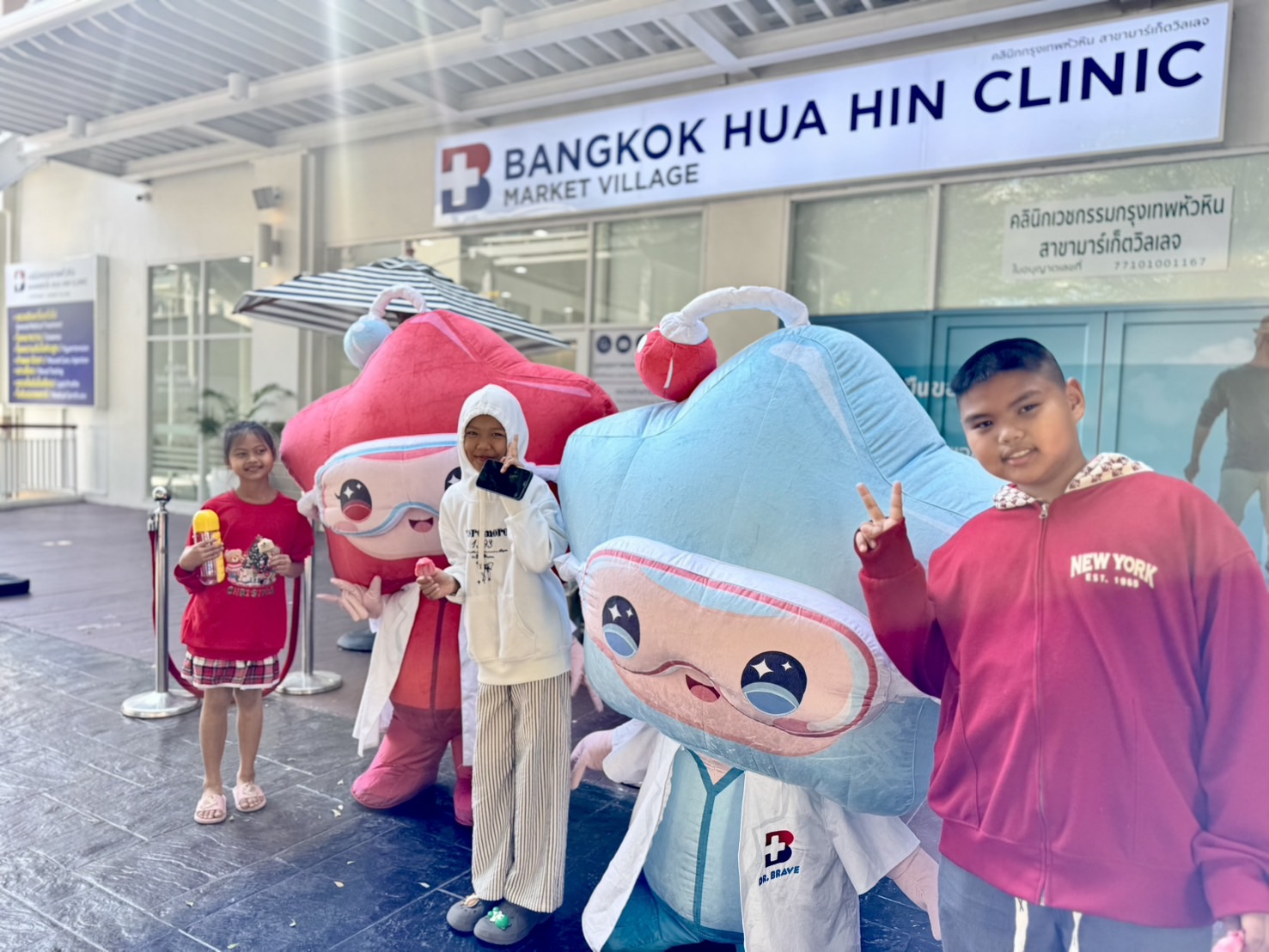 พบกับคุณหมอไผ่ (พญ.สวรรยา) แพทย์ประจำคลินิกกรุงเทพหัวหิน สาขามาร์เก็ตวิลเลจ พร้อมเปิดตัวมาสคอตสุดน่ารัก DR. BRAVE และ DR. BRIGHT มาแจกพลังแห่งความกล้า มั่นใจ แข็งแรง พร้อมด้วยพลังแห่งความสดใส ฉลาด ร่าเริง ให้กับน้อง ๆ ที่มาร่วมสนุกกันในงาน