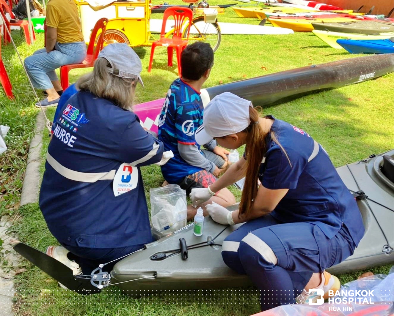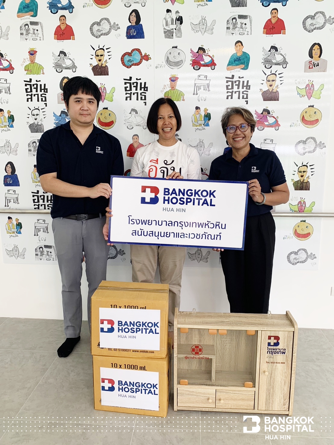 โรงพยาบาลกรุงเทพหัวหิน ร่วมมอบตู้ยา พร้อมยาและเวชภัณฑ์สำหรับเด็ก เพื่อใช้ในการช่วยเหลือปฐมพยาบาลเบื้องต้นแก่นักเรียนและคุณครู บุคลากรในโรงเรียนเด็กพิเศษ (ศูนย์การศึกษาพิเศษ ประจำจังหวัดประจวบคีรีขันธ์ หน่วยบริการหัวหิน) เมื่อวันที่ 1 กรกฎาคม 2566 และร่วมออกหน่วยปฐมพยาบาลนอกสถานที่ พร้อมรถพยาบาลฉุกเฉิน เพื่ออำนวยความสะดวกแก่ผู้ร่วมงาน “พิชิตเกาะสิงโตชาเลนจ์” @หัวหิน เดิน-ว่าย พายคายัค ณ บริเวณชายหาดเขาเต่า อ.หัวหิน จ.ประจวบคีรีขันธ์ เมื่อวันที่ 2 กรกฎาคม 2566