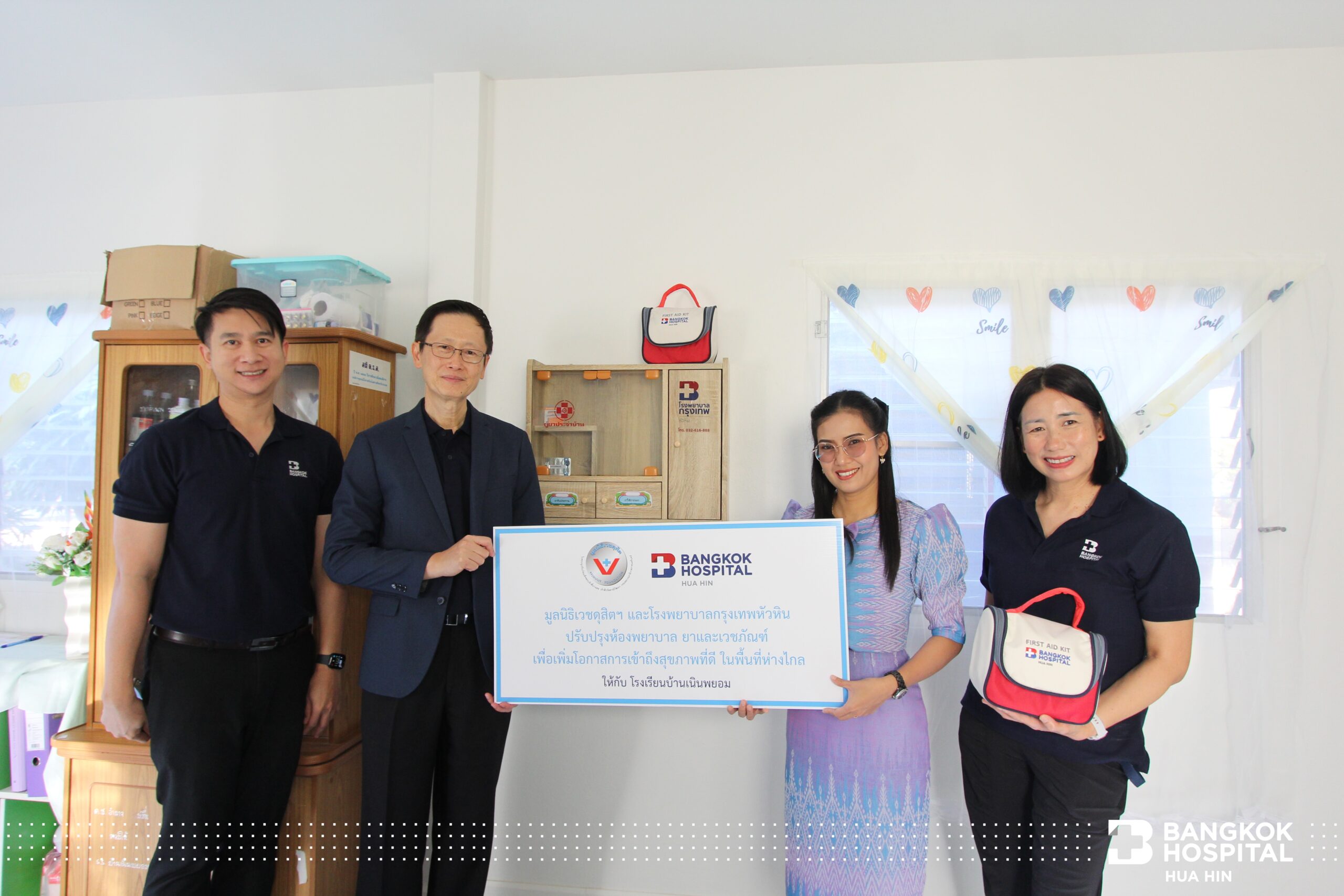 ซึ่งโครงการปรับปรุงห้องปฐมพยาบาลของทั้งสองโรงเรียน ได้รับการสนับสนุนจากมูลนิธิเวชดุสิตฯ และโรงพยาบาลกรุงเทพหัวหิน เพื่อส่งเสริมการบริการด้านสุขภาพที่เหมาะสมและมีคุณภาพให้กับนักเรียน ตลอดจนคุณครู และบุคลากรในโรงเรียนบ้านเนินพยอมต่อไป