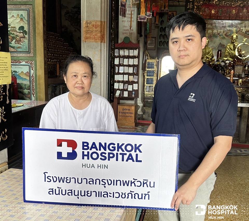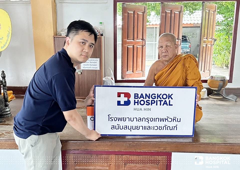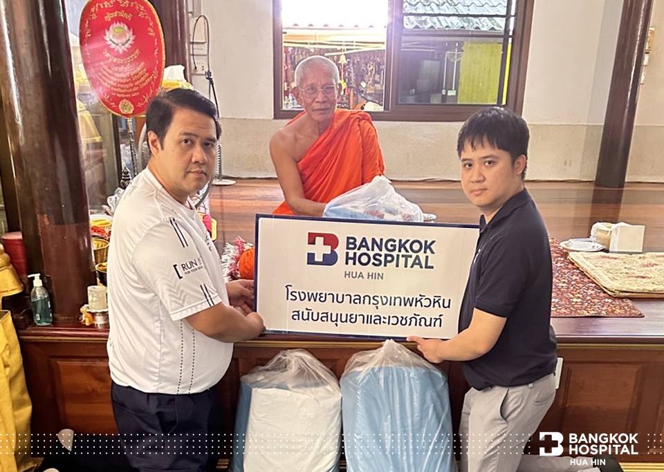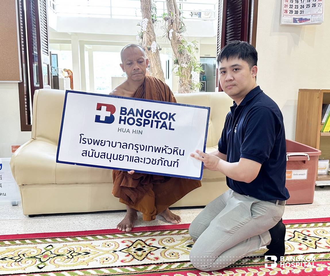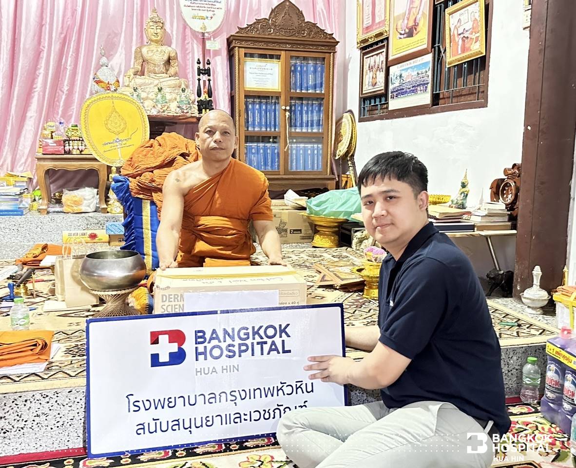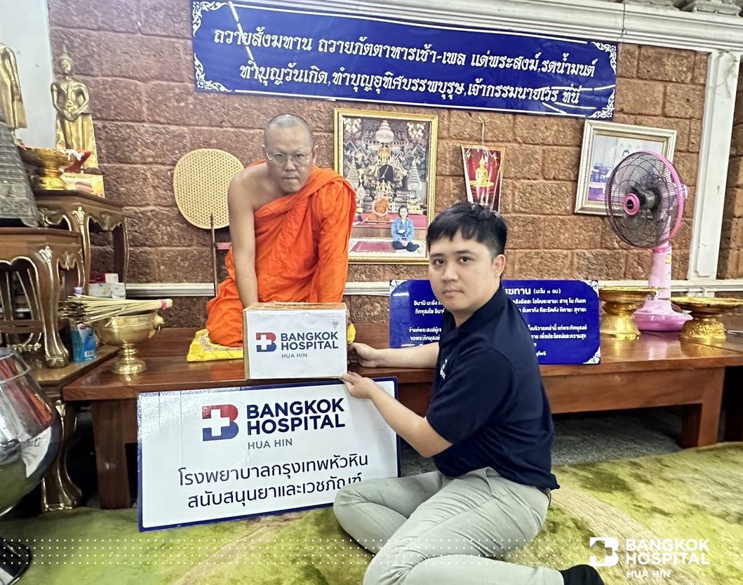 คุณเชษฐพล มณีฉาย ผู้จัดการแผนกการตลาดและสื่อสารองค์กร รพ.กรุงเทพหัวหิน เป็นตัวแทน ถวายยา และเวชภัณฑ์ แด่วัดในจังหวัดประจวบคีรีขันธ์ ได้แก่ วัดเขาสนามชัย วัดบุษยะบรรพต วัดหนองตาแต้ม วัดหุบตาโคตร วัดละเมาะ วัดเก่าเขาน้อยปากน้ำปราณ วัดกุยบุรี วัดสามร้อยยอด และโรงเจลุ่ยอิมยี่เขาสามร้อยยอด