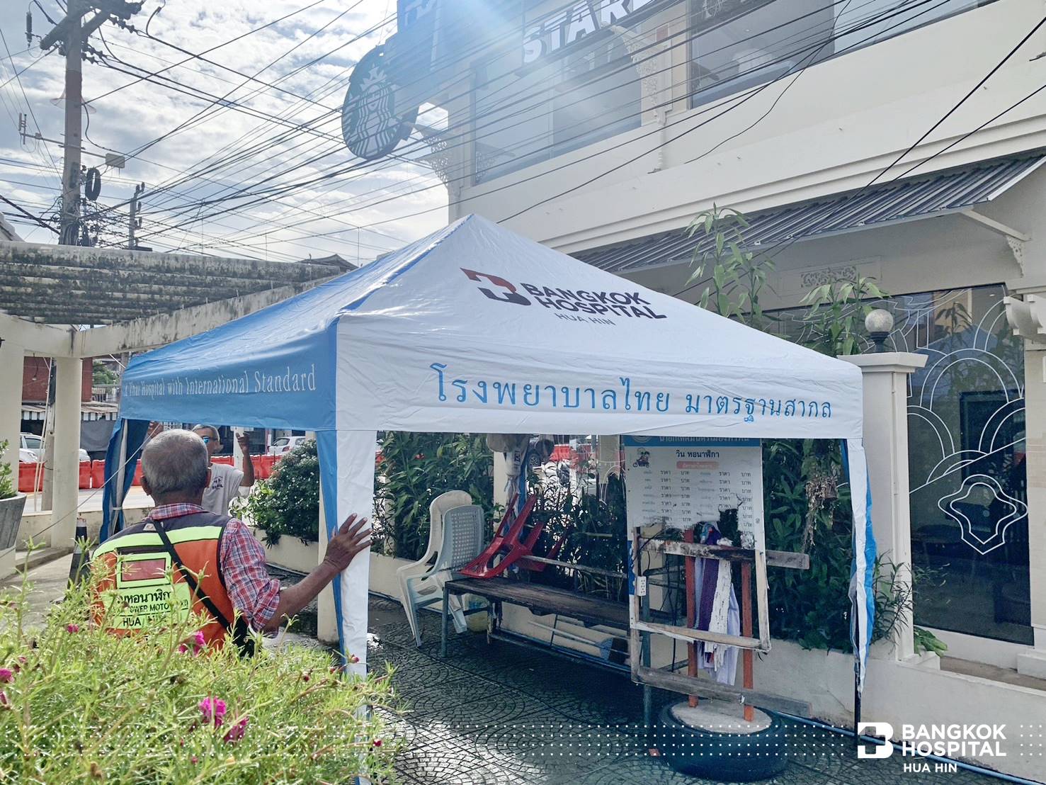 พร้อมกันนี้ รพ.กรุงเทพหัวหิน ยังได้สนับสนุนเต้นท์เอนกประสงค์ แก่เทศบาลเมืองหัวหิน โดยมีคุณจีรวัฒน์ พราหมณี ปลัดเทศบาลเมืองหัวหิน เป็นผู้รับมอบ ซึ่งตั้งอยู่บริเวณลานหอนาฬิกา เพื่ออำนวยความสะดวกแก่นักท่องเที่ยวและประชาชนเมืองหัวหิน