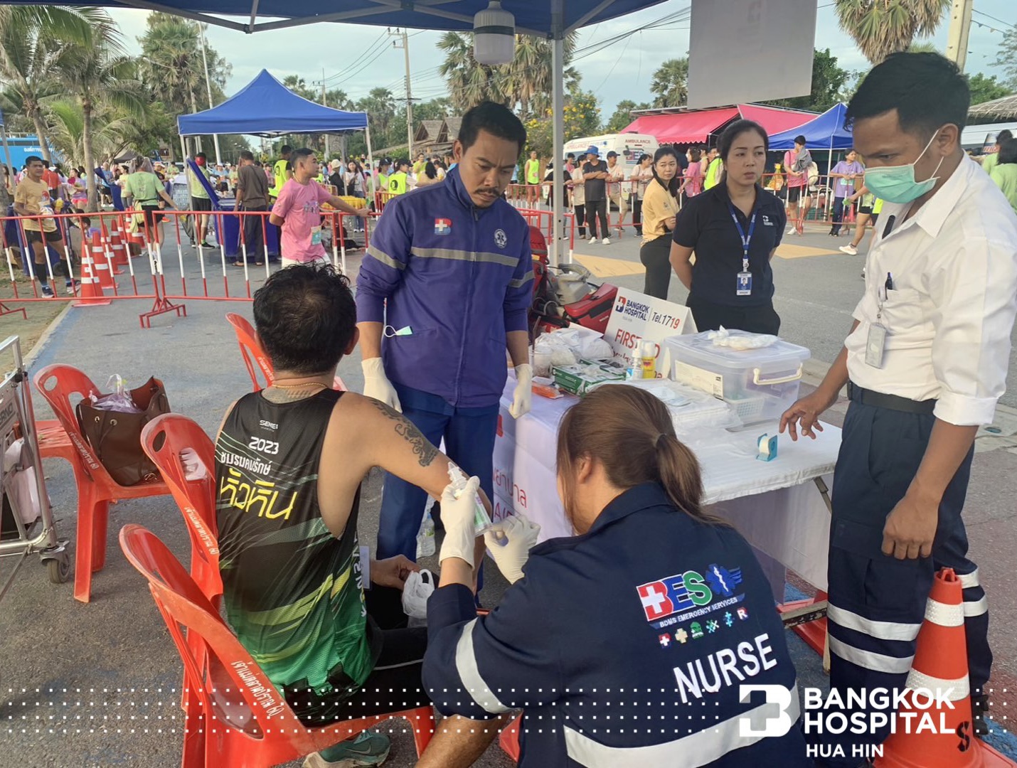 🏃🏻♂️🌴🚑 โรงพยาบาลกรุงเทพหัวหิน ร่วมกิจกรรมในงานวิ่ง “อีเล้งเค้งโค้ง ล้อลมปราณ” และสนับสนุนการออกหน่วยปฐมพยาบาลนอกสถานที่ พร้อมรถพยาบาลฉุกเฉิน เพื่ออำนวยความสะดวกและดูแลนักวิ่งในงาน ณ ตาลสามต้น หาดปากน้ำปราณ ประจวบคีรีขันธ์ วันที่ 23 กรกฎาคม 2566