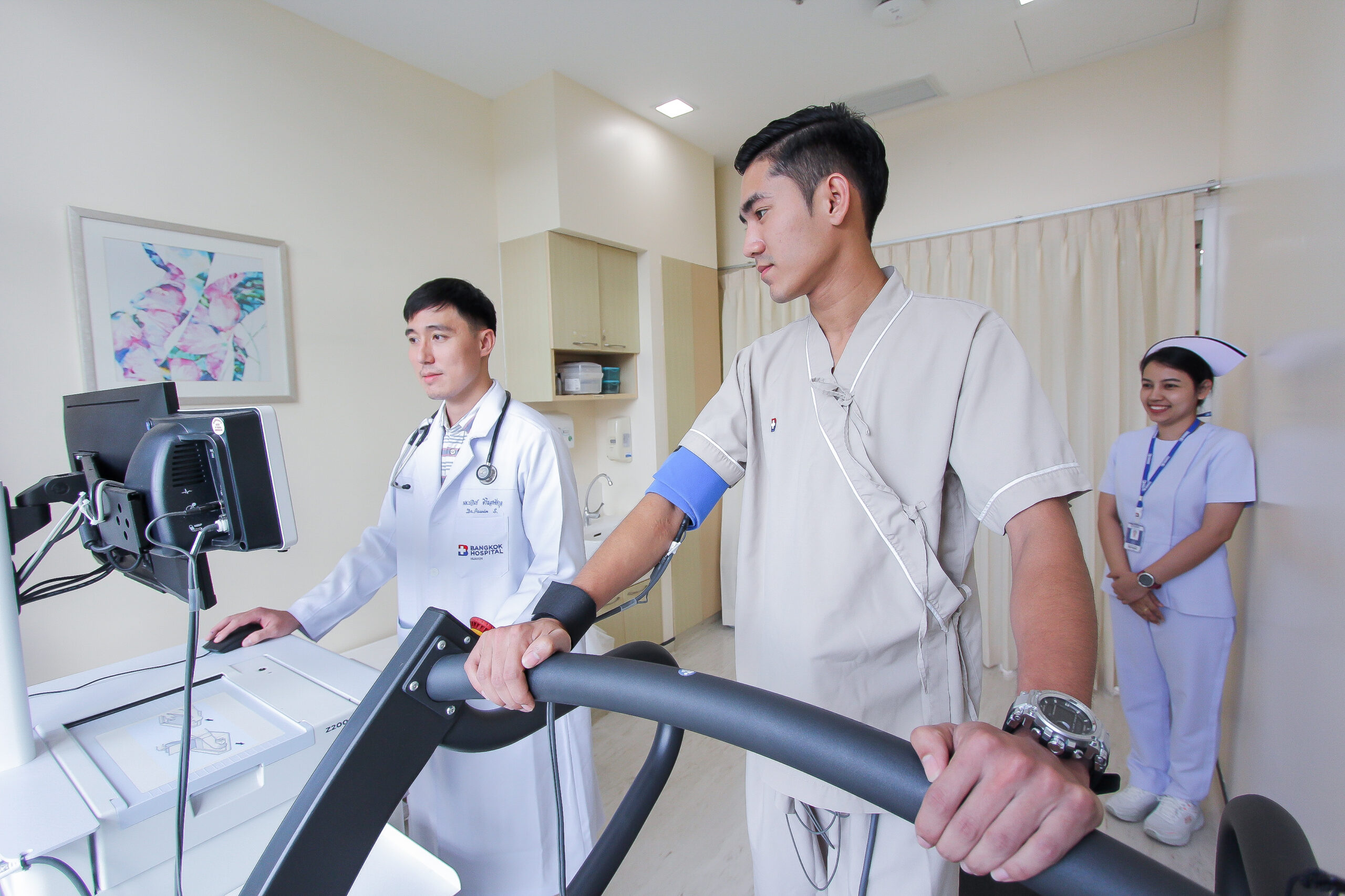 สำหรับการตรวจคัดกรองโรคหัวใจ จะประกอบด้วยการตรวจคลื่นไฟฟ้าหัวใจ (EKG) การตรวจวัดการอุดตันและความแข็งตัวของหลอดเลือดแดงส่วนปลาย (Ankle Brachial Index – ABI and Cardio Ankle Vascular Index – CAVI) การตรวจสมรรถภาพหัวใจขณะออกกำลังกาย (EST) การอัลตราซาวด์หัวใจด้วยคลื่นเสียงสะท้อนความถี่สูง (Echo) การตรวจหัวใจและหลอดเลือดด้วยเอกซเรย์คอมพิวเตอร์ความเร็วสูง (CTA coronary) หรือการสวนหลอดเลือดหัวใจ (CAG) ซึ่งการส่งตรวจแต่ละอย่าง โดยเบื้องต้นแพทย์ จะพิจารณาเป็นรายๆ ไป