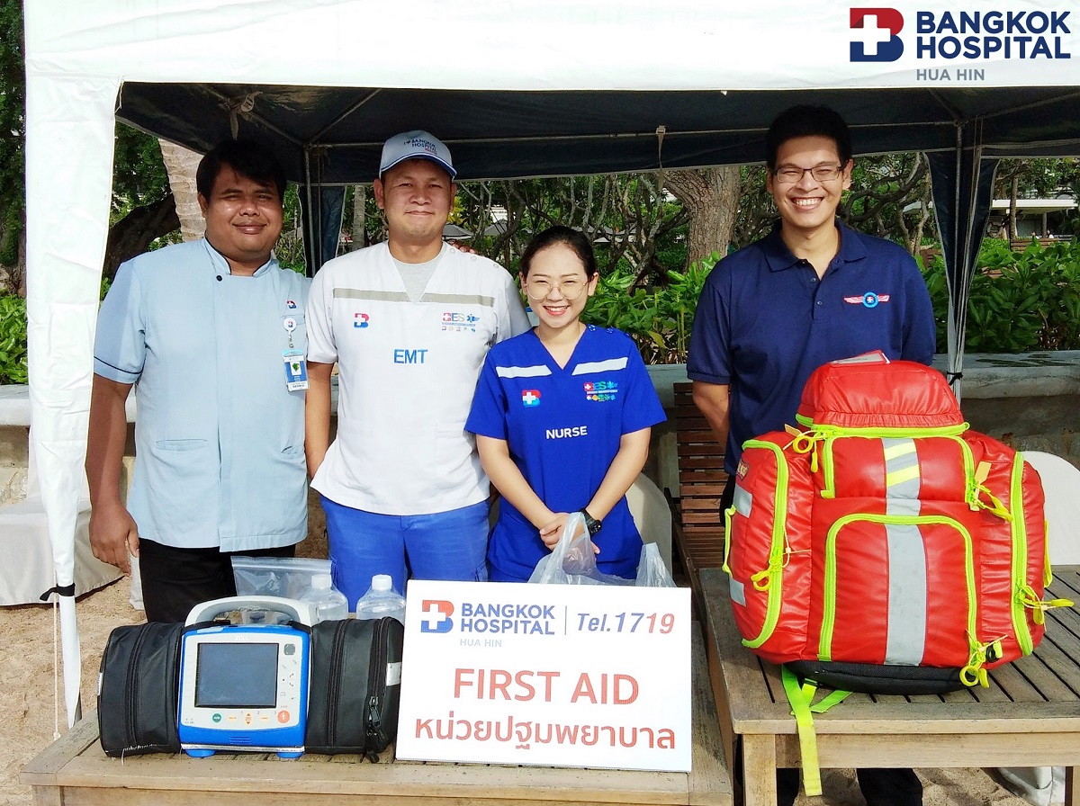 โรงพยาบาลกรุงเทพหัวหิน ให้บริการออกหน่วยปฐมพยาบาลนอกสถานที่ พร้อมรถพยาบาลฉุกเฉิน เพื่อให้การดูแลแก่คณะนักเรียนและครูจากโรงเรียนสมาคมไทย – ญี่ปุ่น ที่เข้าร่วมกิจกรรมฝึกว่ายน้ำทางทะเล ณ โรงแรมเดอะ รีเจนท์ ชะอำ บีช รีสอร์ท เมื่อวันที่ 7 มิถุนายน 2562