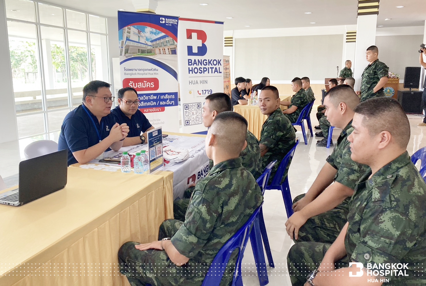 โดยแผนกทรัพยากรบุคคล โรงพยาบาลกรุงเทพหัวหิน เข้าร่วมออกบูธรับสมัครงานในโครงการนี้ ณ สโมสร ศูนย์การกำลังสำรอง ค่ายธนะรัชต์ อำเภอปราณบุรี เมื่อวันที่ 26 ตุลาคม 2566