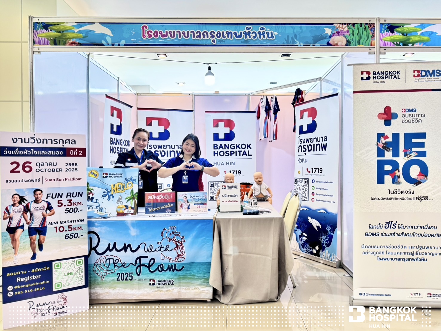 โรงพยาบาลกรุงเทพหัวหิน ร่วมกิจกรรม “มหกรรมนครหัวหินสร้างสุข” จัดโดยเทศบาลนครหัวหิน เมื่อวันที่ 17 กันยายน 2568 ณ โรงแรมเดอะเกษตร หัวหิน