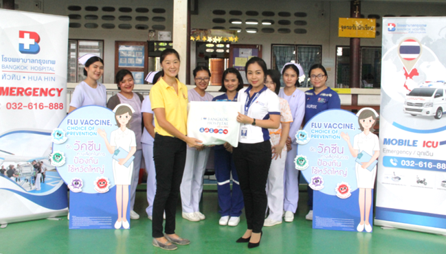 โรงพยาบาลกรุงเทพหัวหิน ให้บริการฉีดวัคซีนป้องกันโรคไข้หวัดใหญ่ ชนิด 4 สายพันธุ์ แก่นักเรียนในจังหวัดประจวบคีรีขันธ์ จำนวน 8 โรงเรียน เมื่อช่วงเดือน มิ.ย. – ก.ค. ที่ผ่านมา ได้แก่