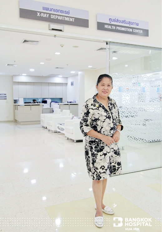ซึ่งเมื่อไม่นานมานี้ตัวดิฉันเองประสบอุบัติเหตุหกล้มและได้โทรเรียกรถแอมบูแลนซ์ที่โรงพยาบาลกรุงเทพหัวหินให้มารับที่บ้าน บนรถที่มามีทั้งหมอและพยาบาลคอยดูแลเราตลอด ซึ่งมันทำให้สุขภาพจิตใจของเราดีขึ้นที่มีหมอดูแลเราจนมาถึงโรงพยาบาล และตลอดเวลาที่รักษา จนกระทั่งเราออกจากโรงพยาบาล ทำให้เรามีความประทับใจคุณหมอ พยาบาล เจ้าหน้าที่ในทุกแผนก และมันทำให้เราคิดว่า ในการเจ็บป่วยทุกครั้ง นอกจากร่างกาย สภาพจิตใจมันก็แย่มากอยู่แล้ว อย่างน้อยเราก็อยากนอนเจ็บป่วยอย่างมีความสุข ดังนั้นโรงพยาบาลกรุงเทพหัวหินทำให้เรารู้สึกสบายใจ ทั้งสถานที่ที่มีเครื่องอำนวยความสะดวกสบาย ทำให้สุขภาพทั้งกายและใจของเราดีมากยิ่งขึ้น จึงเป็นเหตุผลที่ทำให้เราตัดสินใจมาใช้บริการที่โรงพยาบาลกรุงเทพหัวหินตลอดค่ะ”