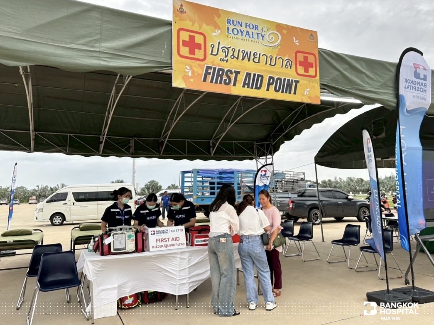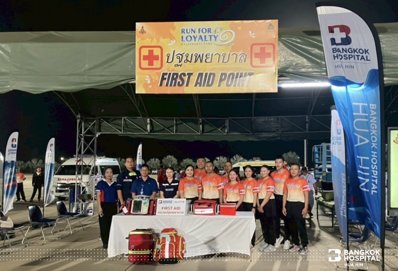 คุณศศิเพ็ญ ปิยสุทธิ์ ผู้อำนวยการฝ่ายการพยาบาล โรงพยาบาลกรุงเทพหัวหิน และผู้อำนวยการฝ่ายการพยาบาล โรงพยาบาลกรุงเทพเพชรบุรี พร้อมด้วยคณะแพทย์ และเจ้าหน้าที่โรงพยาบาลกรุงเทพหัวหิน เข้าร่วมกิจกรรมงานวิ่ง “1 ทศวรรษ อุทยานราชภักดิ์ RUN FOR LOYALTY” และสนับสนุนการออกหน่วยปฐมพยาบาลนอกสถานที่ พร้อมรถพยาบาลฉุกเฉิน เพื่ออำนวยความสะดวกและดูแลนักวิ่งในงาน ตลอดจนร่วมออกบูธประชาสัมพันธ์กิจกรรม ณ อุทยานราชภักดิ์ อ.หัวหิน จ.ประจวบคีรีขันธ์ ในวันที่ 12 กรกฎาคม 2568