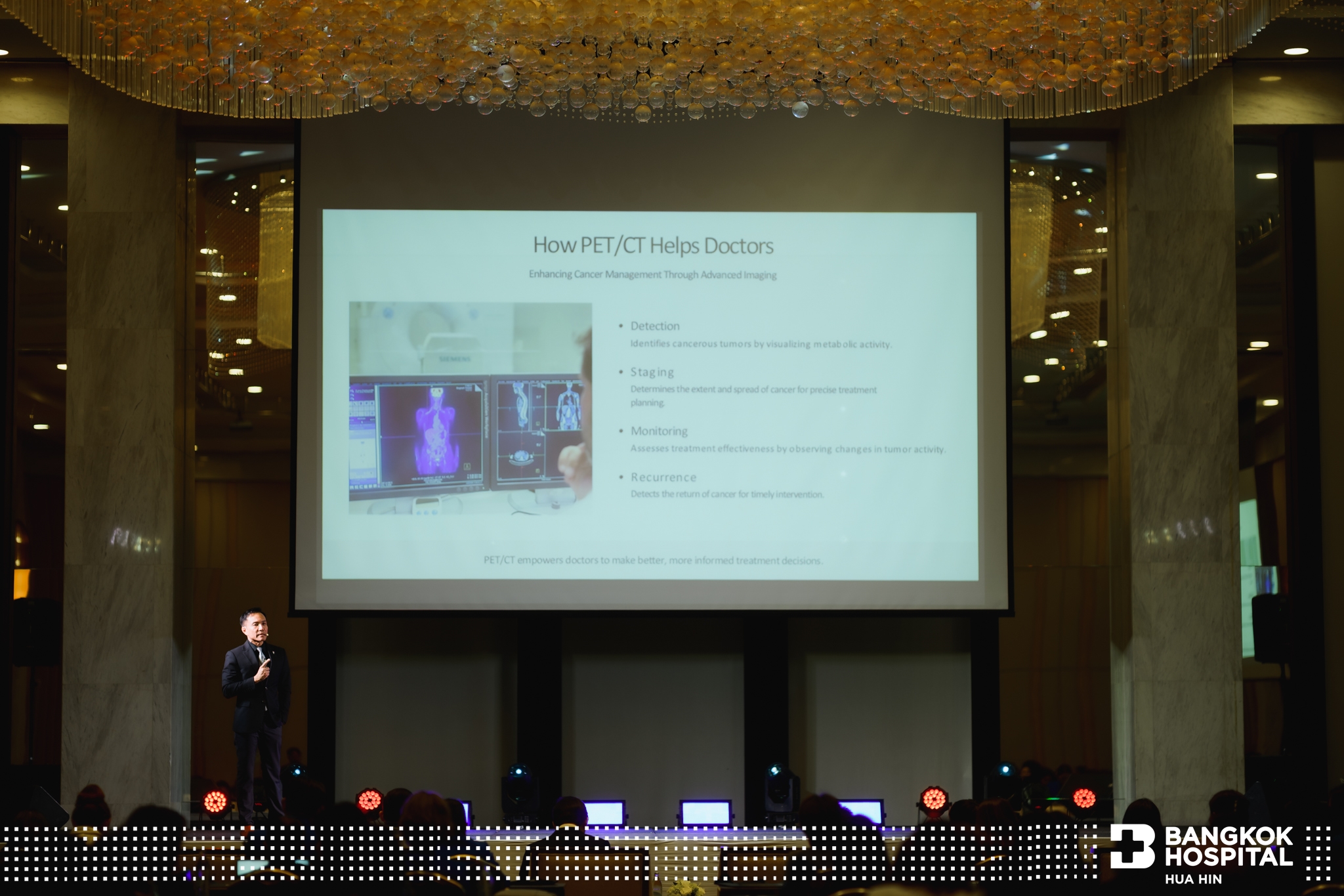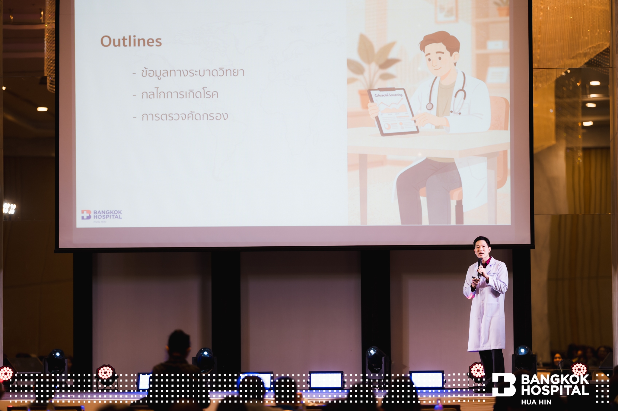 19 มีนาคม 2569 โรงพยาบาลกรุงเทพหัวหิน ผนึกกำลังกับ โรงพยาบาลกรุงเทพวัฒโนสถ Cancer Hospital และ โรงพยาบาลกรุงเทพ สำนักงานใหญ่ จัดงานสัมมนาครั้งพิเศษ “The Power of Early Detection” เทคโนโลยีแม่นยำเพื่อการป้องกันที่เหนือกว่า ณ ห้องประชุมแชนเดอเลีย ชั้น 1 โรงแรมเชอราตัน หัวหิน รีสอร์ทแอนด์สปา โดยมี นพ.อัศวิน ภูวธนสาร ผู้อำนวยการโรงพยาบาลกรุงเทพหัวหิน ให้การต้อนรับ และกล่าวบรรยายความก้าวหน้าของโรงพยาบาลกรุงเทพหัวหิน ในปี 2569